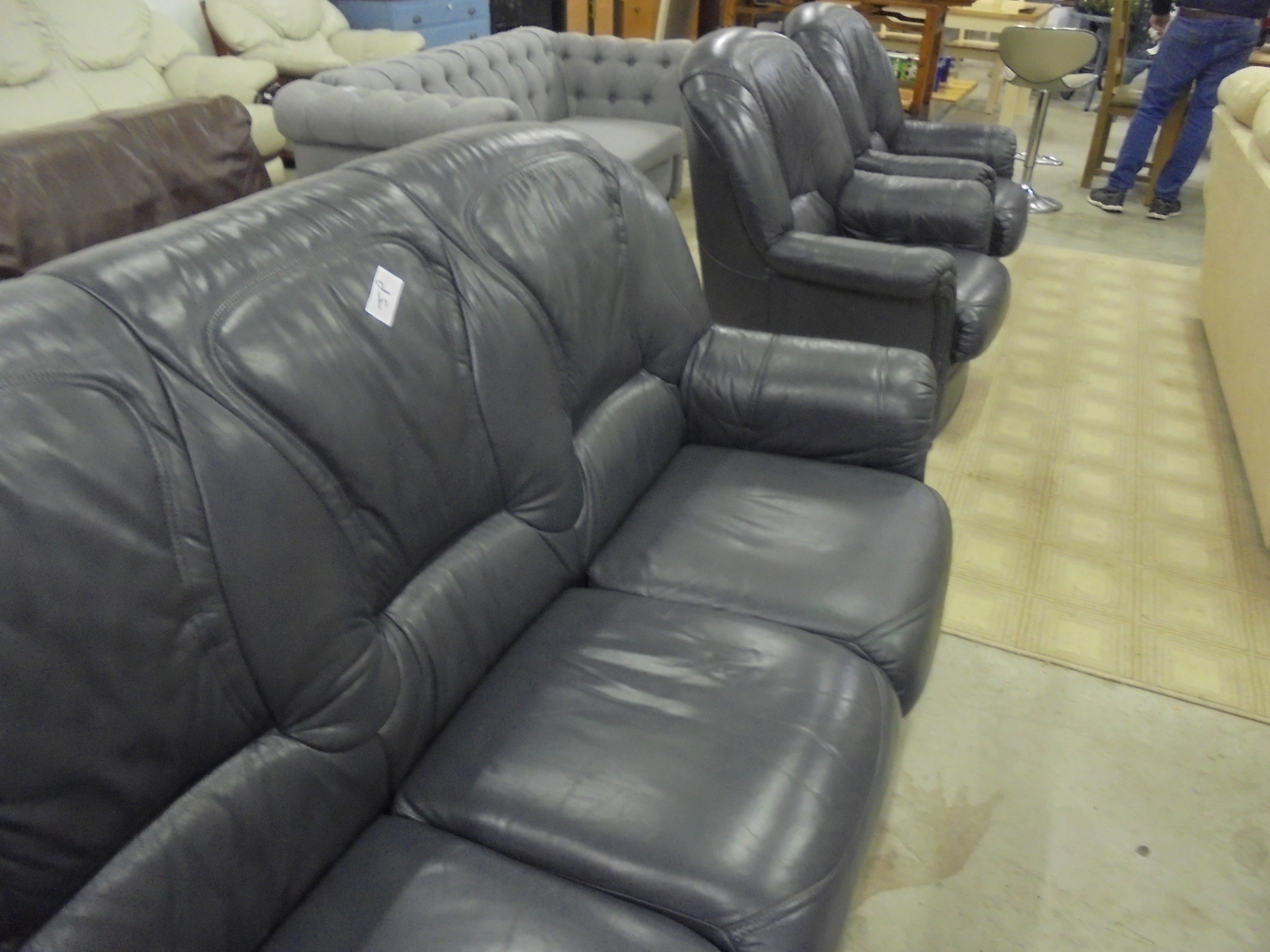 Navy leather 3 & 1 & 1 & Pouffee