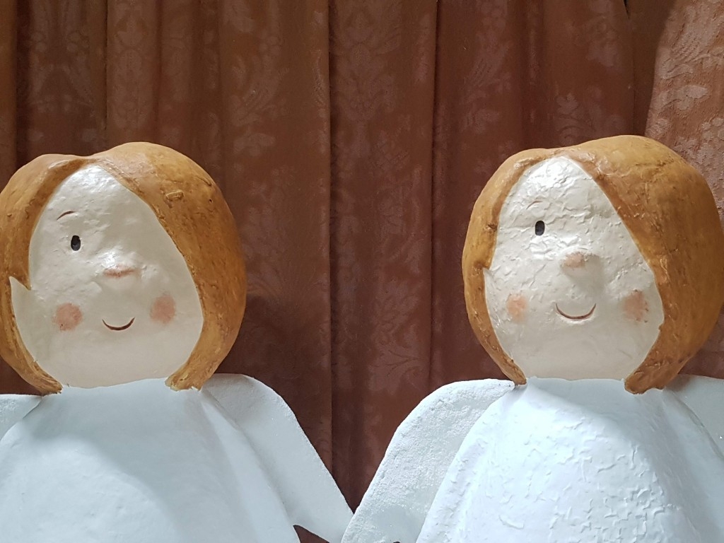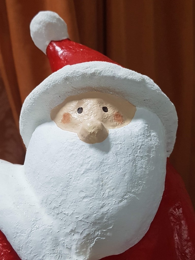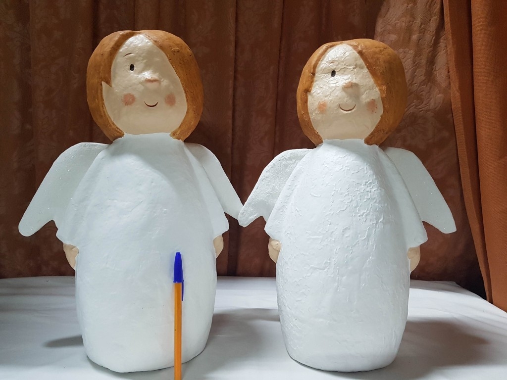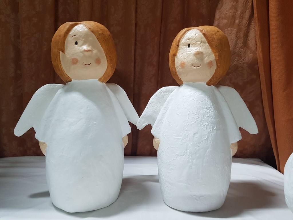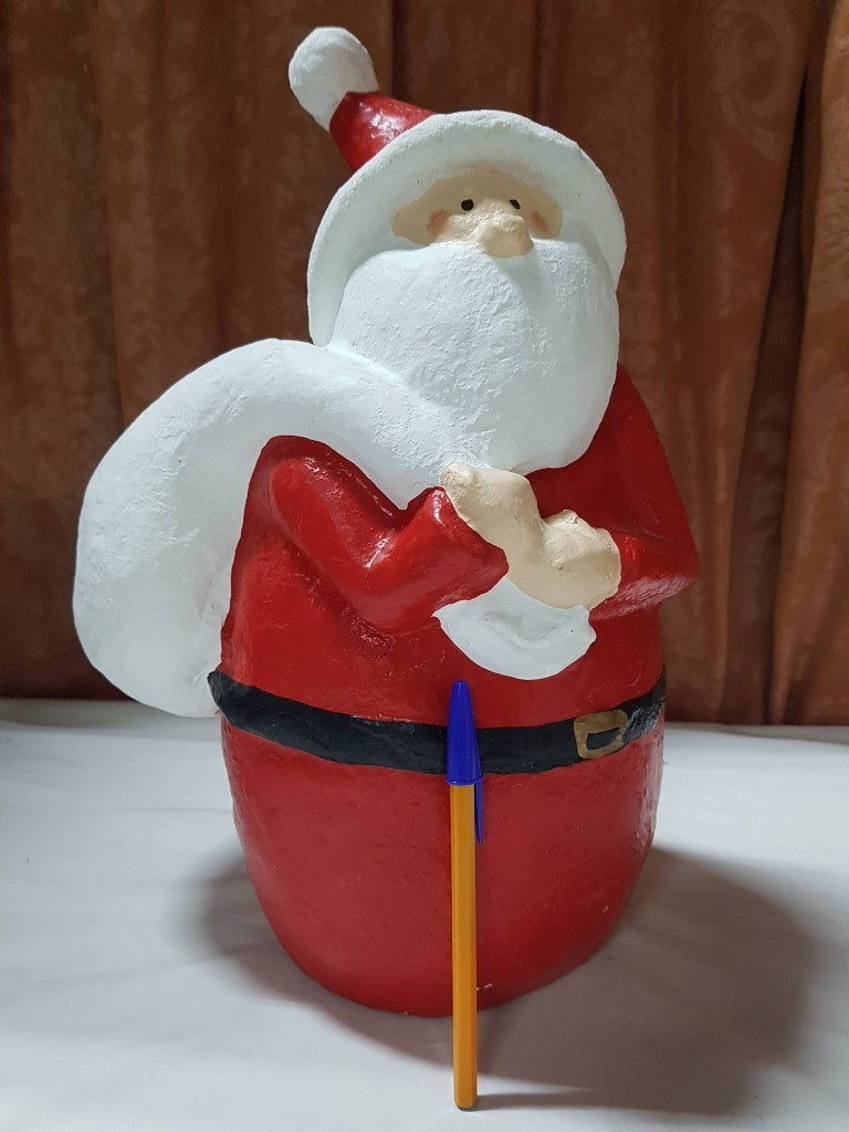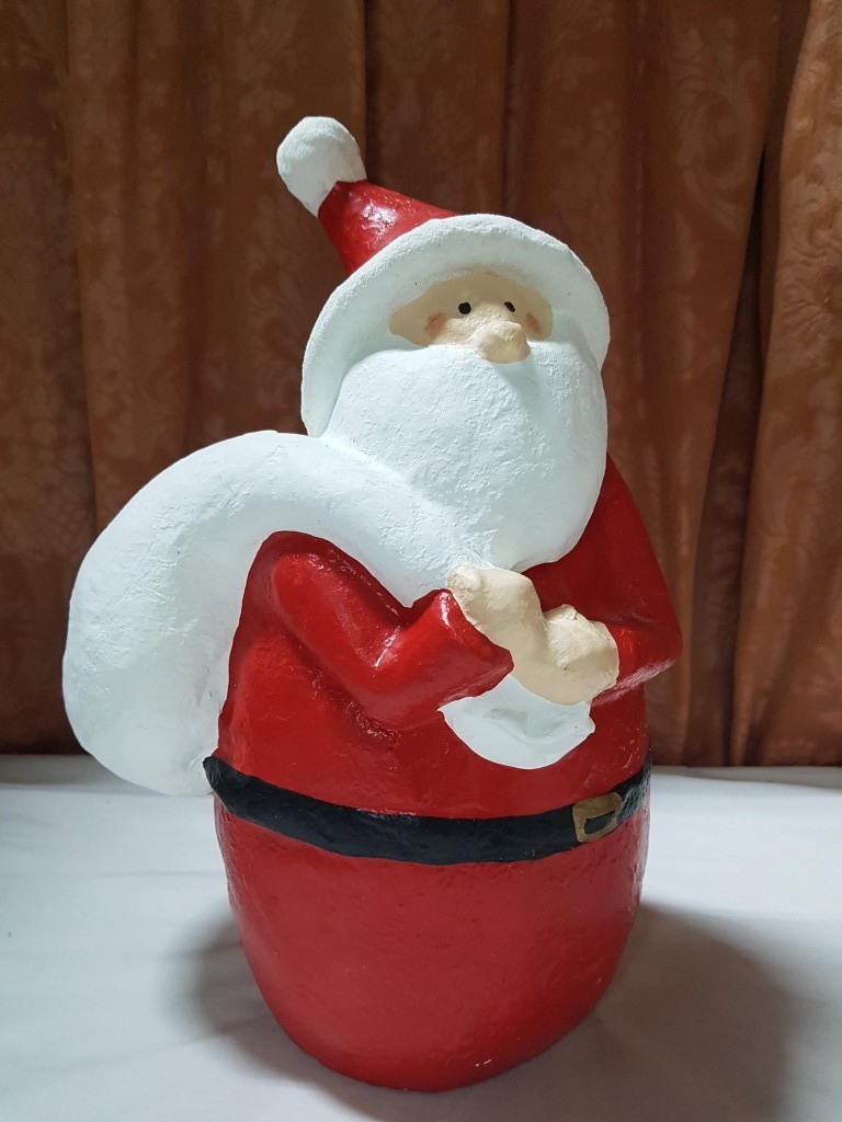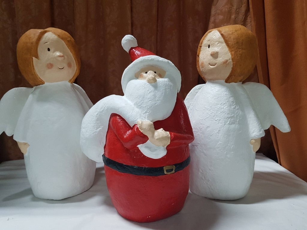 Paper Mache Christmas Figurines; Santa with Gift Bag (Approx. H: 39.5cm) and 2x Angels (Approx. H: 42cm Each). (3)