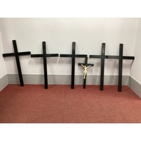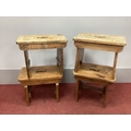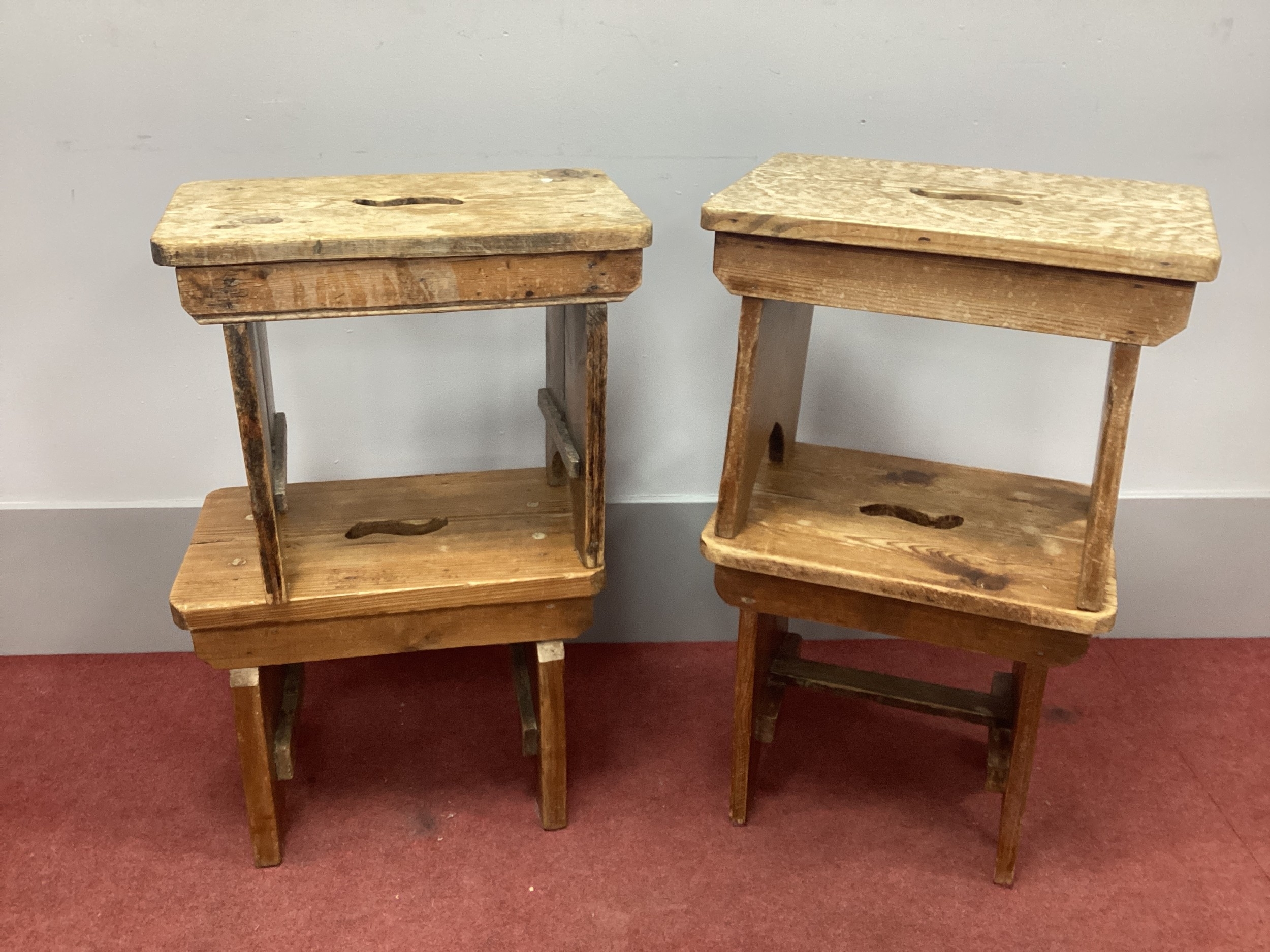Four Pine Prayer Kneelers, with pierced hand grips, various heights. (4)