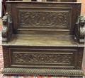 Late 19th century Gothic Revival carved oak box settle with Griffin armrests, 46in. wide.
