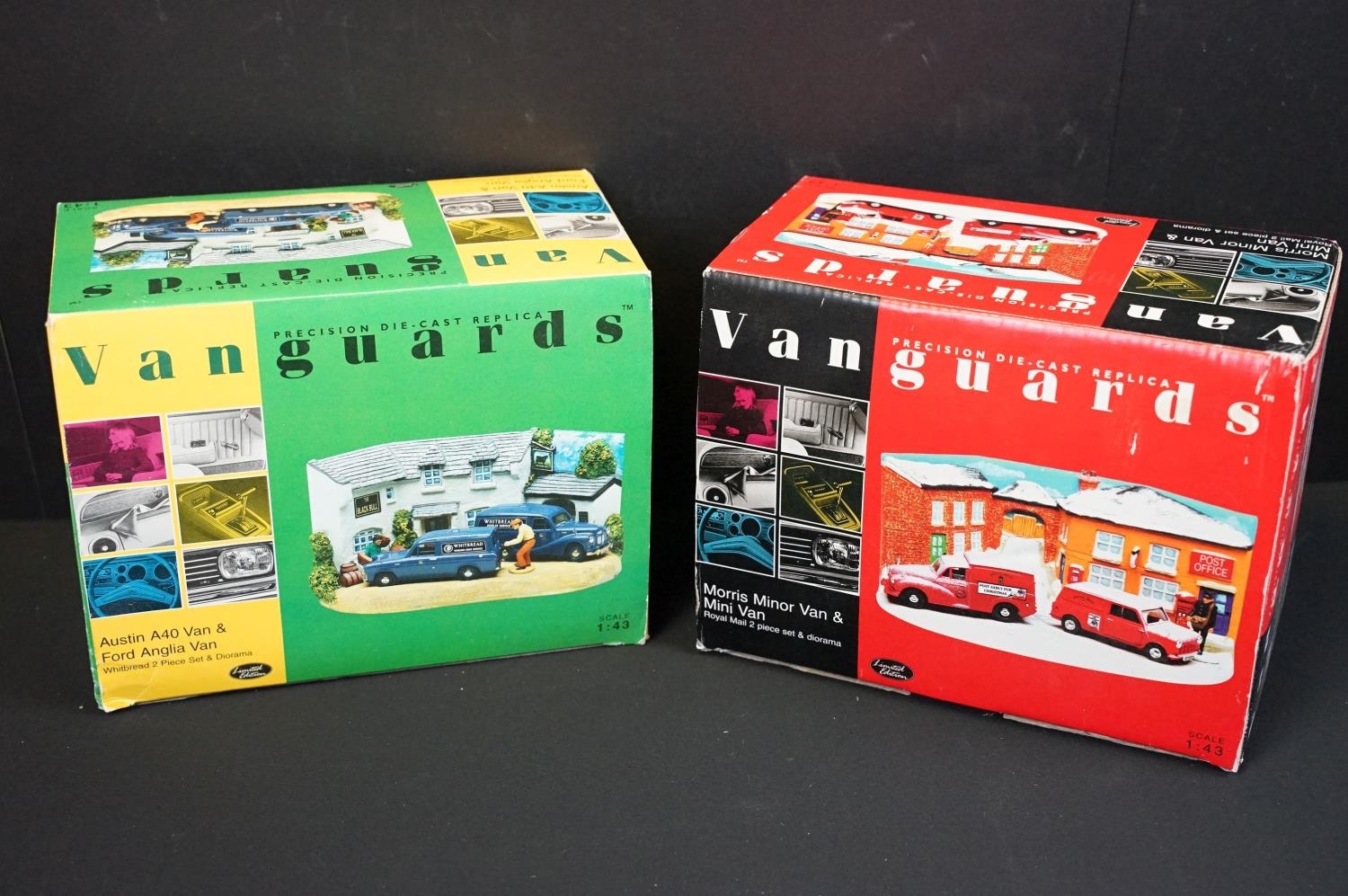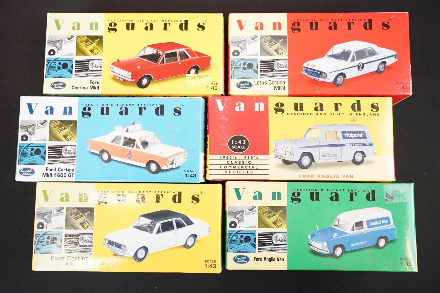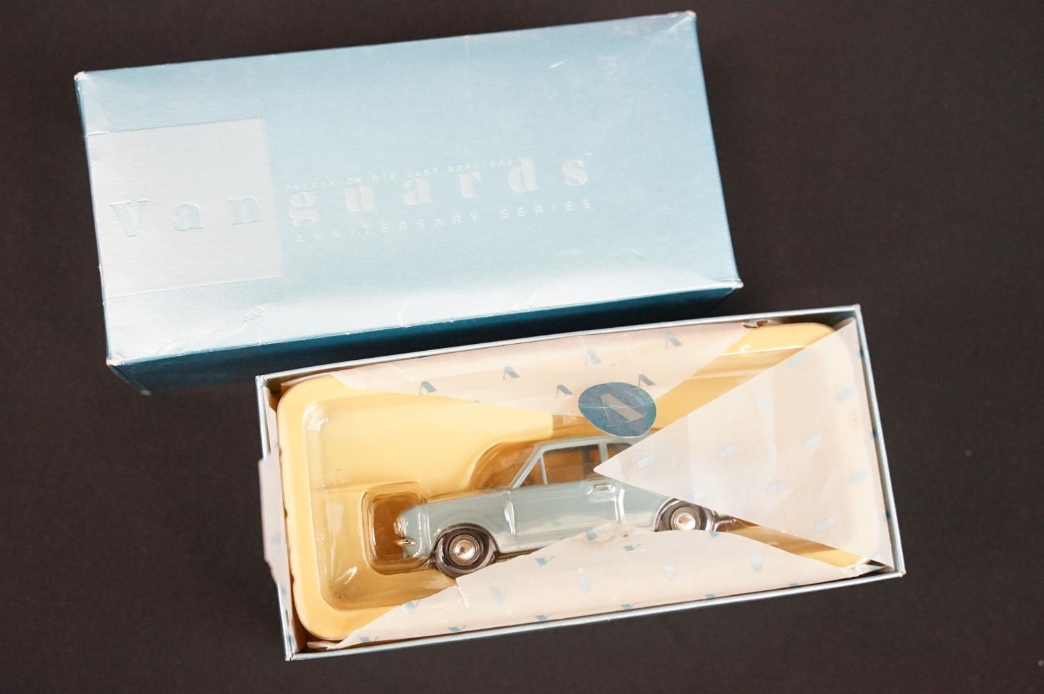 14 Boxed diecast models featuring 11 x boxed Vanguards diecast models to include BD1002, GD1002, FC1003, VA04100, VA04106, VA04105, VA04102, VA00414, VA04103, VA4002 and VA04111 and 3 x cased diecast models to include Ixo Models RAC022 Ford Escort RS Cosworth, Paul's Model Art Minichamps 430080201 Ford RS200 and Saico Ford Escort MK I RS2000, all diecast ex, boxes vg