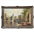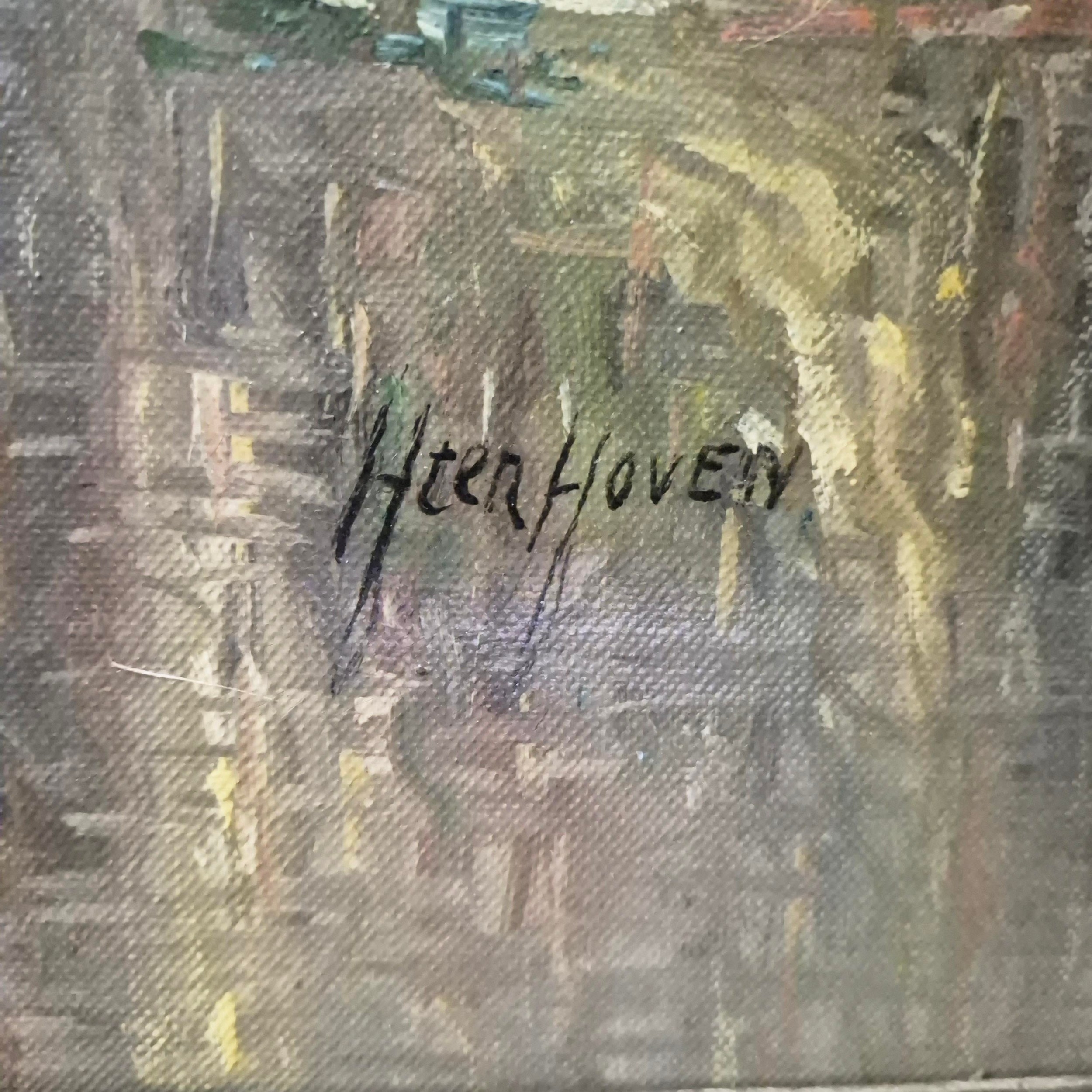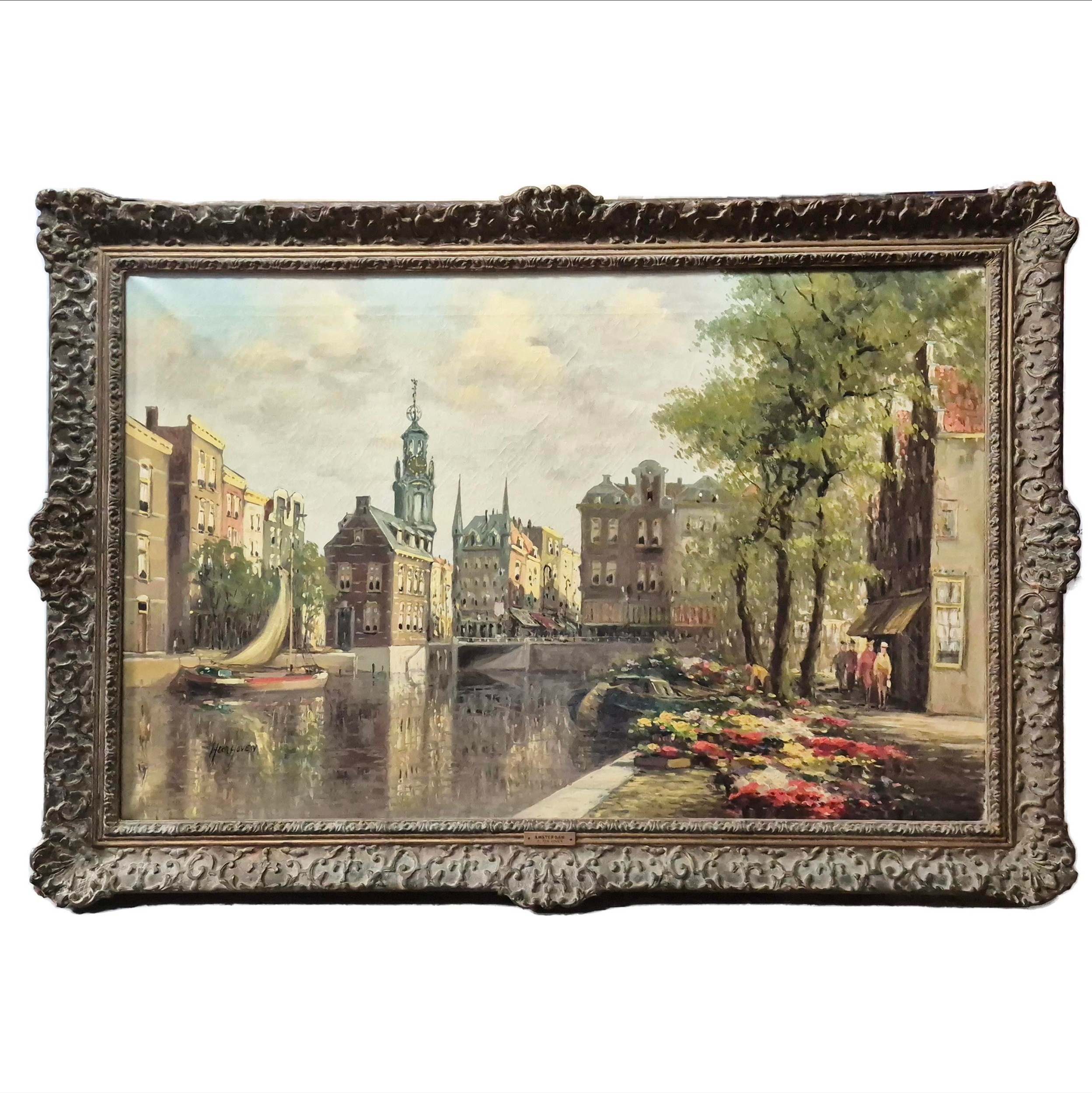 HENDRIK TEN HOVEN (1901-1978). BLOEMENMARKT, SINGEL CANAL EN MUNTTOREN. Oil on Canvas, 55cms x 80cms. signed, Framed.