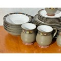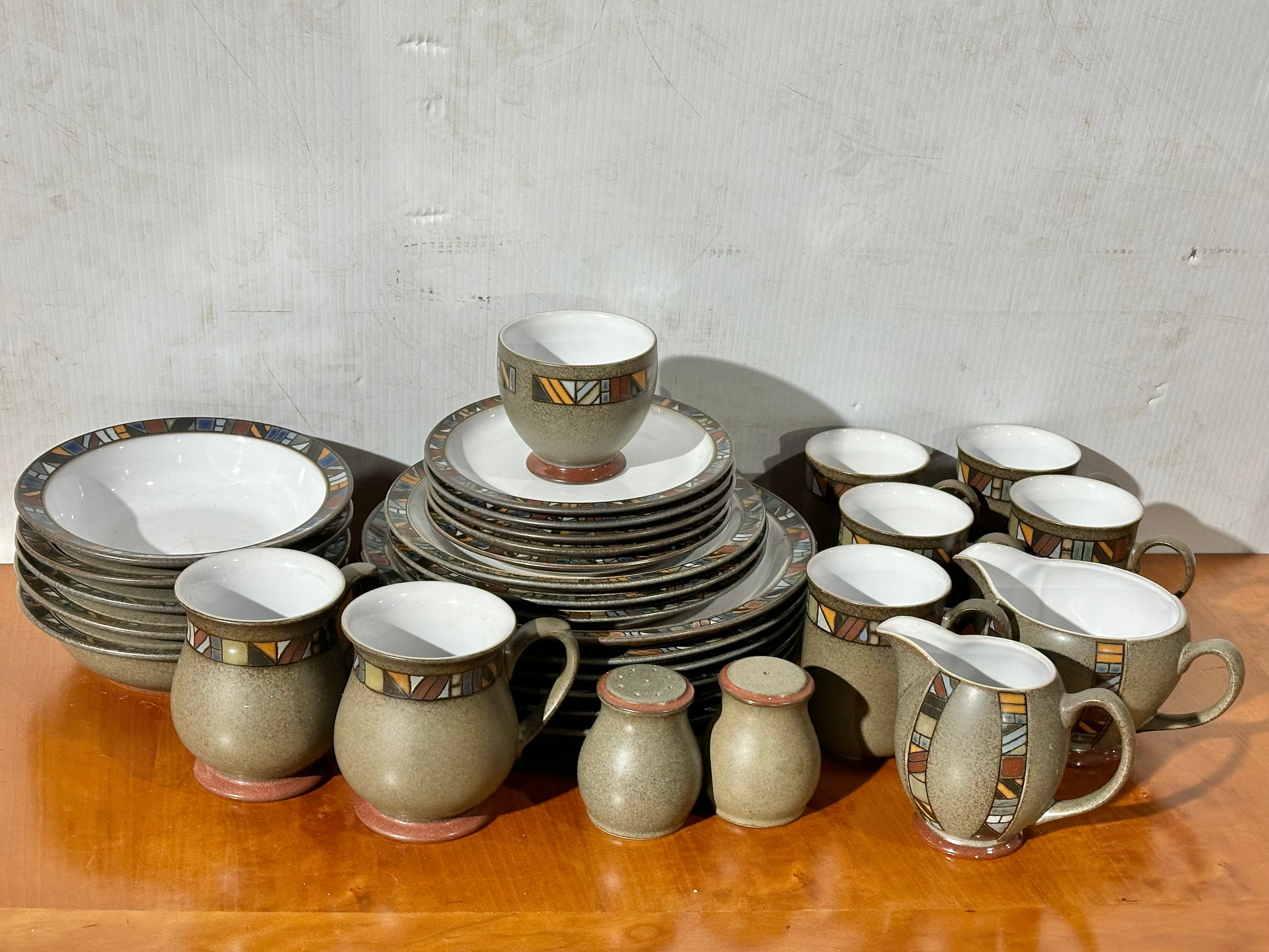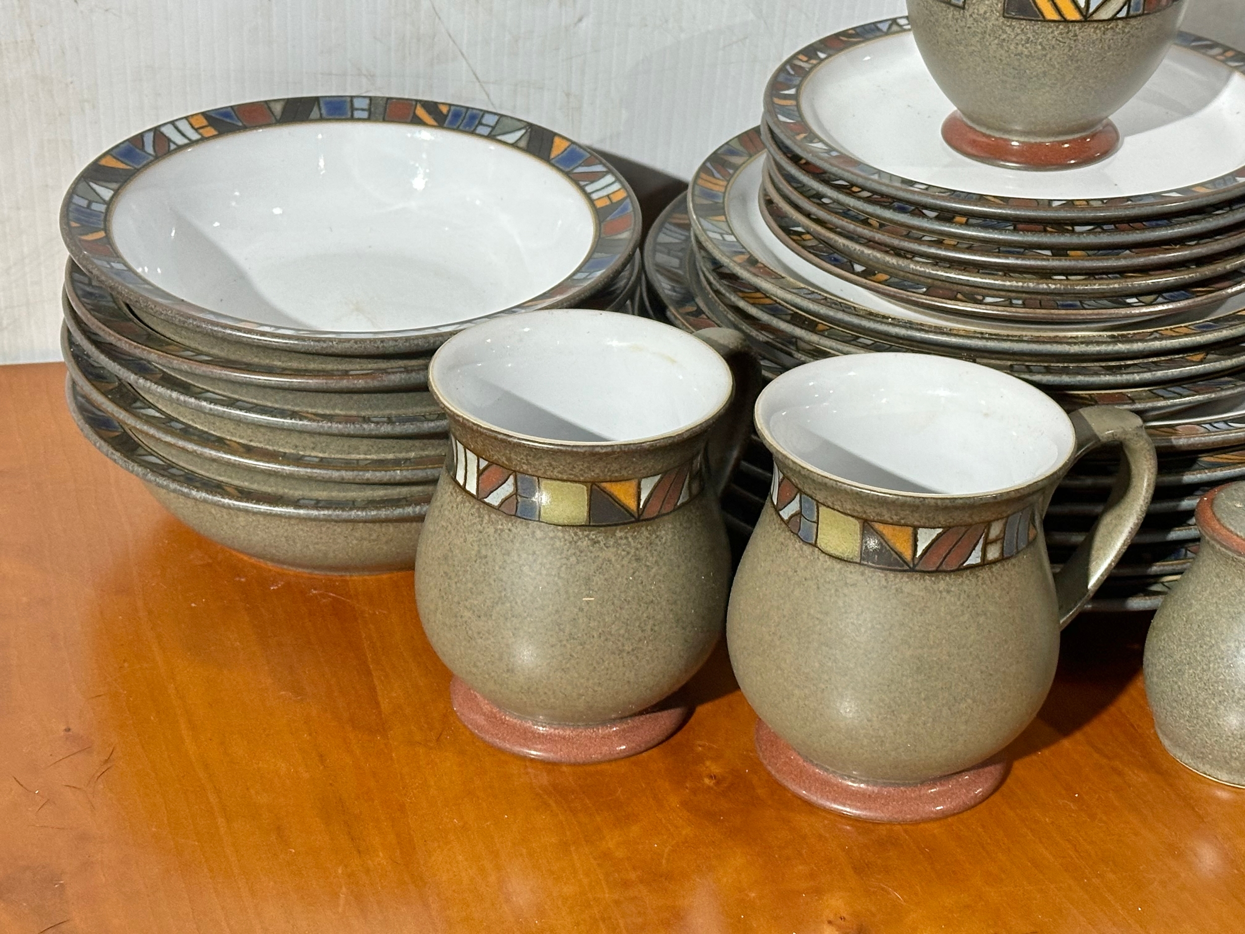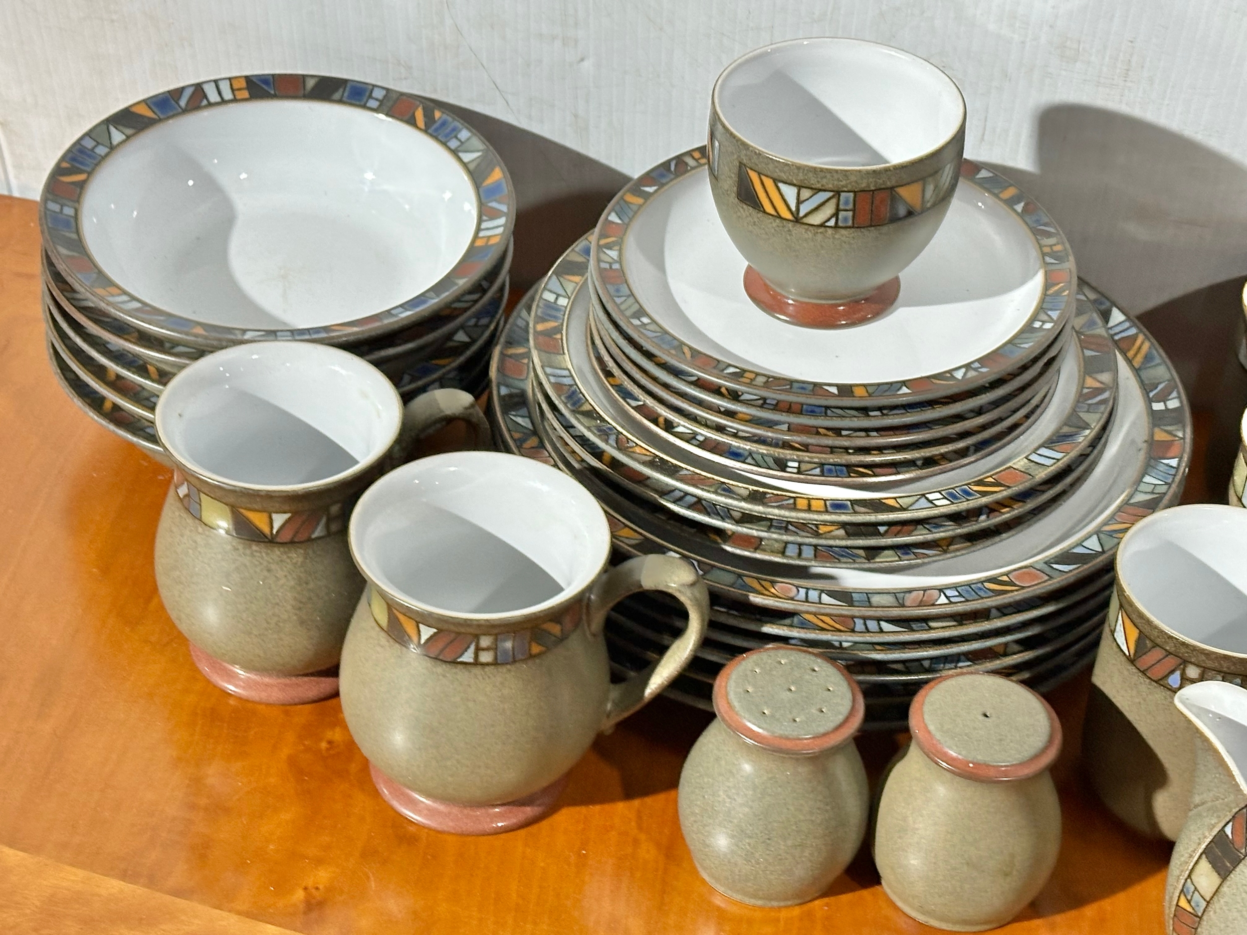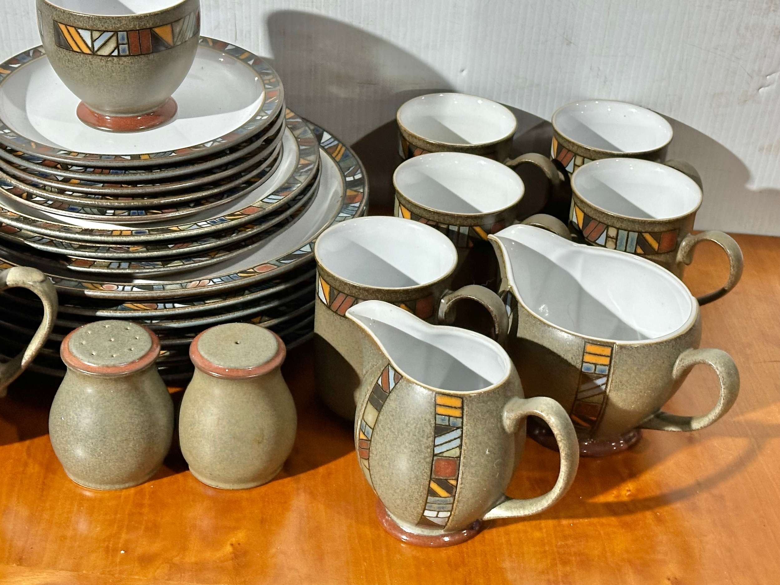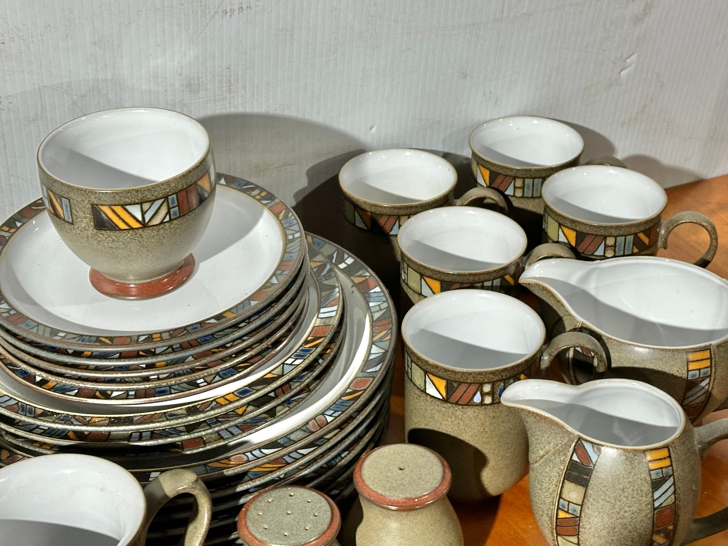 A Denby Marrakesh part dinner service/ tea service. 6 dinner plates, 7 tea cups/coffee cups. 2 milk jugs. 5 cereal bowls etc