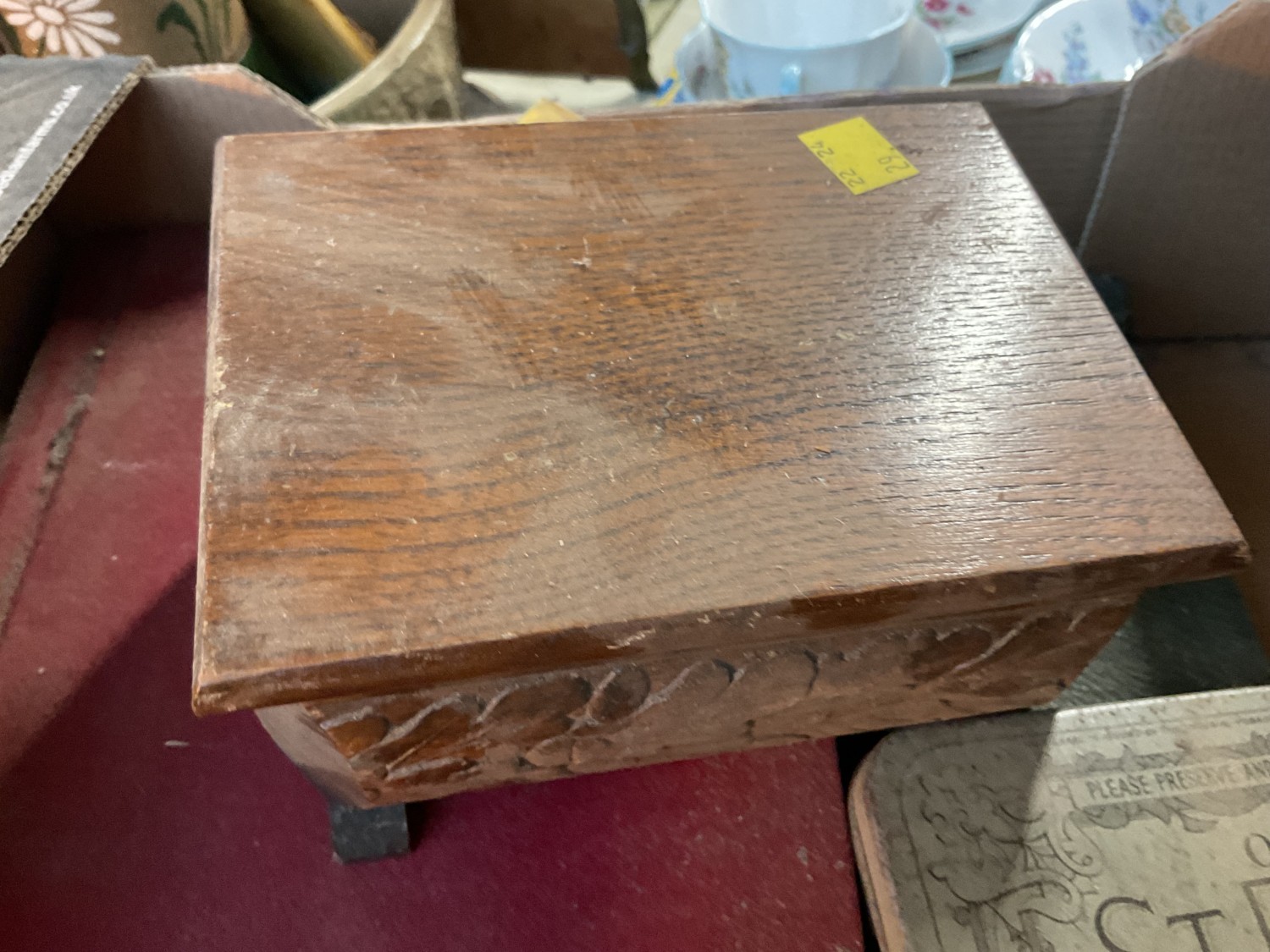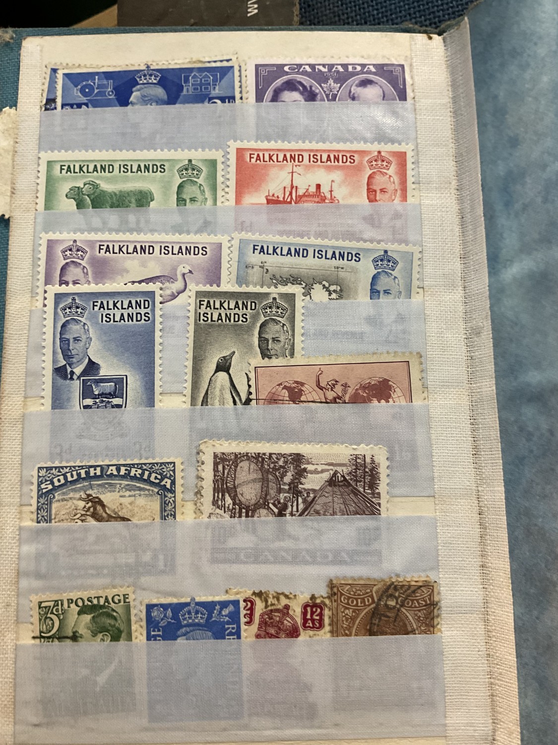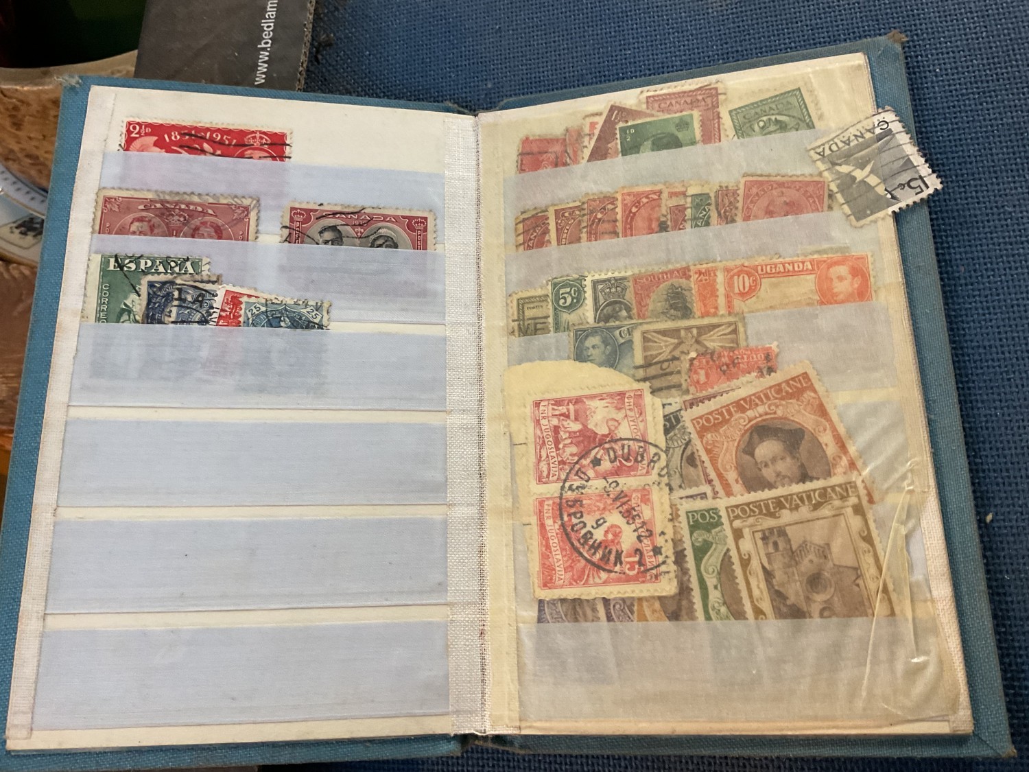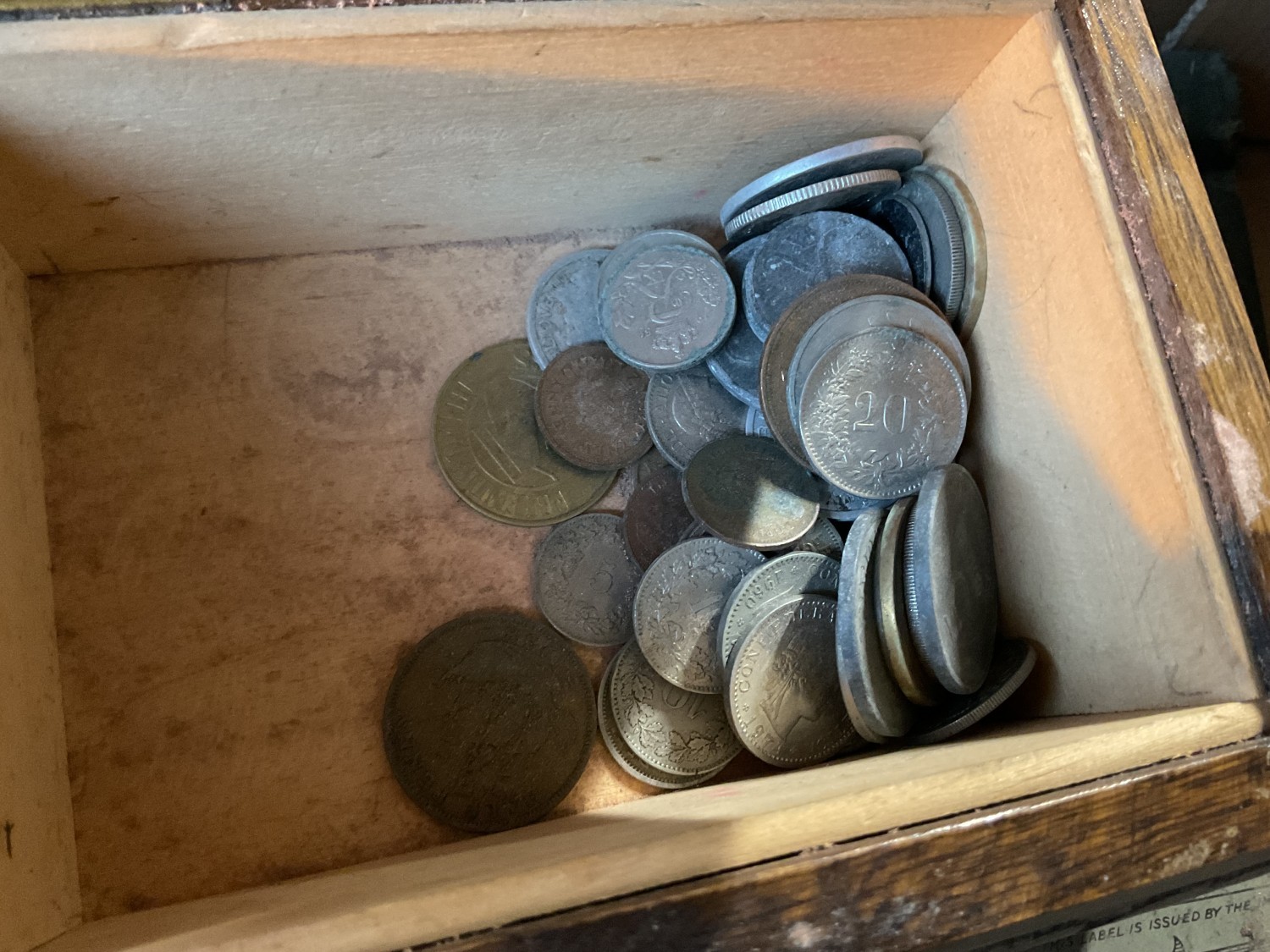 Box, incl qty of stamps, few coins, etc