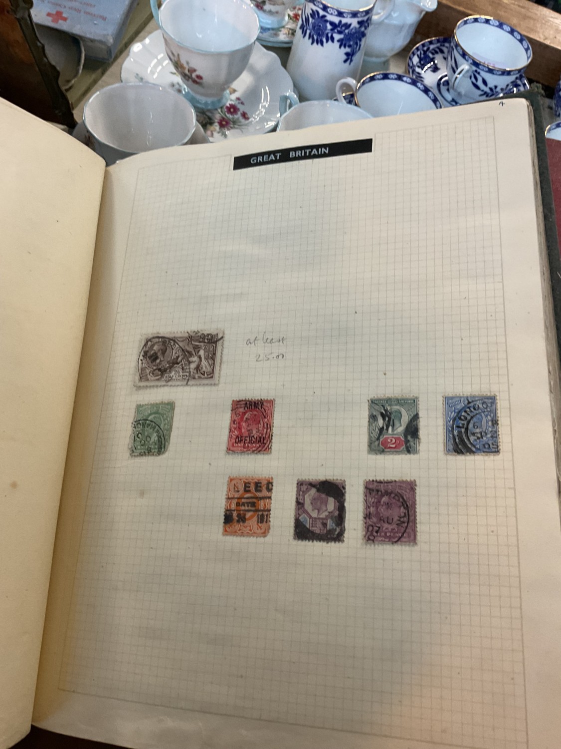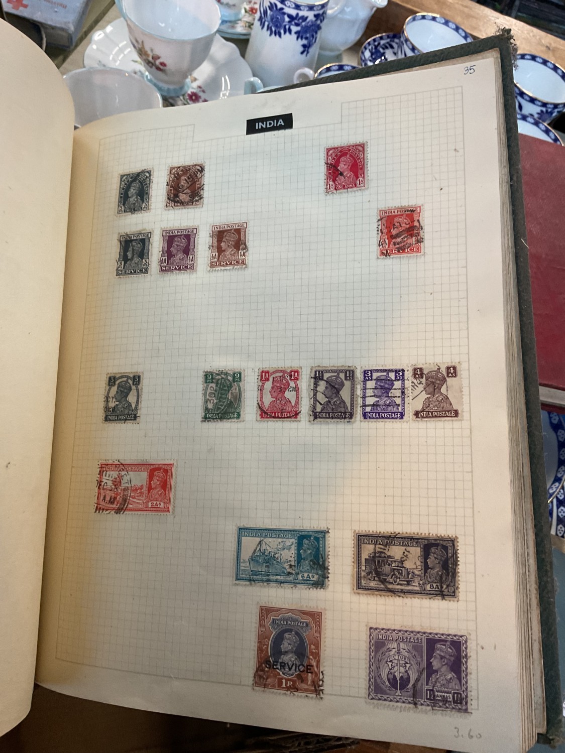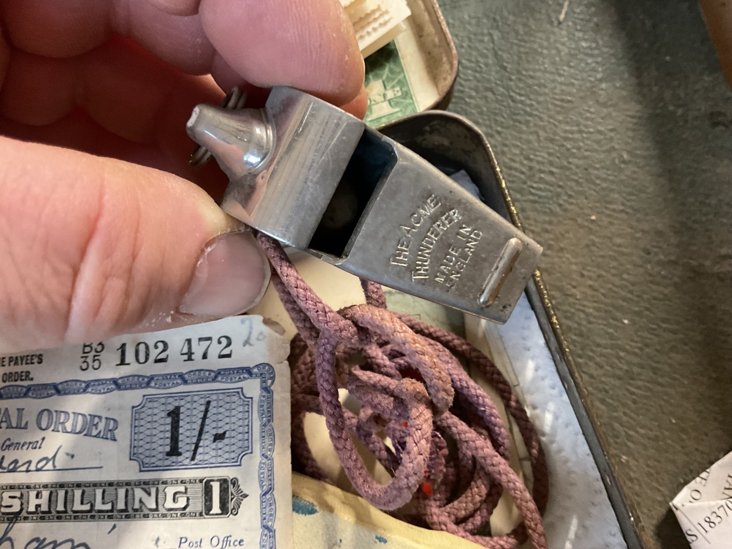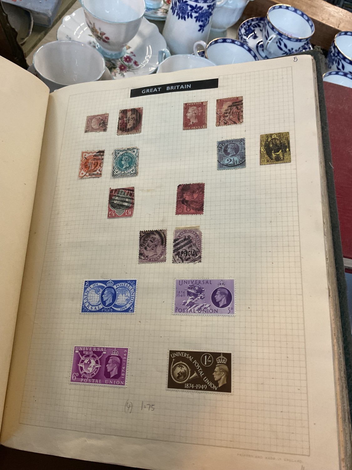 Box, incl qty of stamps, few coins, etc