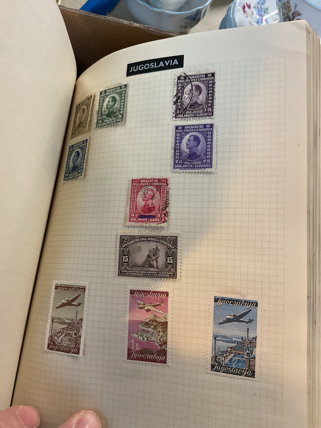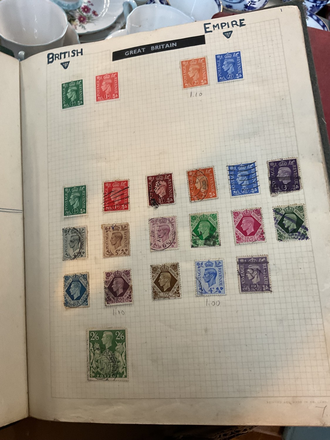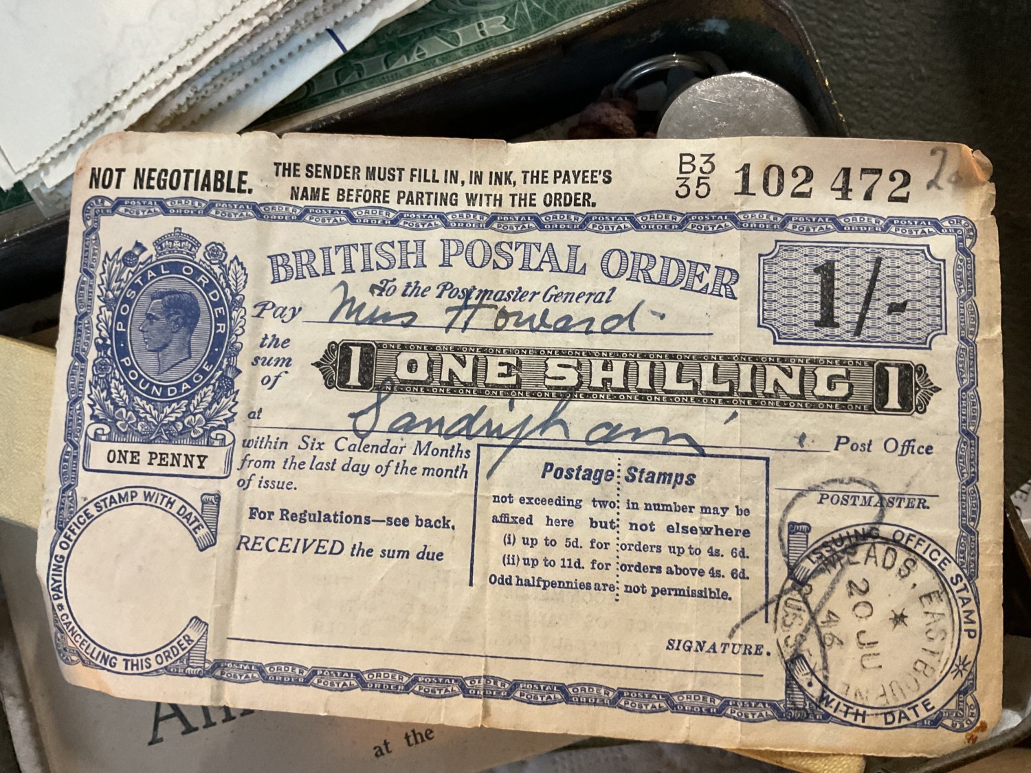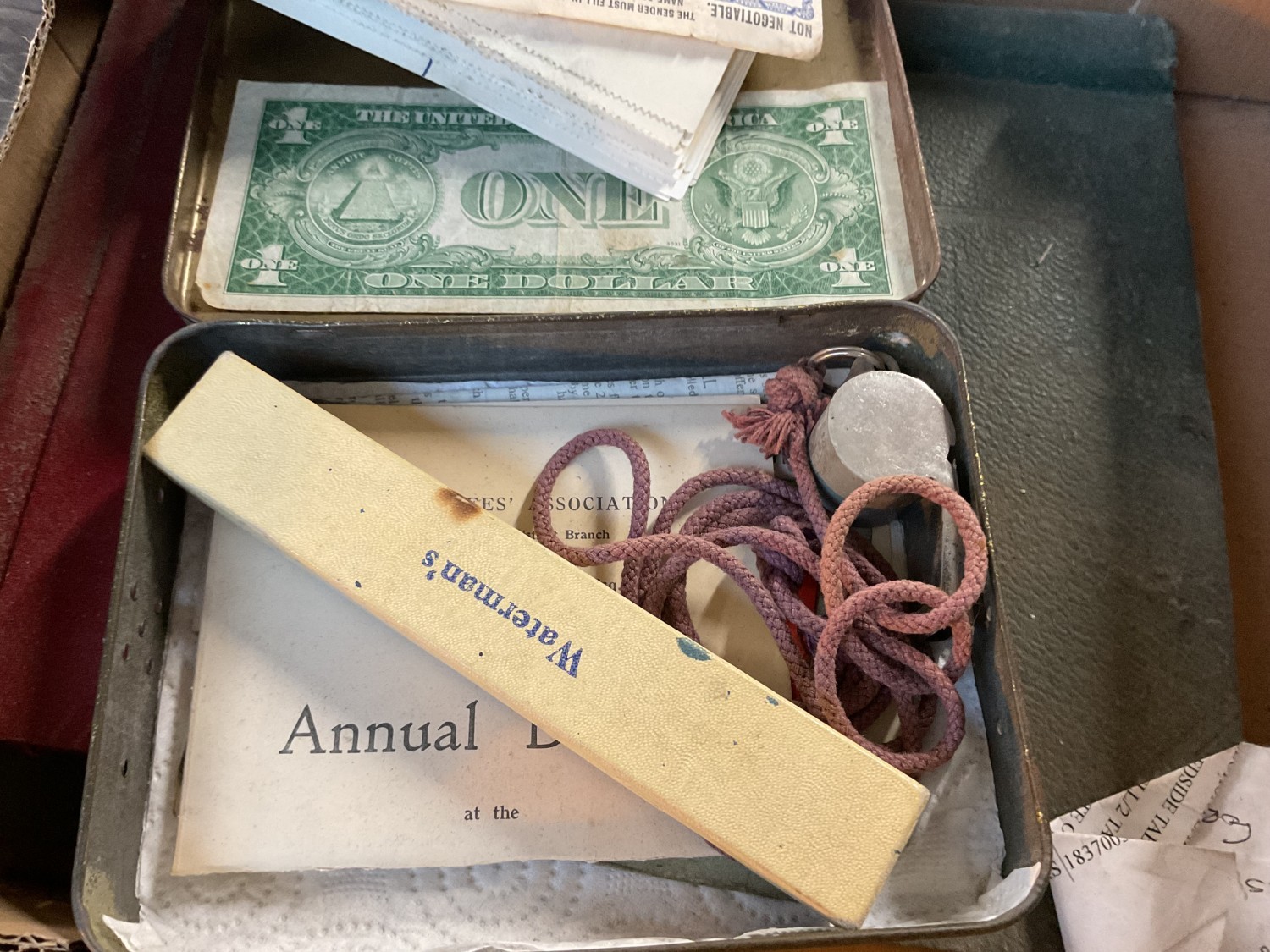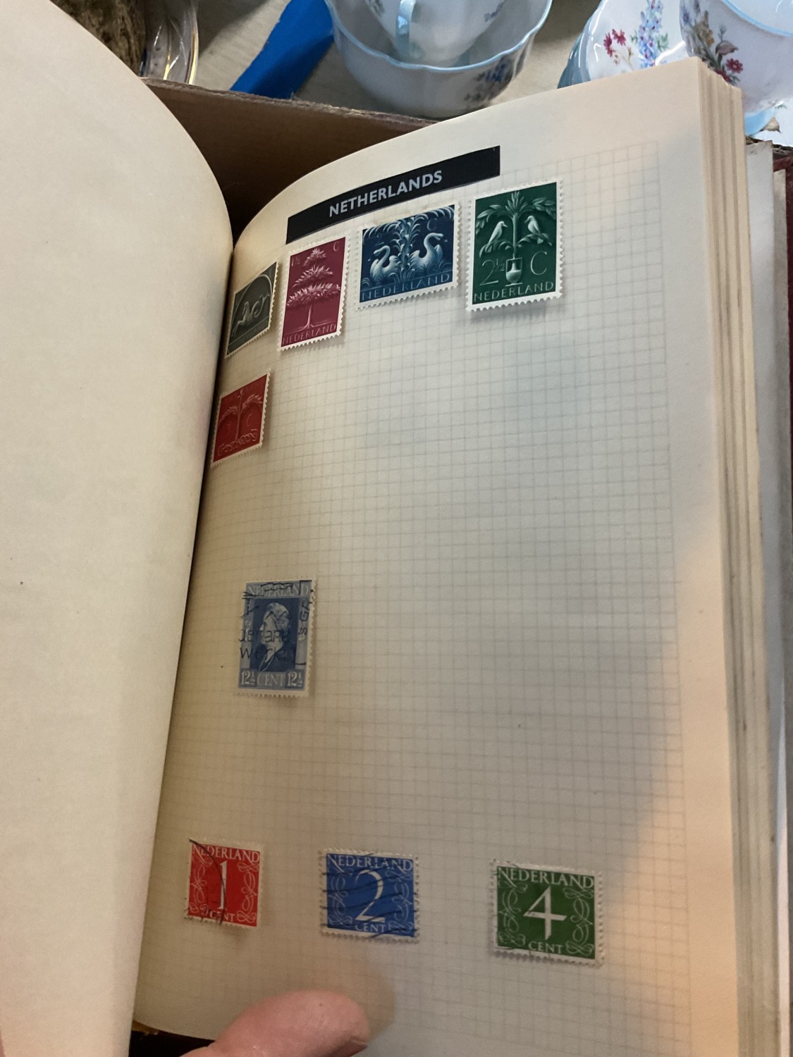 Box, incl qty of stamps, few coins, etc