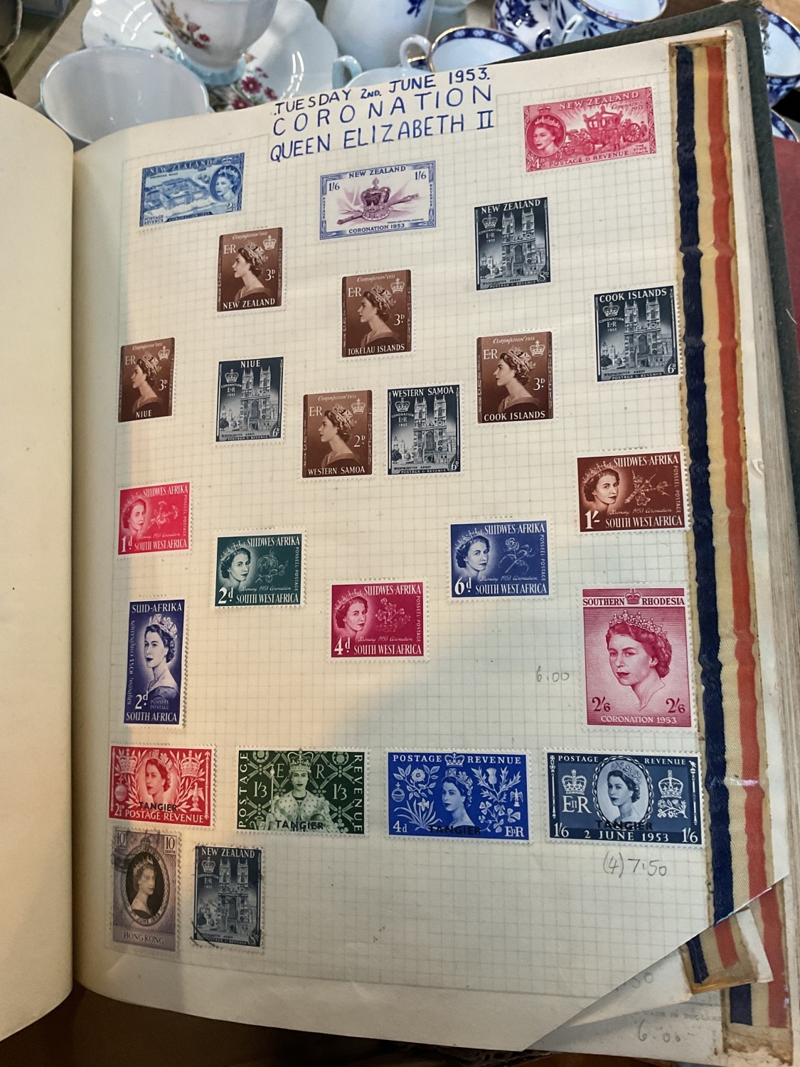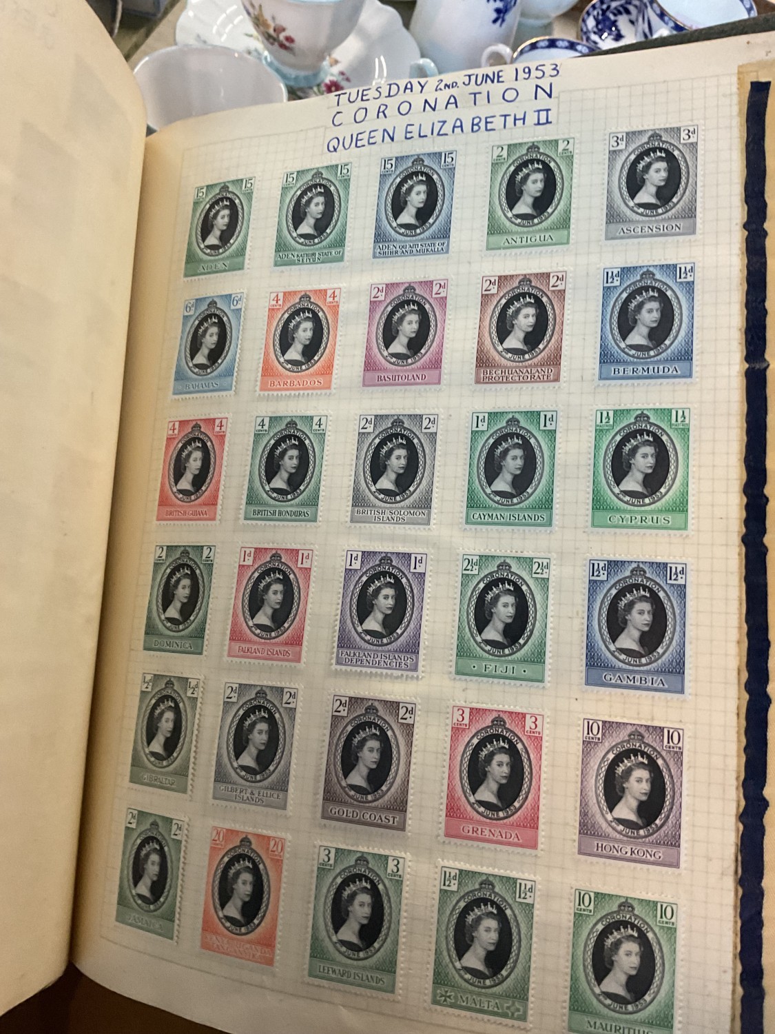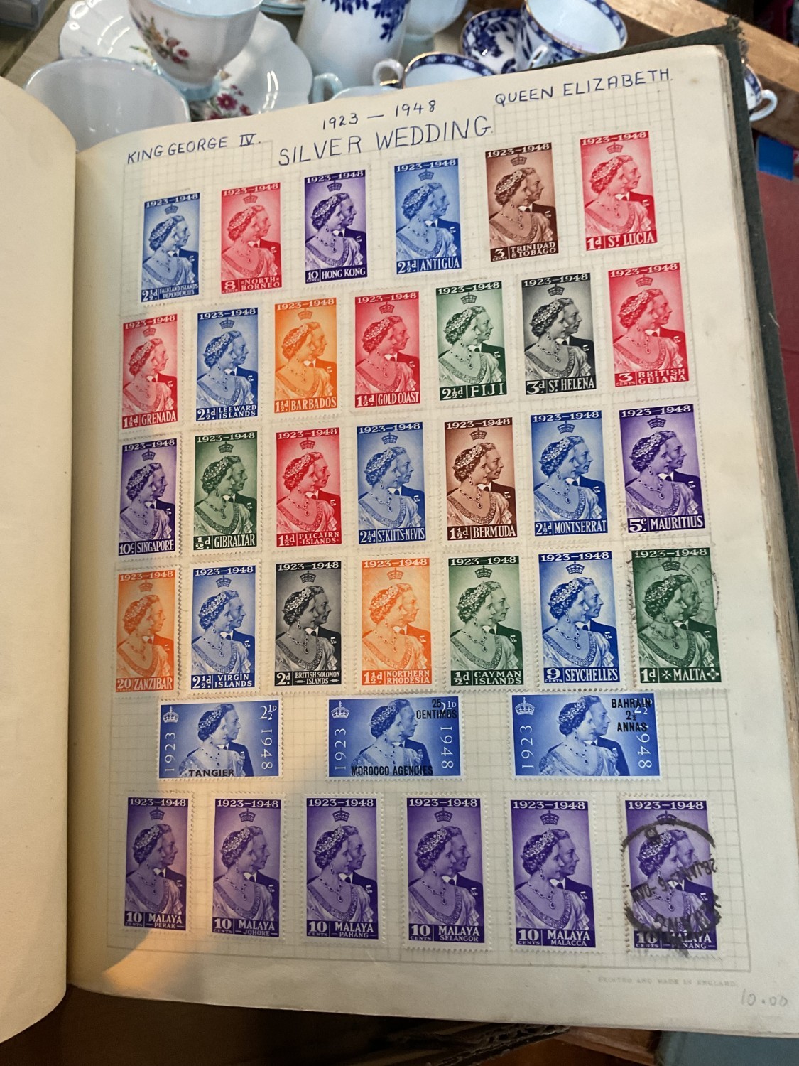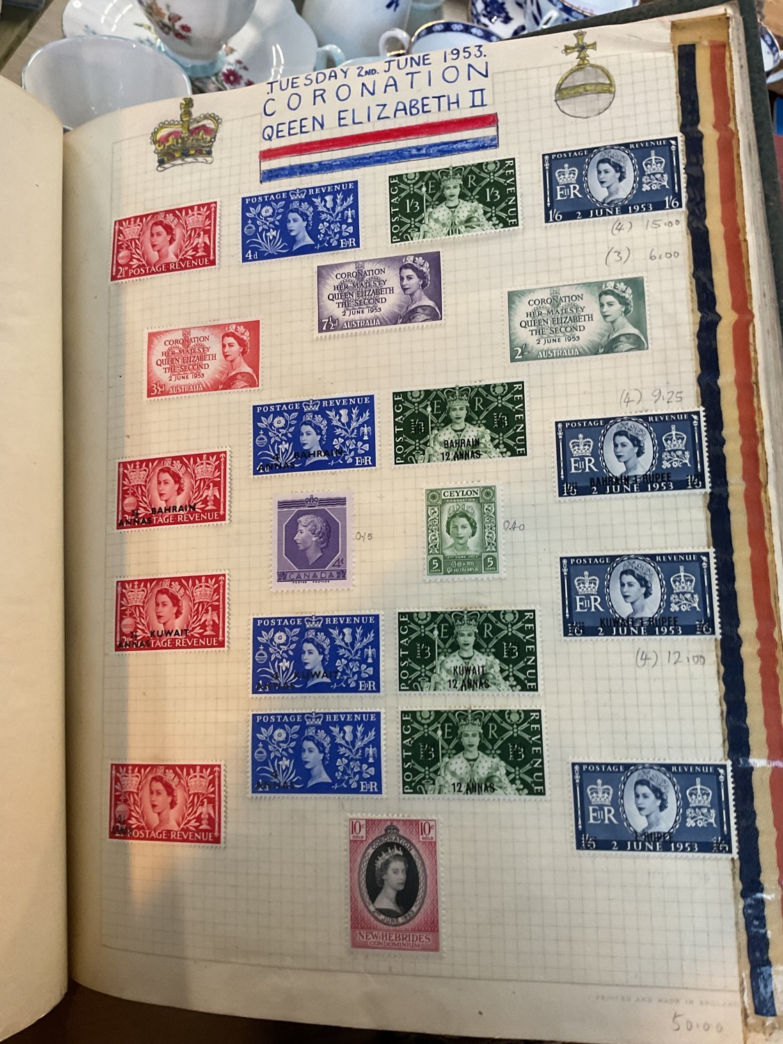 Box, incl qty of stamps, few coins, etc