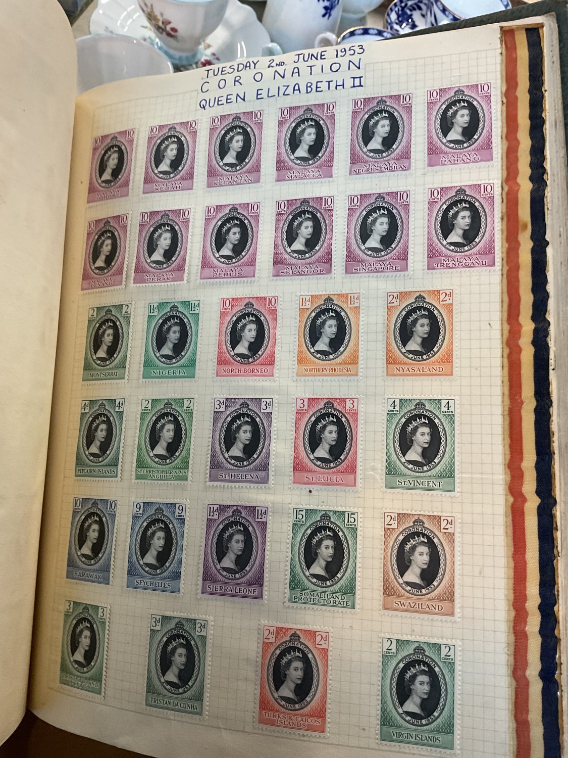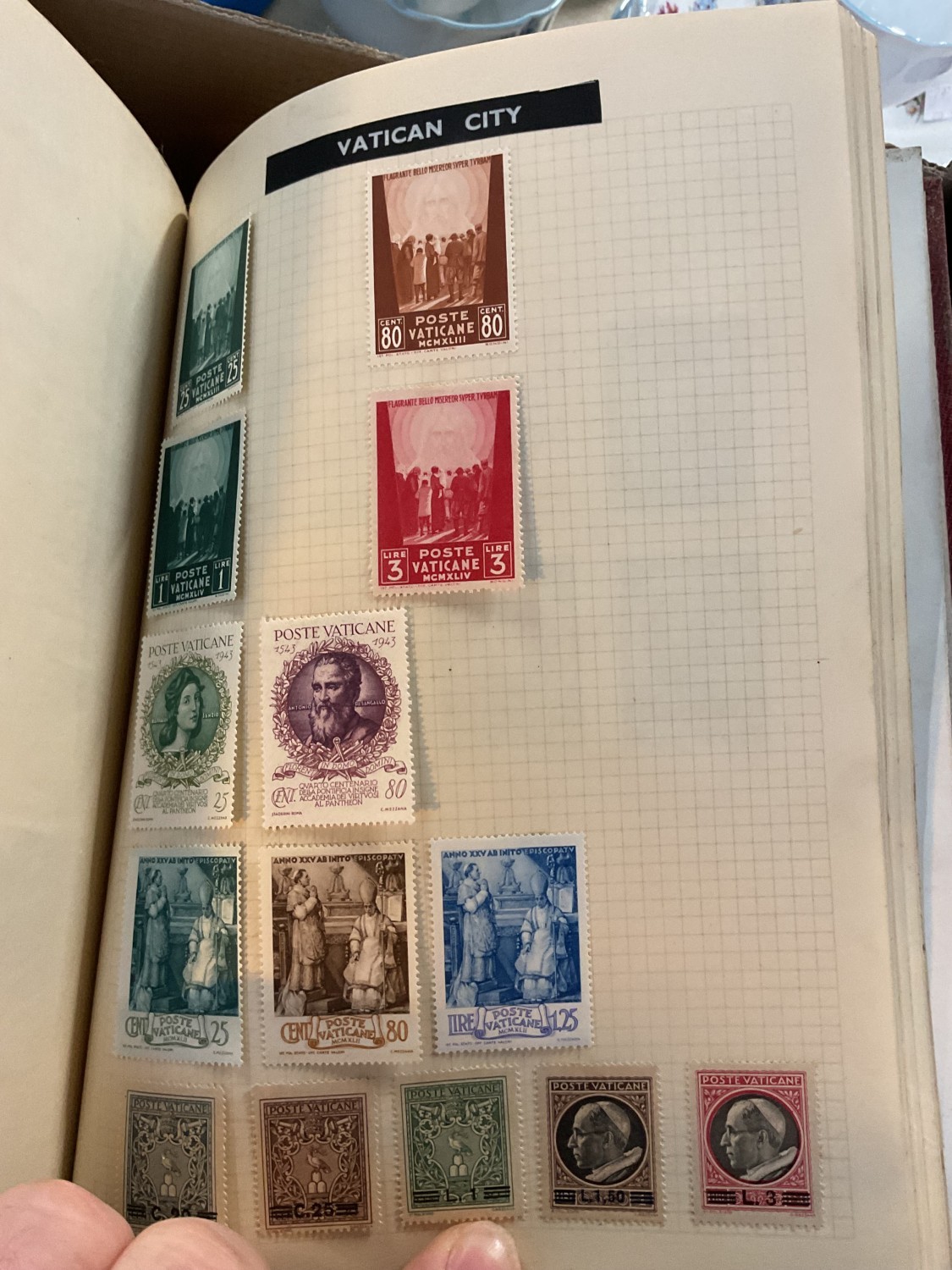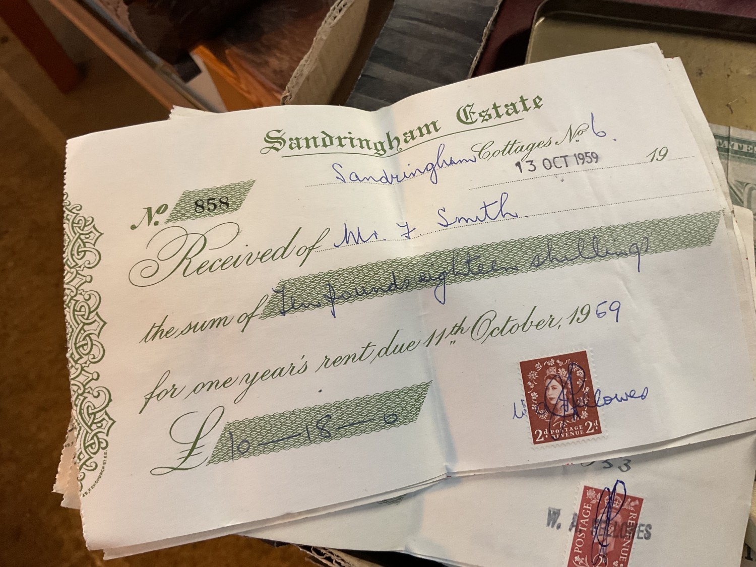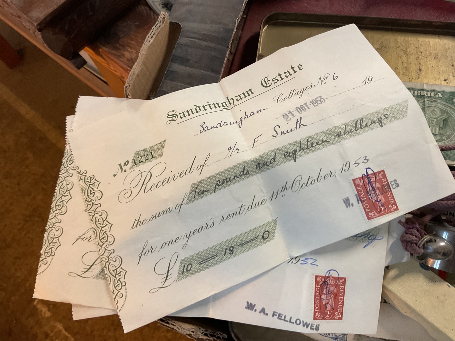 Box, incl qty of stamps, few coins, etc