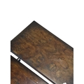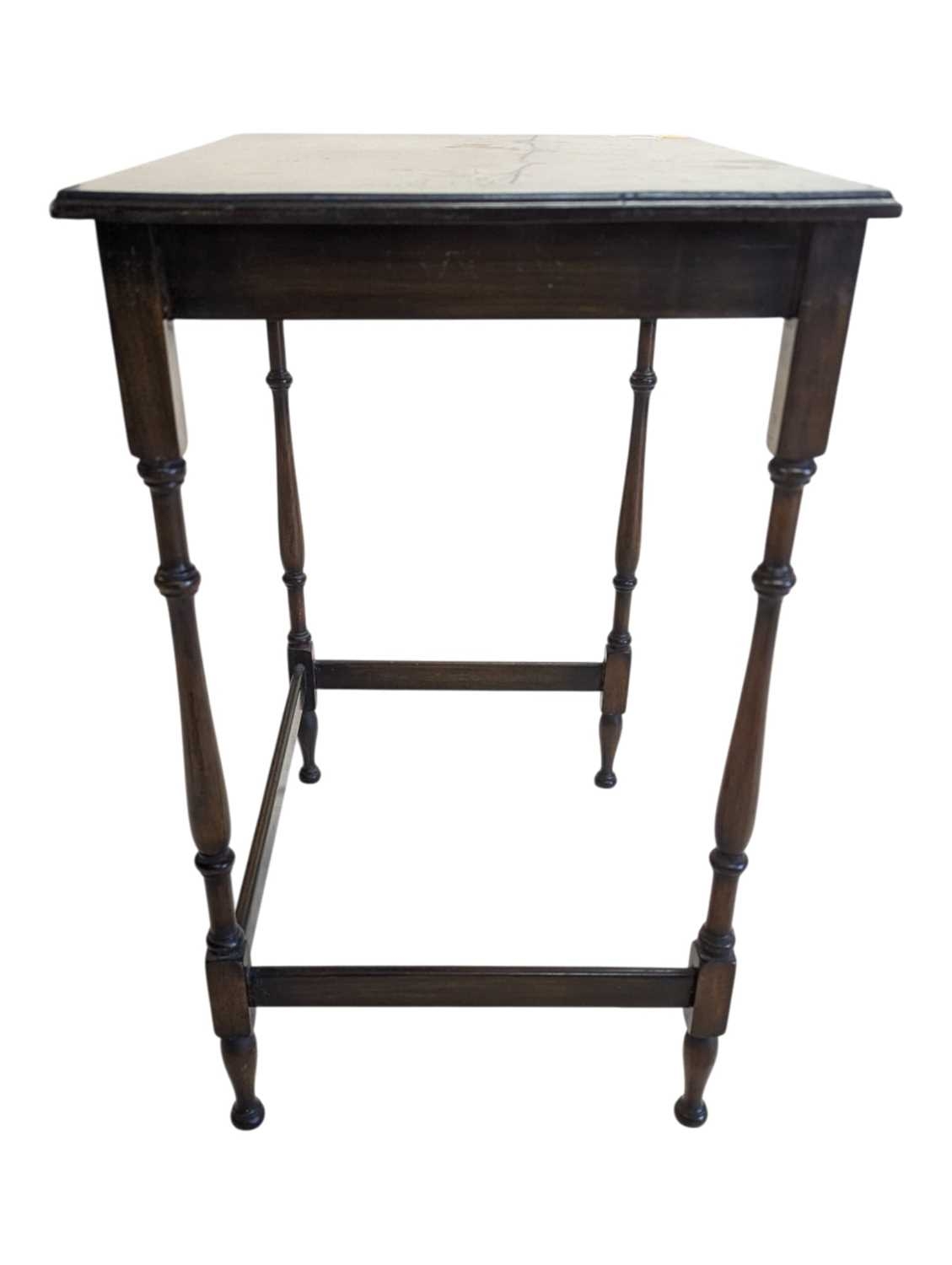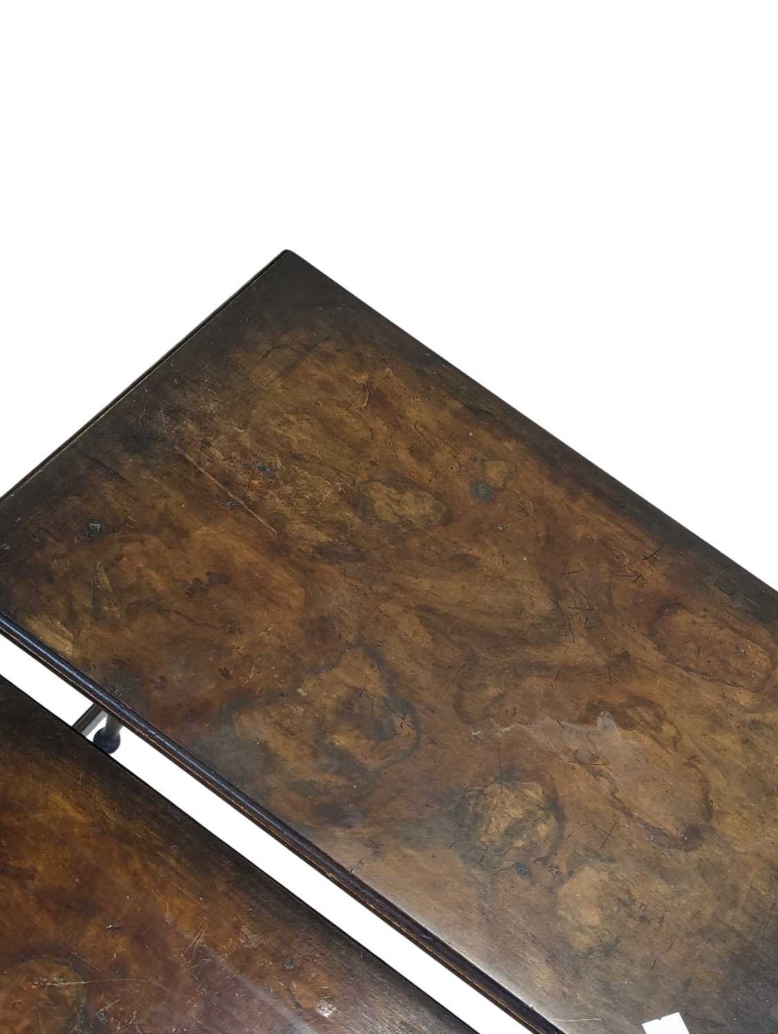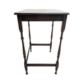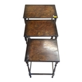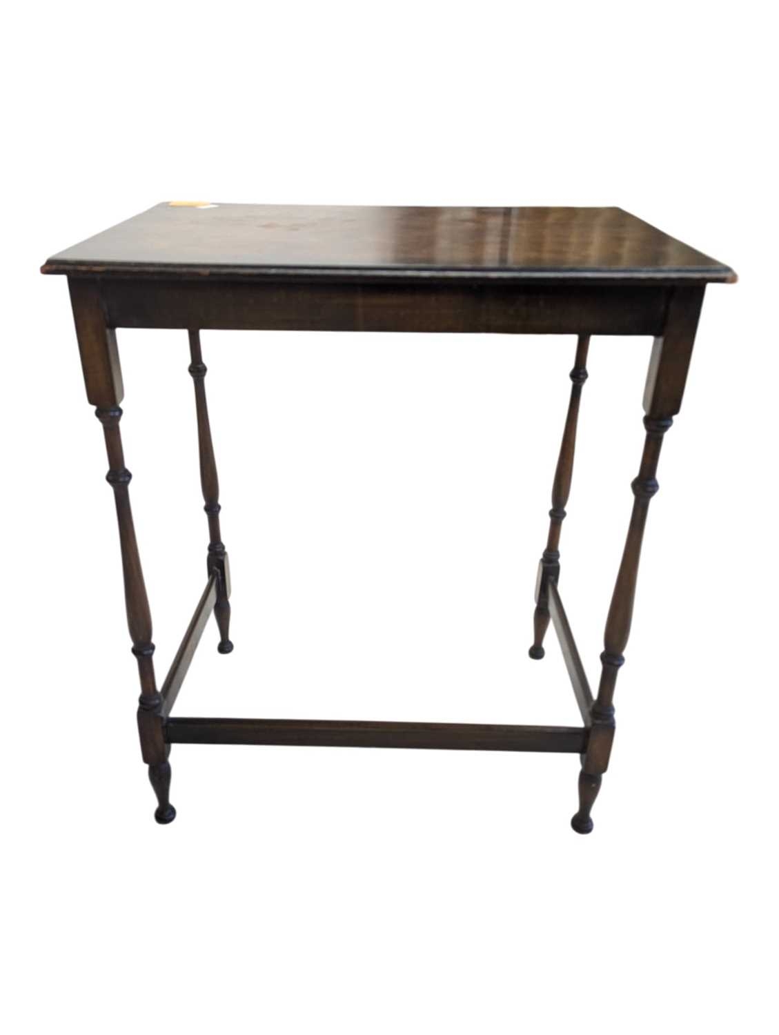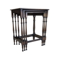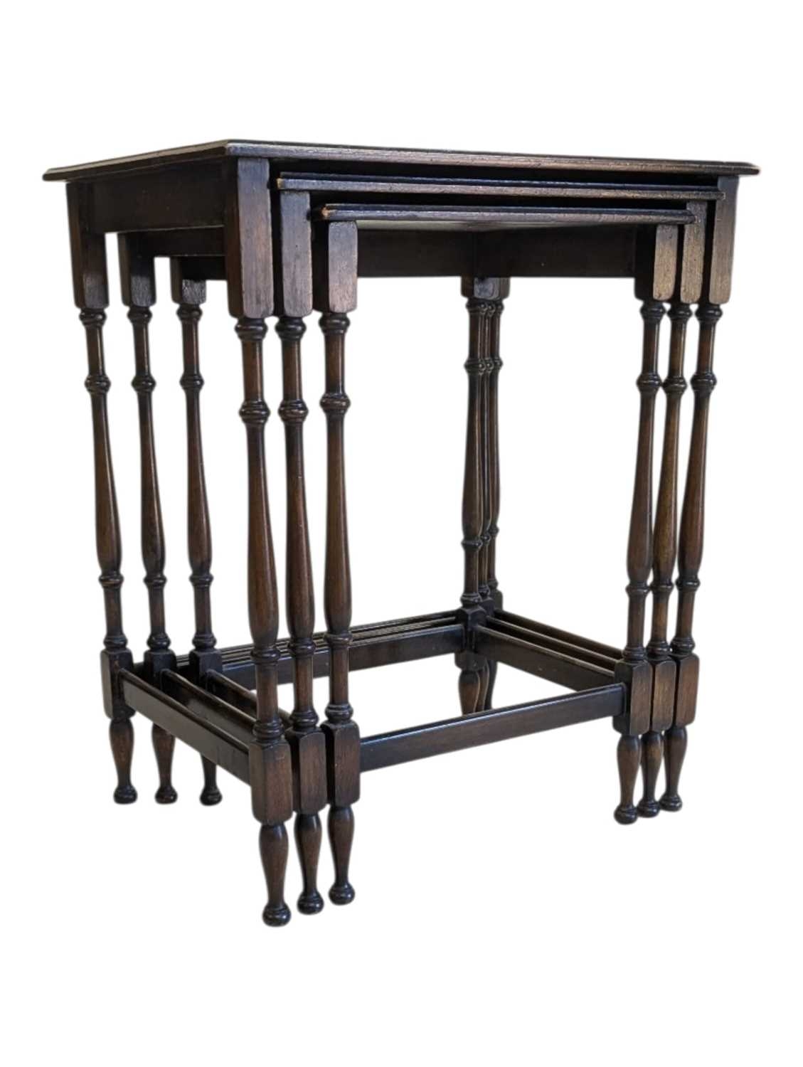 A 20th century walnut nest of tables. Graduating form with turned supports united by perimeter stretchers. 54x46x33cm