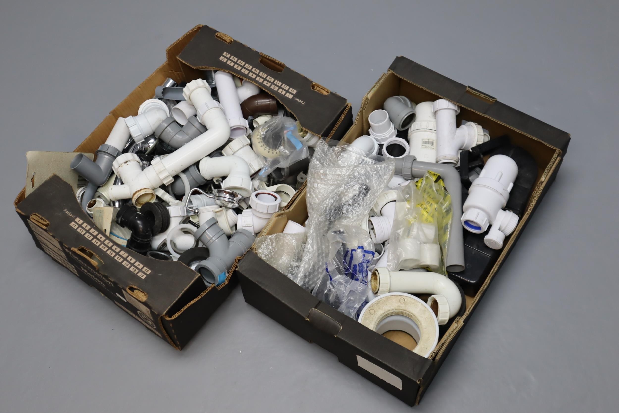 Two Boxes of Assorted Plumbing Fittings and Accessories.