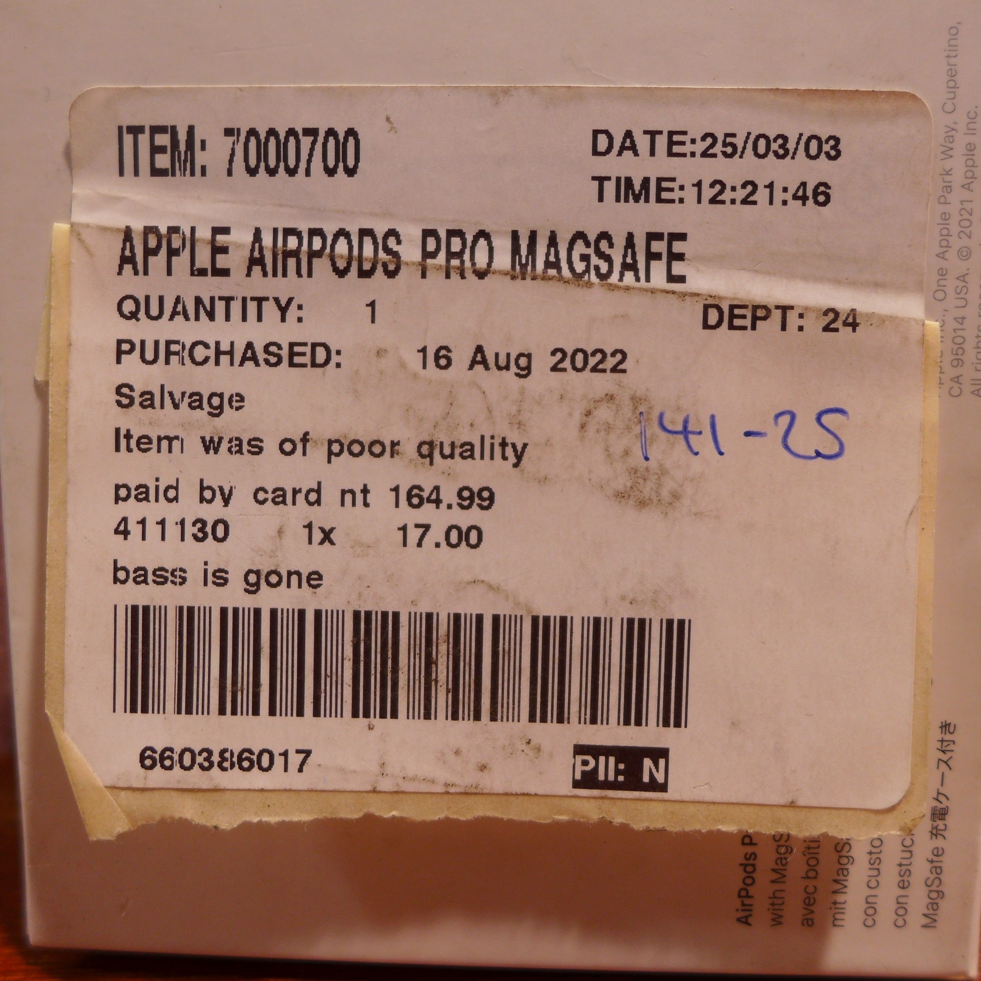 Apple AirPods Pro (model no: mlwk3zm/a) original RRP £164.99 + VAT (357-30) *This lot is subject to VAT