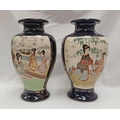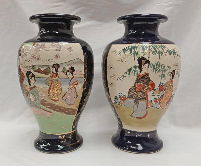 PAIR OF JAPANESE SATSUMA POTTERY BALUSTER VASES, 31CM TALL