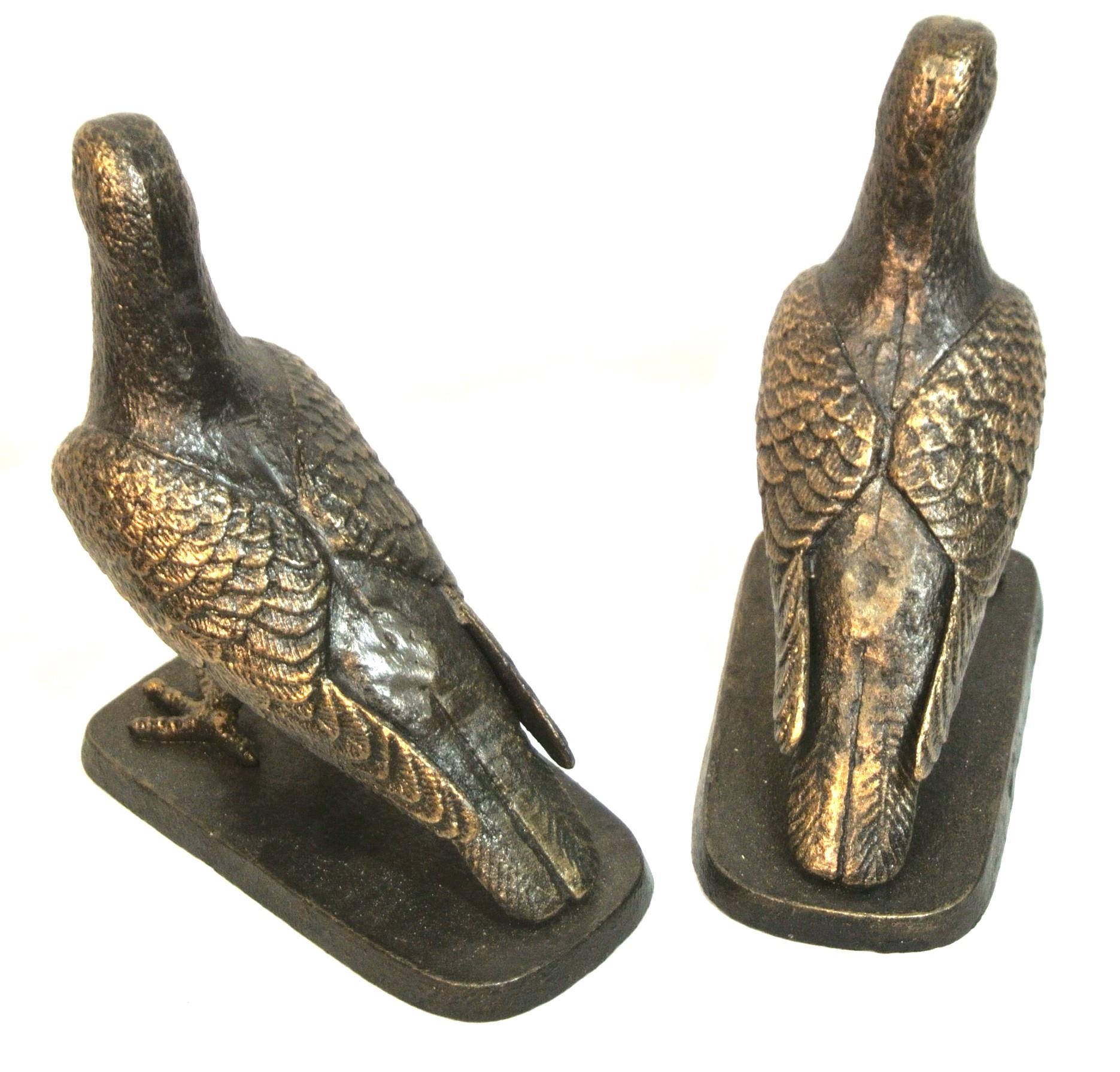 Pair of Edwardian style cast iron figures of birds on shaped stands
