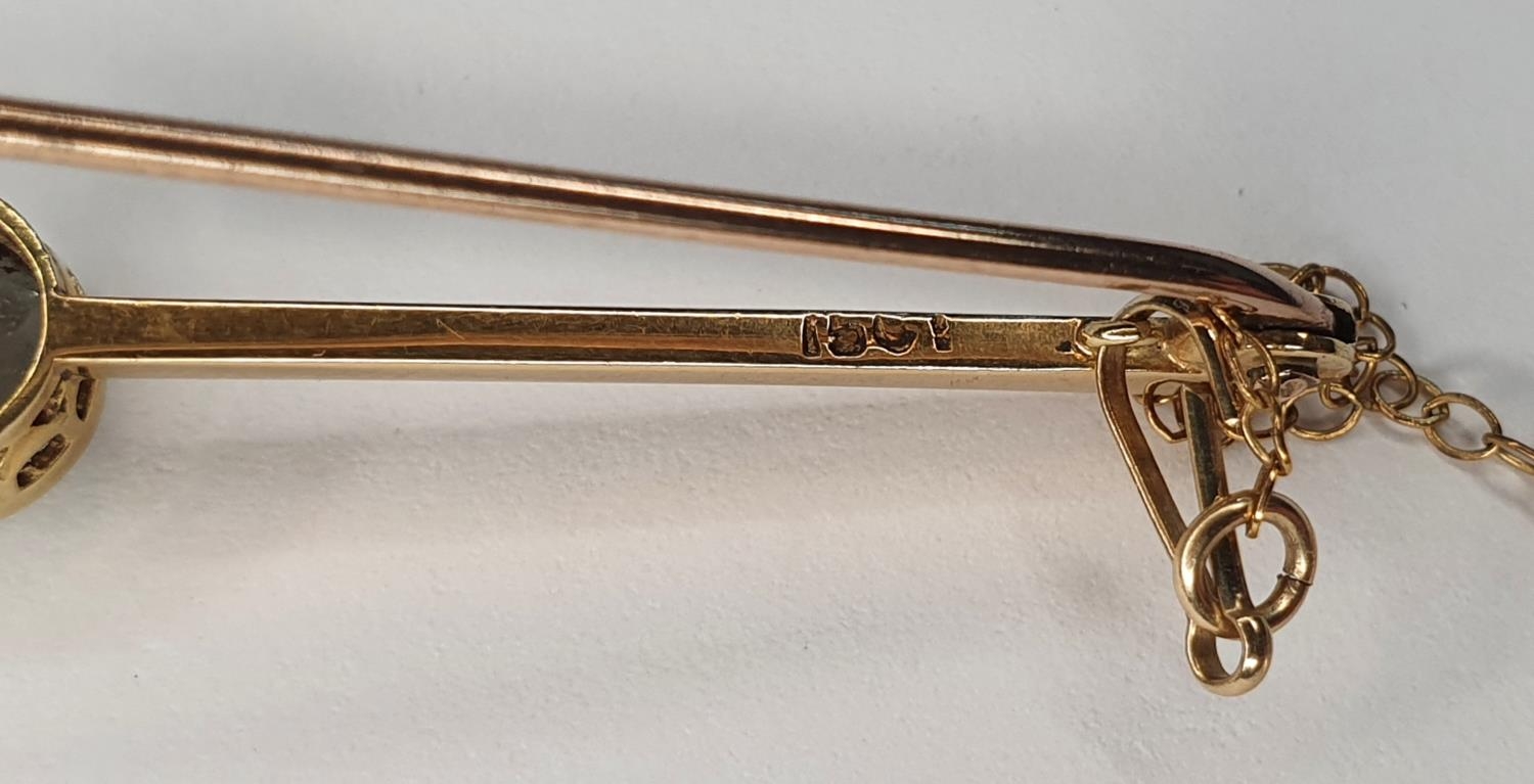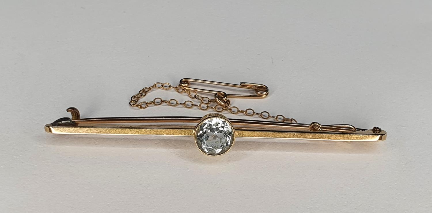 Fine quality Edwardian 15ct yellow gold brooch set with a solitaire round cut Tourmaline,