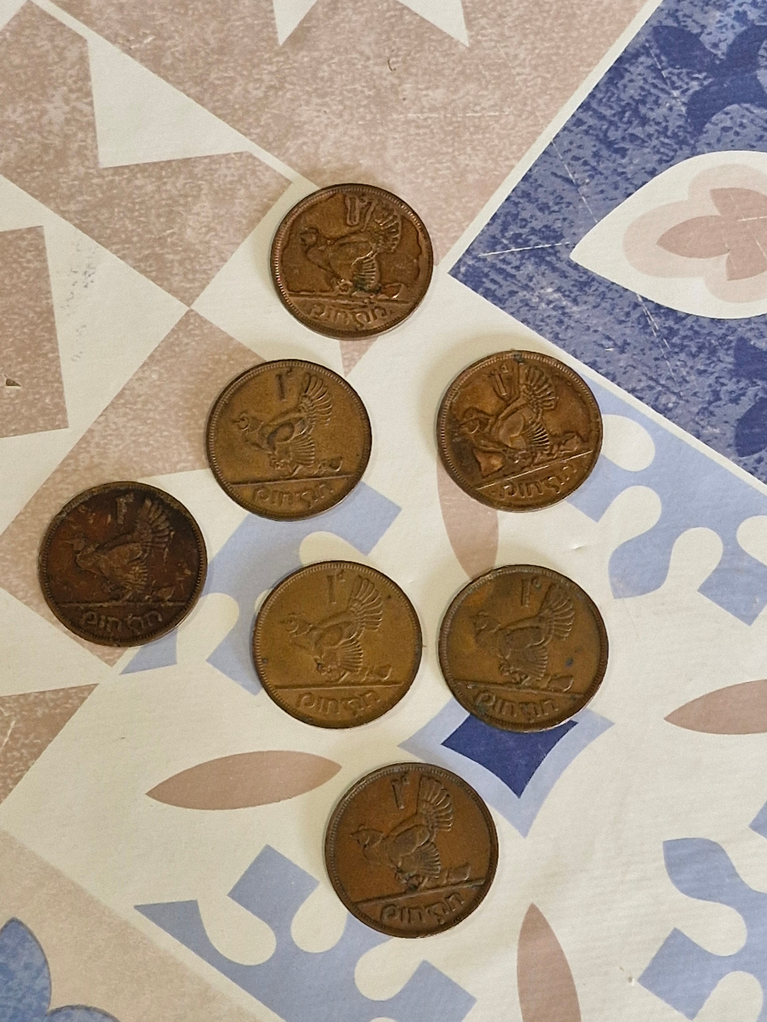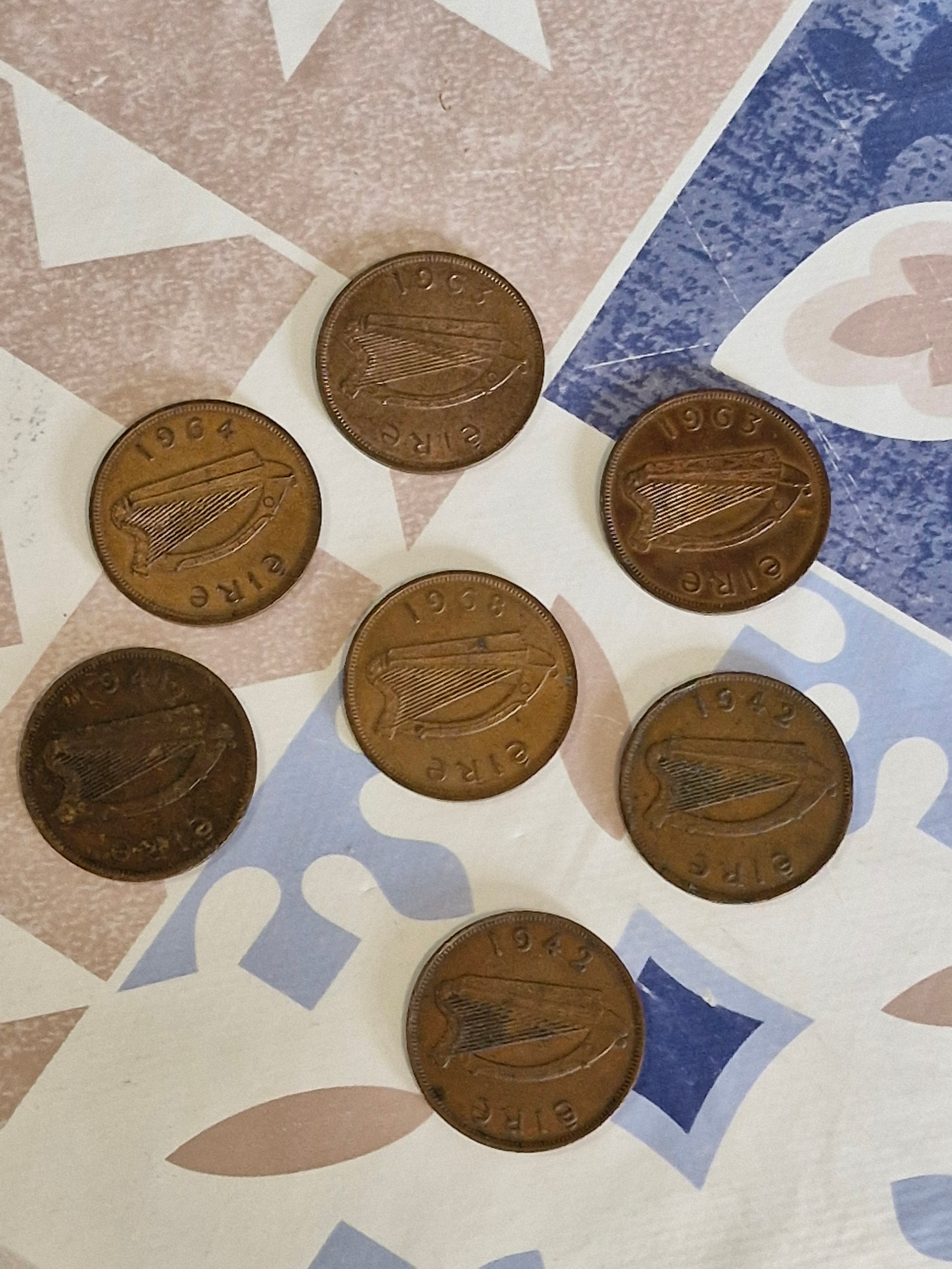 7 Irish one pennies - 1d - 1942, 1963, 1963, 1964, 1968, 1942 & 1942