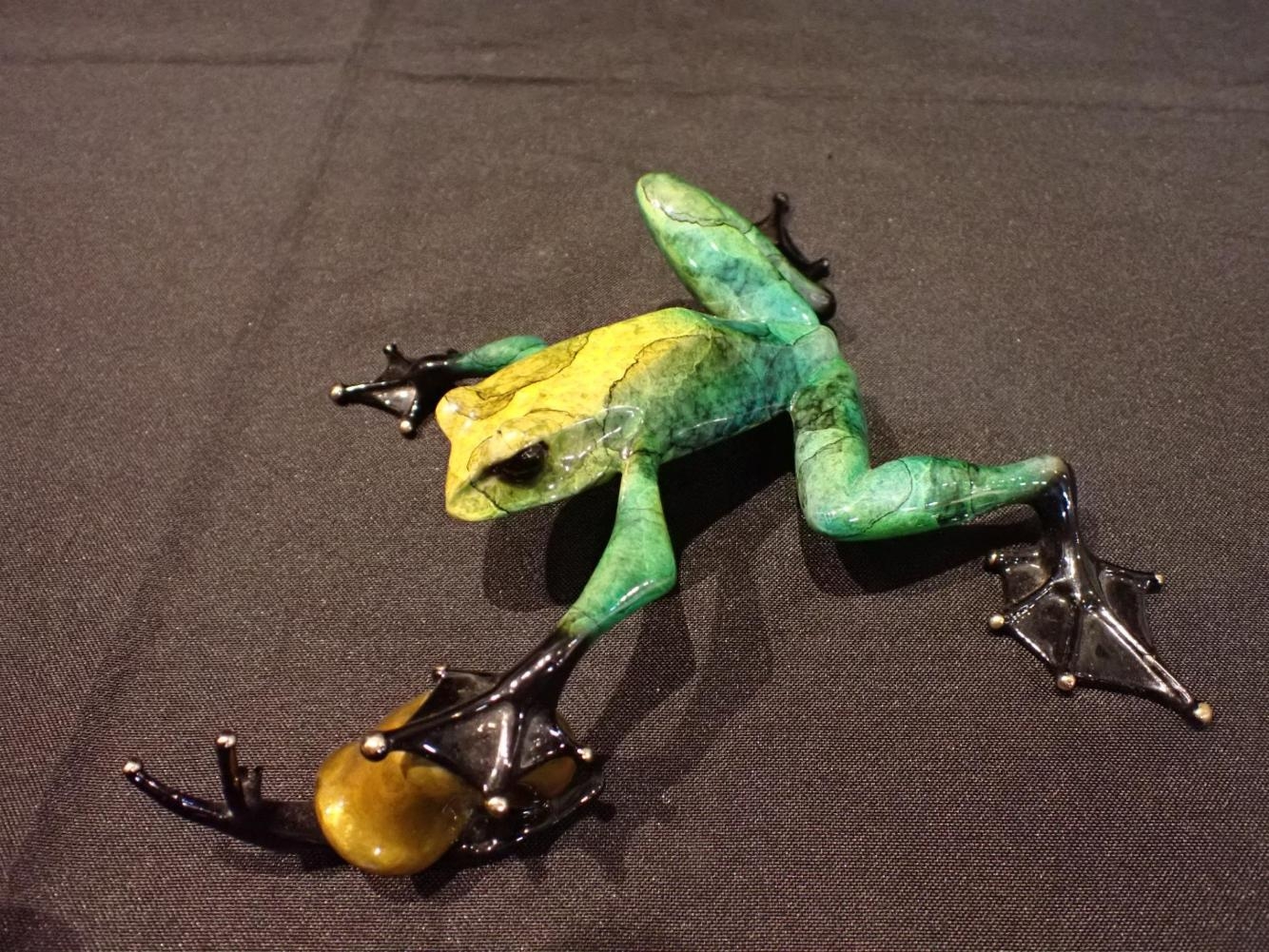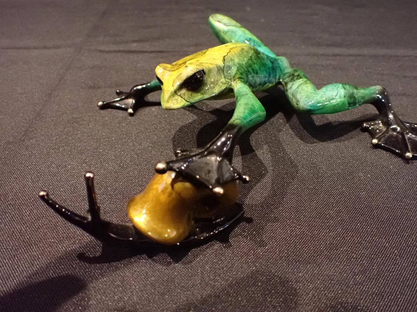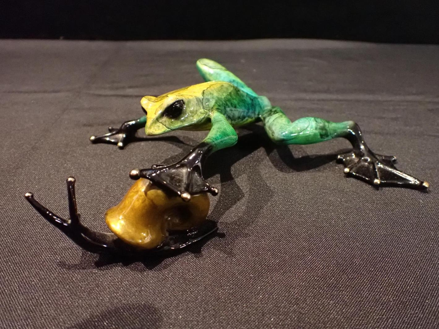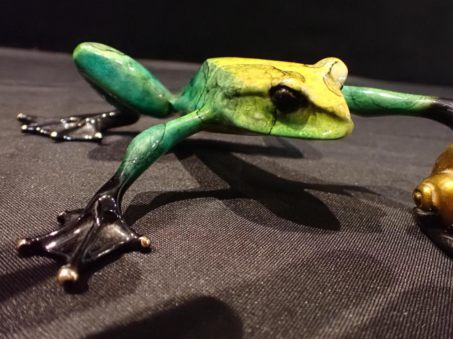 TIM 'FROGMAN' COTTERILL, b.1950:an enamelled bronze frog with snail, signed 'Tim 07' 520/2500, approx 20cm long