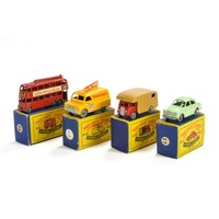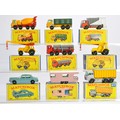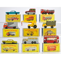 Matchbox Regular wheels comprising nine boxed issues as shown. Jumbo crane, Pipe truck, Ford Zodiac etc. Mostly very good or excellent in some good but mostly very good/excellent boxes. Generally Ex-Shop Stock.