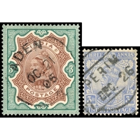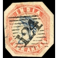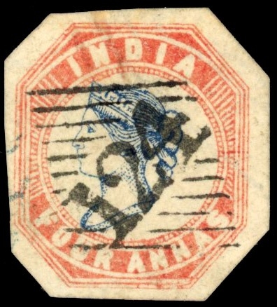 1854-5 4a blue and red, Head Die II. Cut to shape but with quite generous margins, very clear â??124â?? Aden numeral. Â Scarce. Â SG Z9,
