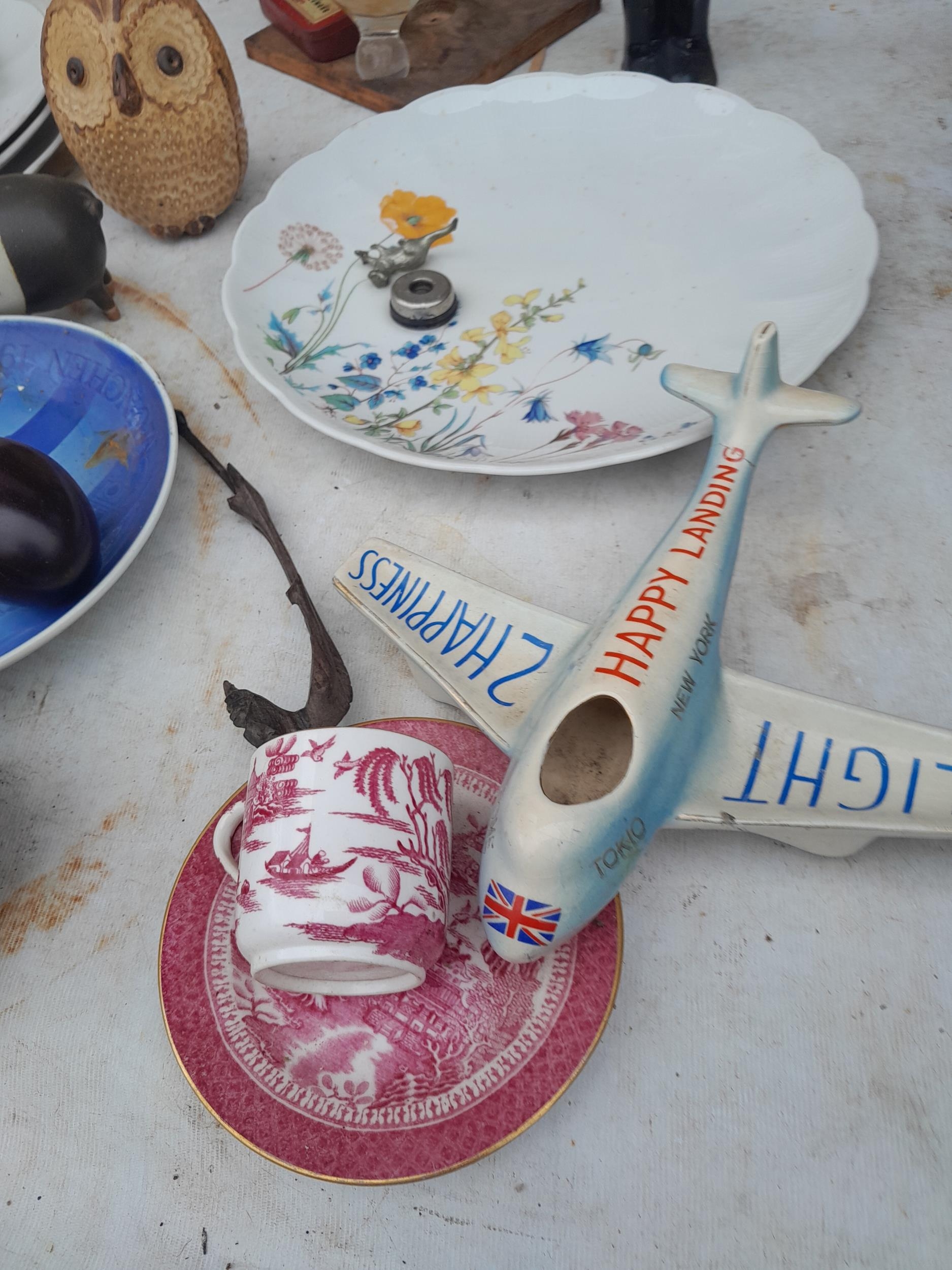 Decorative china and glassware : Majolica fish plate, vintage advertising etc.