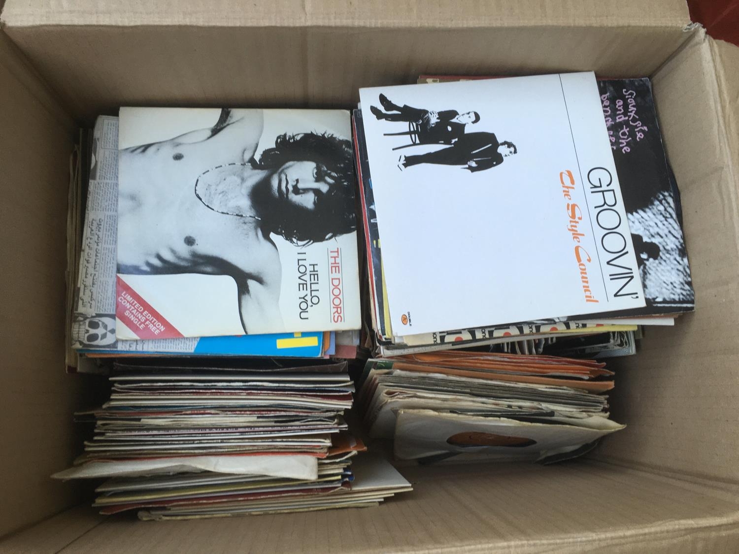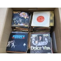 A box if 7 inch singles by various artists including some punk and new wave titles,, David Bowie and others.