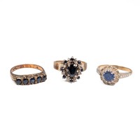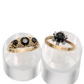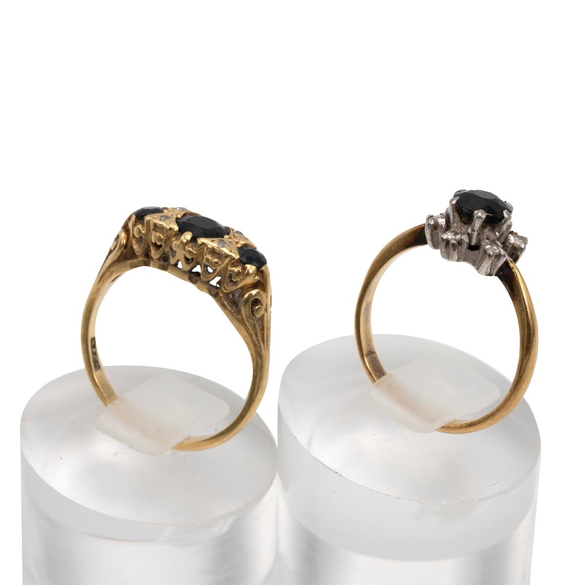 Two 18ct gold hallmarked gem set dress rings, size N and P, weight 6.6 grams.