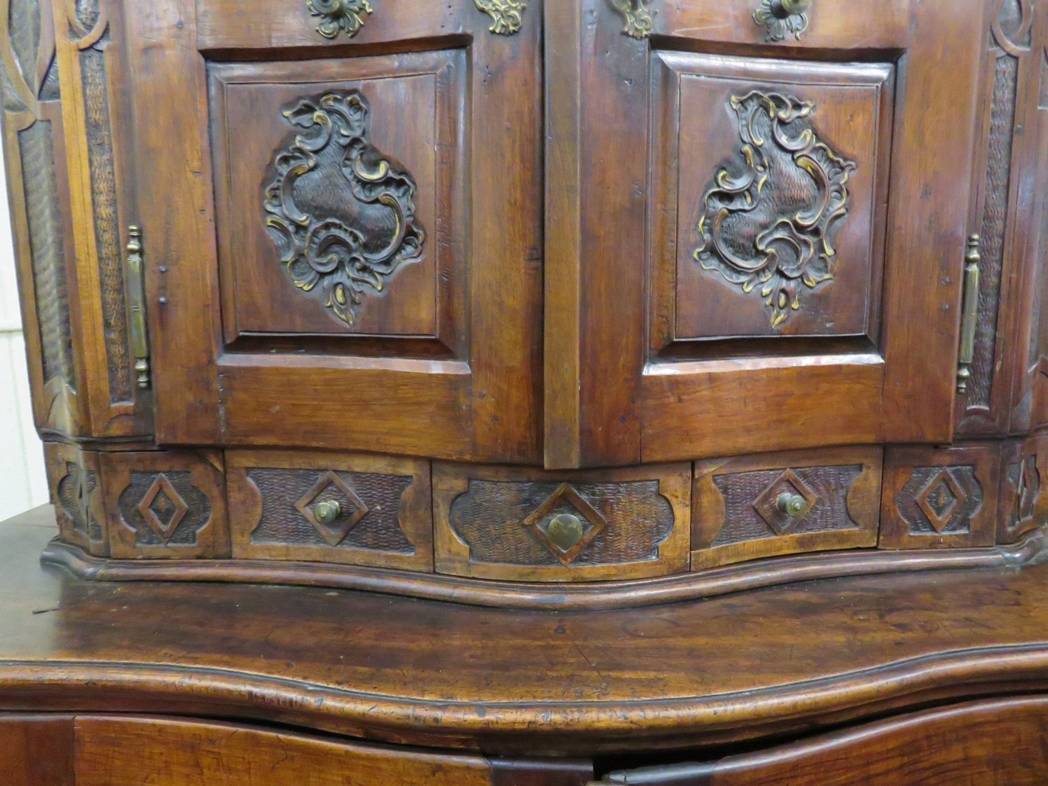 lining , 3 small drawers, press under with panelled doors, on shaped plinth