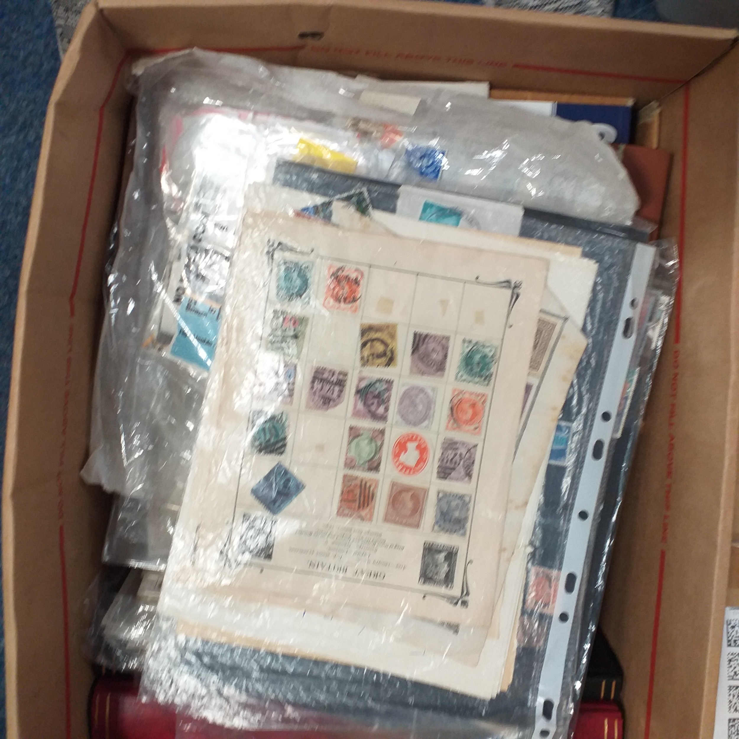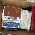 Box - GB related material includes 2 x large stock books (excellent condition),small box with a range of Machins/Wildings in packets, covers and presentation packs (approx ?100+ face value) incl packet of booklets to ?5 and several packets of stammps on Hagners/album sheets. Viewing recommended.