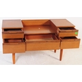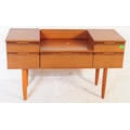 Avalon - British modern design - a retro vintage 20th century teak sideboard / chest of drawers. The table having single drawer underneath flanked by a bank of two graduating drawers with shaped wooden pulls. Raised on tapered legs. Measures approx: 65x112x43cm