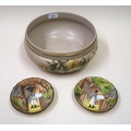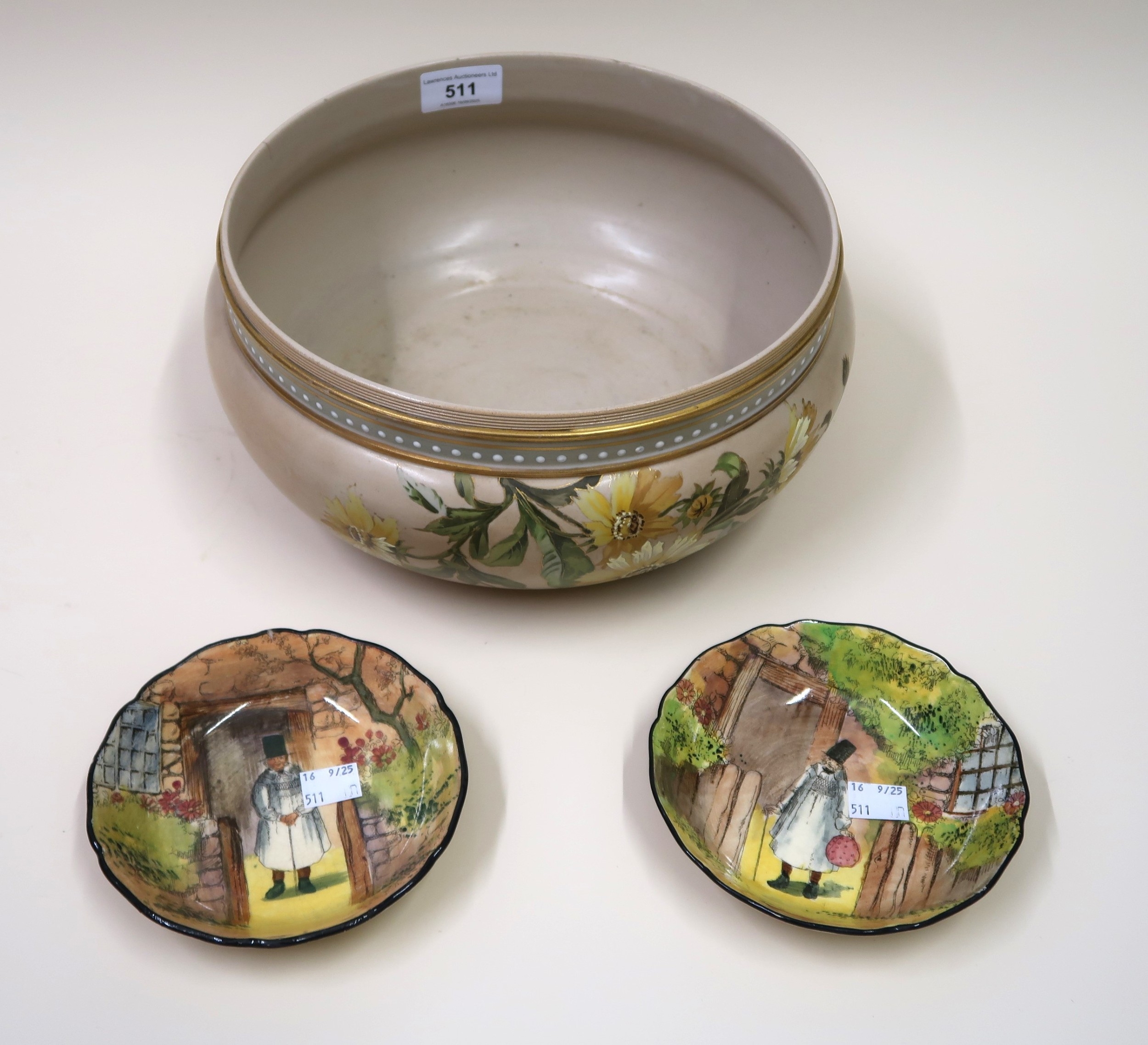 Doulton Lambeth floral decorated fruit bowl, 27cm diameter, together with two small Seriesware dishes
