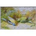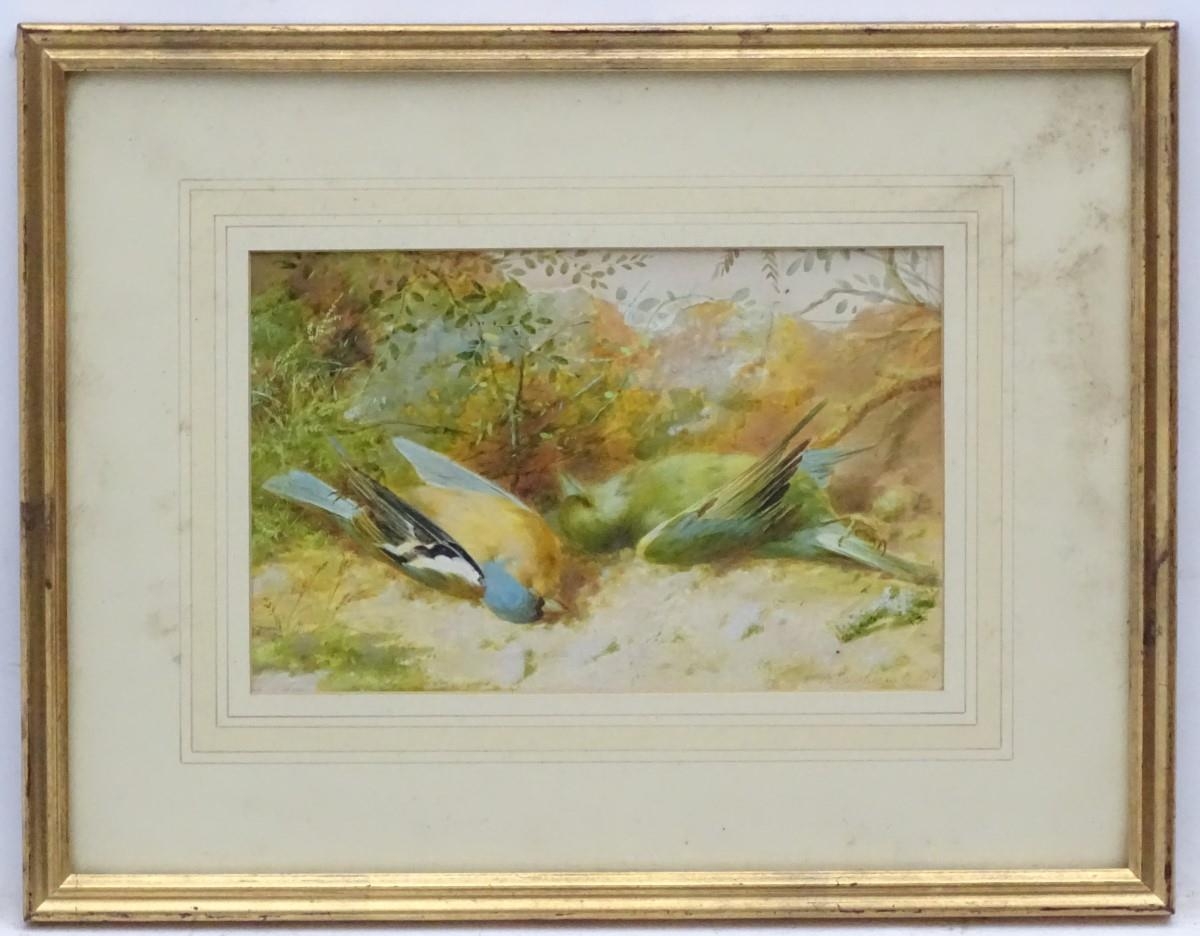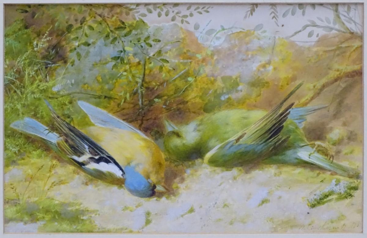 After N Cruikshank, XIX, Ornithological School, Colour print, A Chaffinch & a Greenfinch. Bears facsimile signature and date 1865 lower right. Approx. 5 3/4" x 8 3/4''