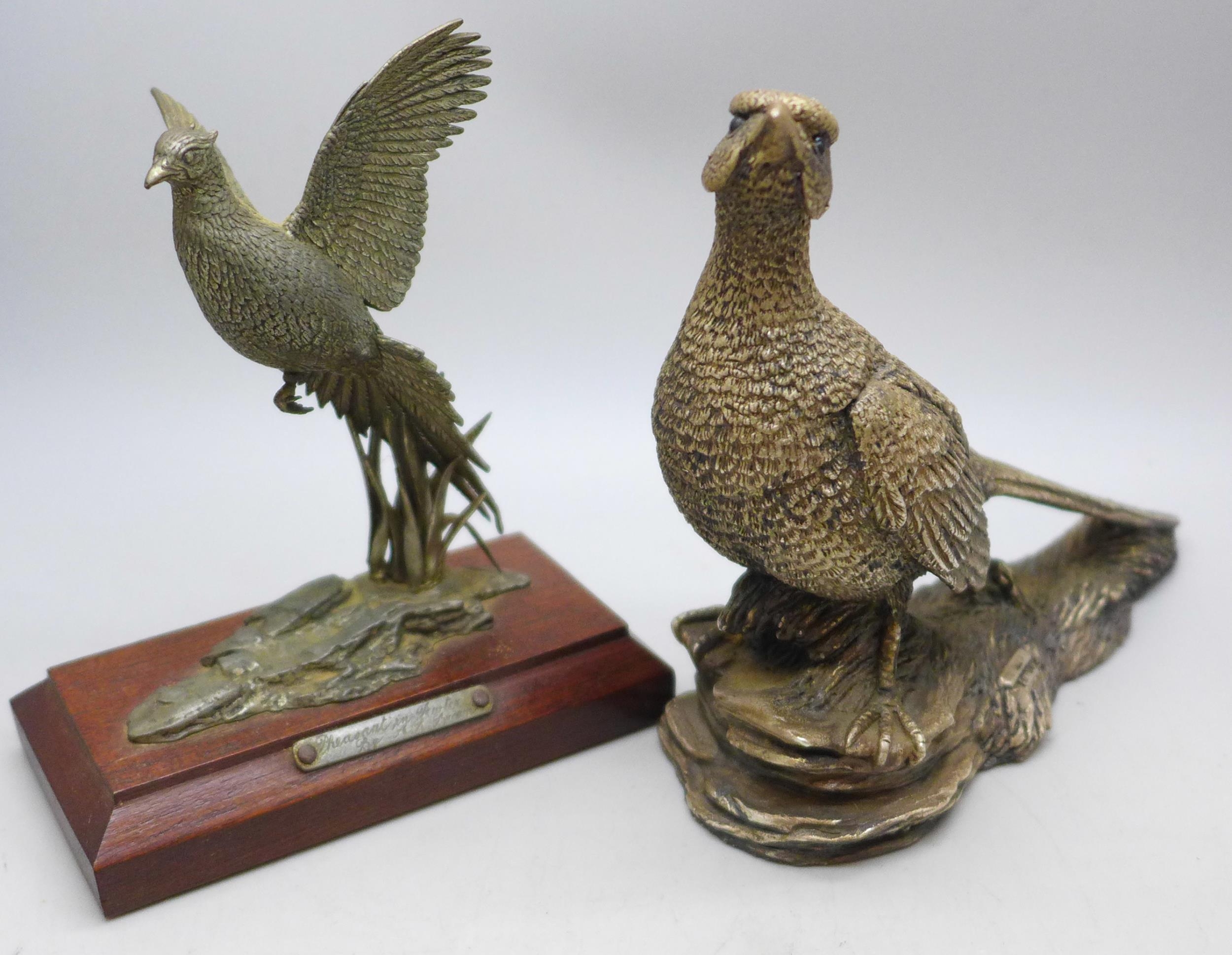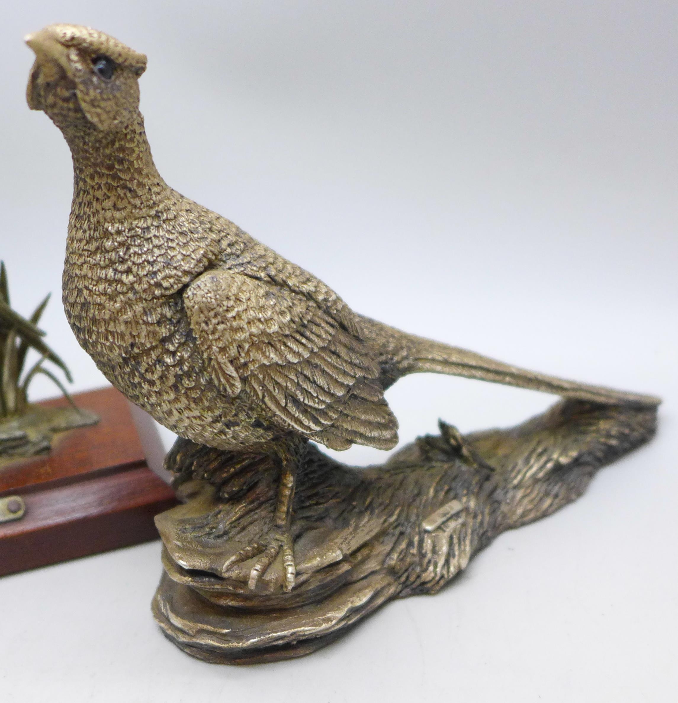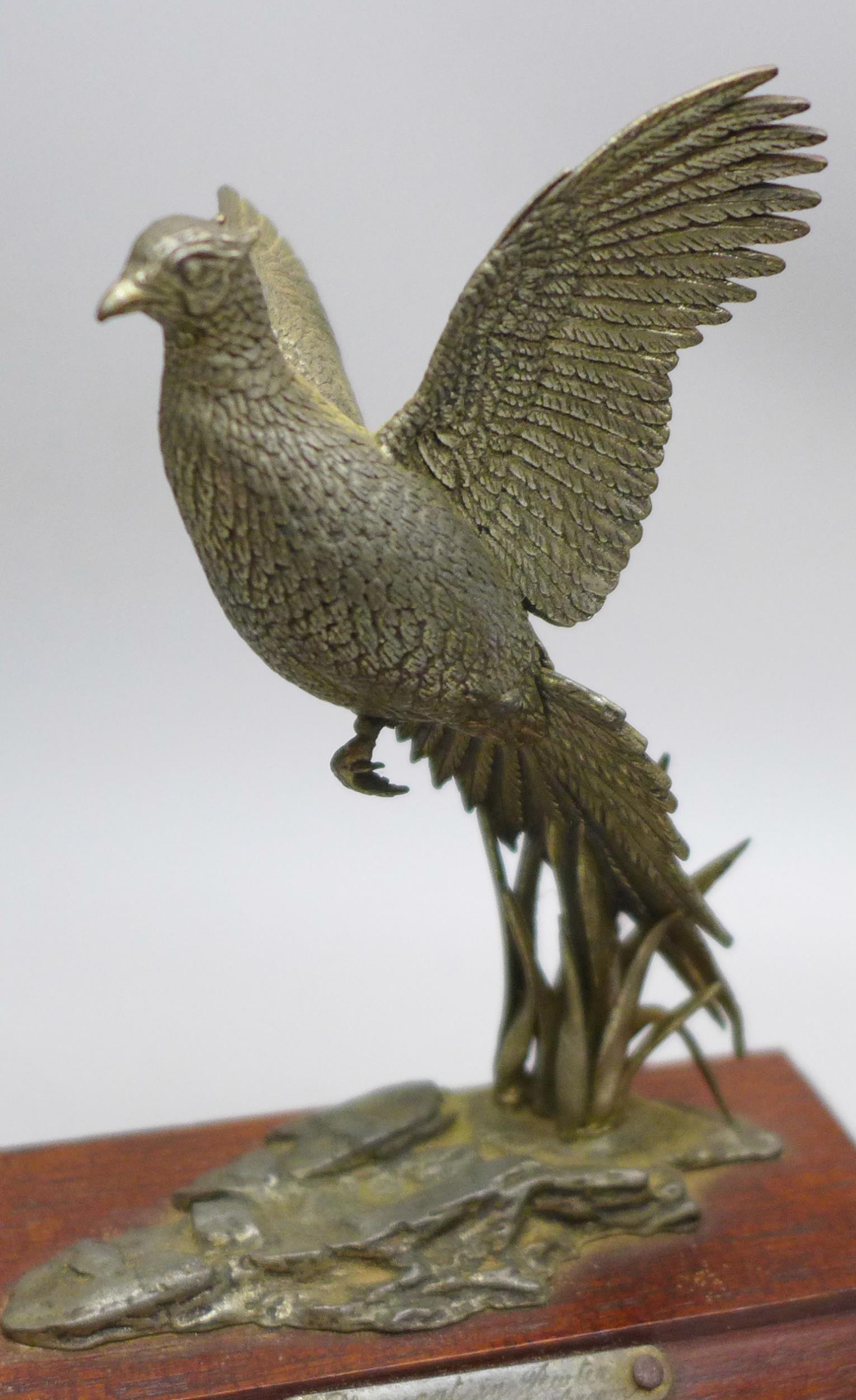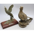 A silver covered model of a pheasant and one other (smaller ...