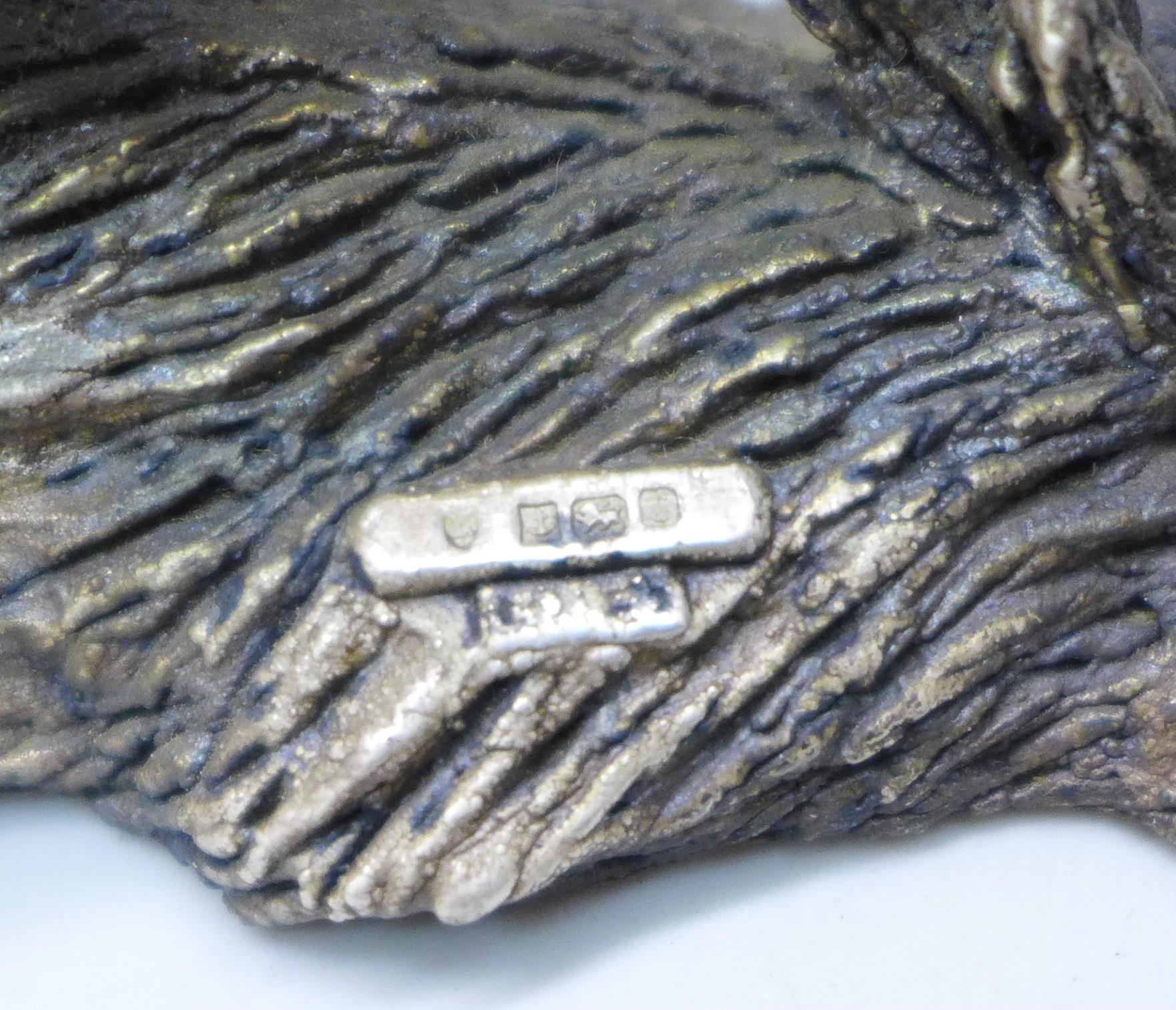 A silver covered model of a pheasant and one other (smaller example a/f), largest 13cm long