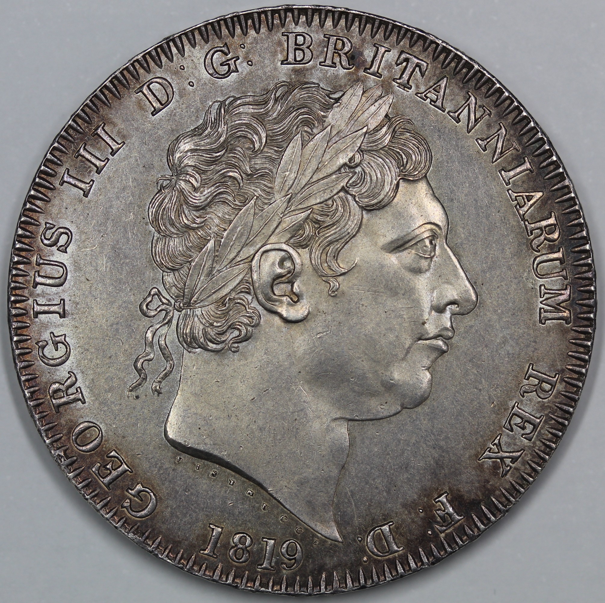 1819 Crown, Edge LIX, George III (ESC 215, Bull 2010, S.3787). aUNC with some hairlines. The fields flashy with soft peripheral tone and overall still an extremely strong example.