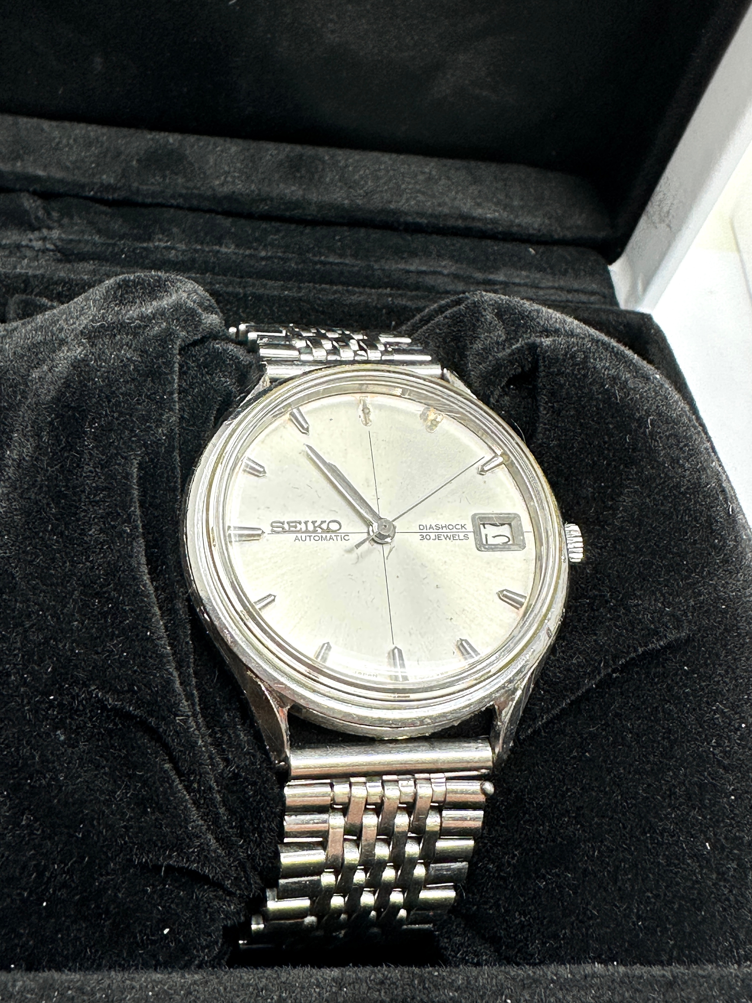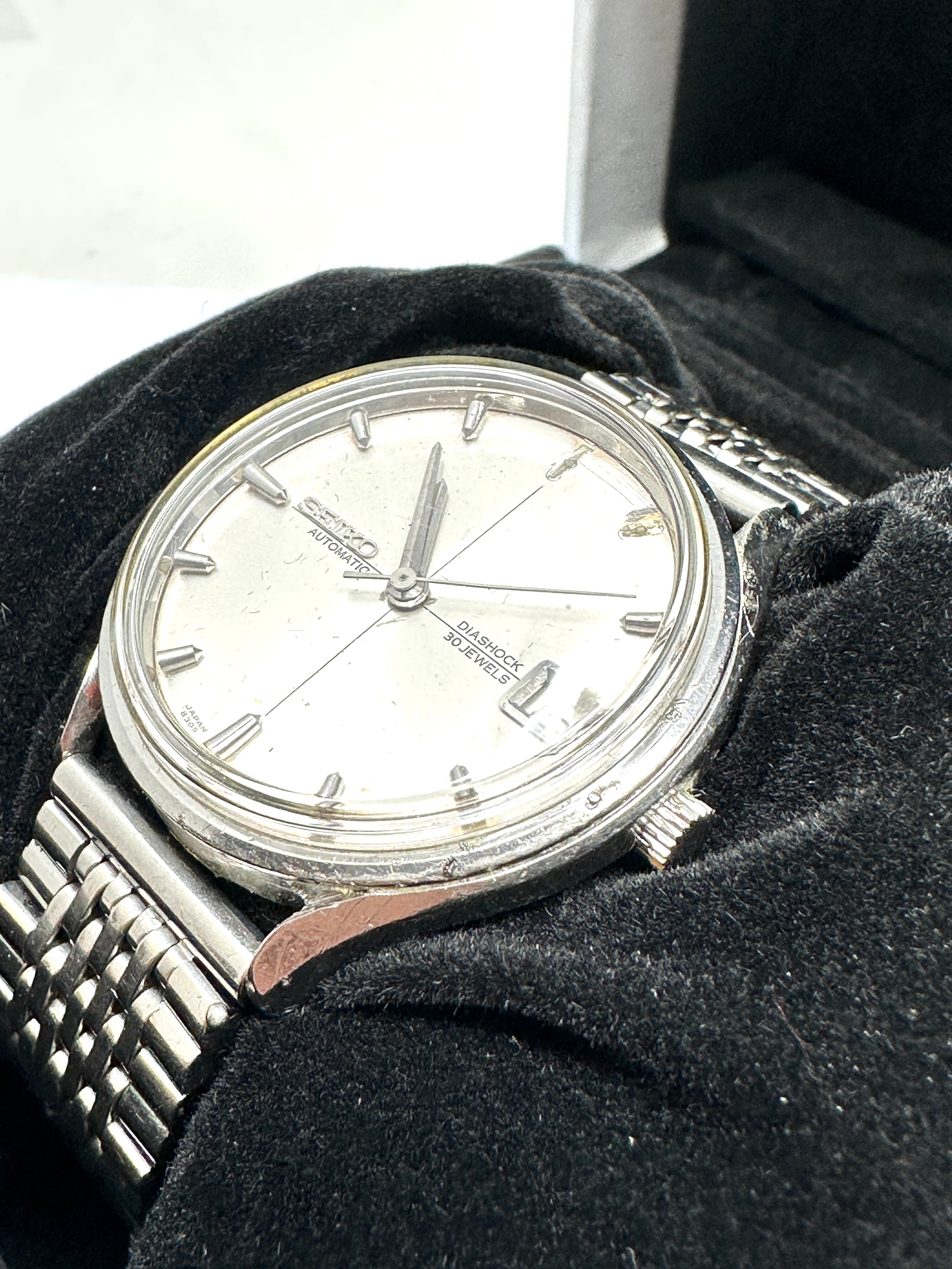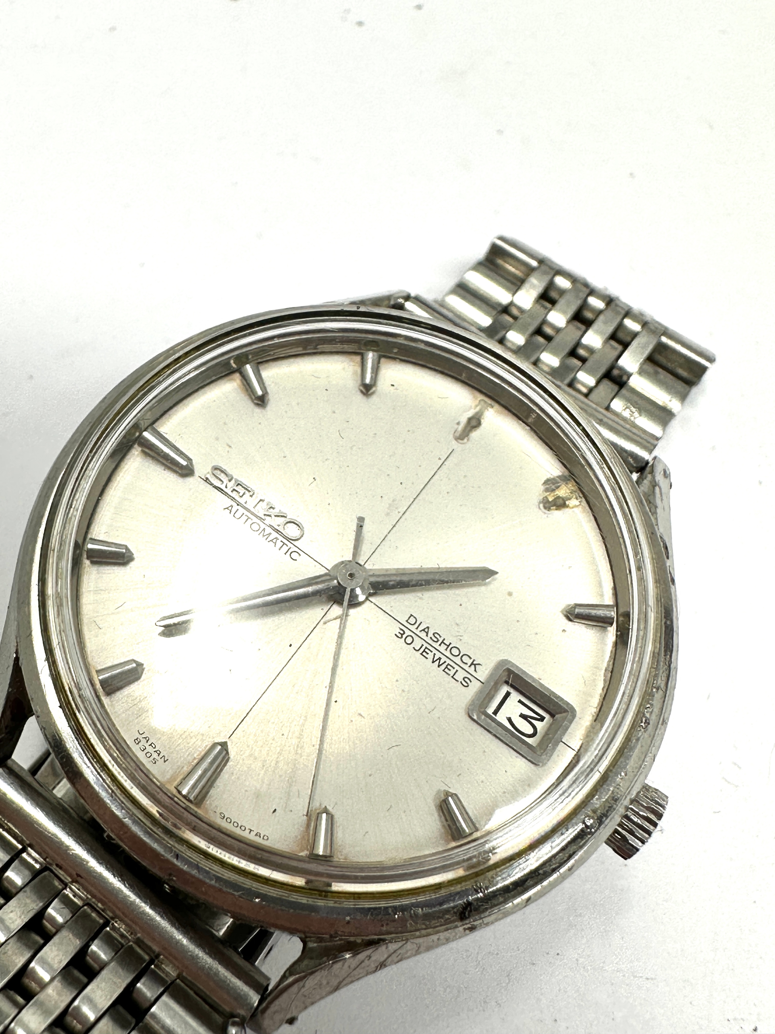 Rare Seiko sea lion m77 8305-9000. automatic diashock 30 jewel gents wristwatch With bullet hour markers missing 2 as shown cross hair dial thw watch is ticking b