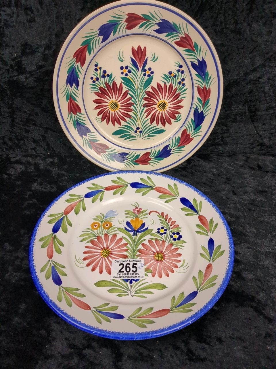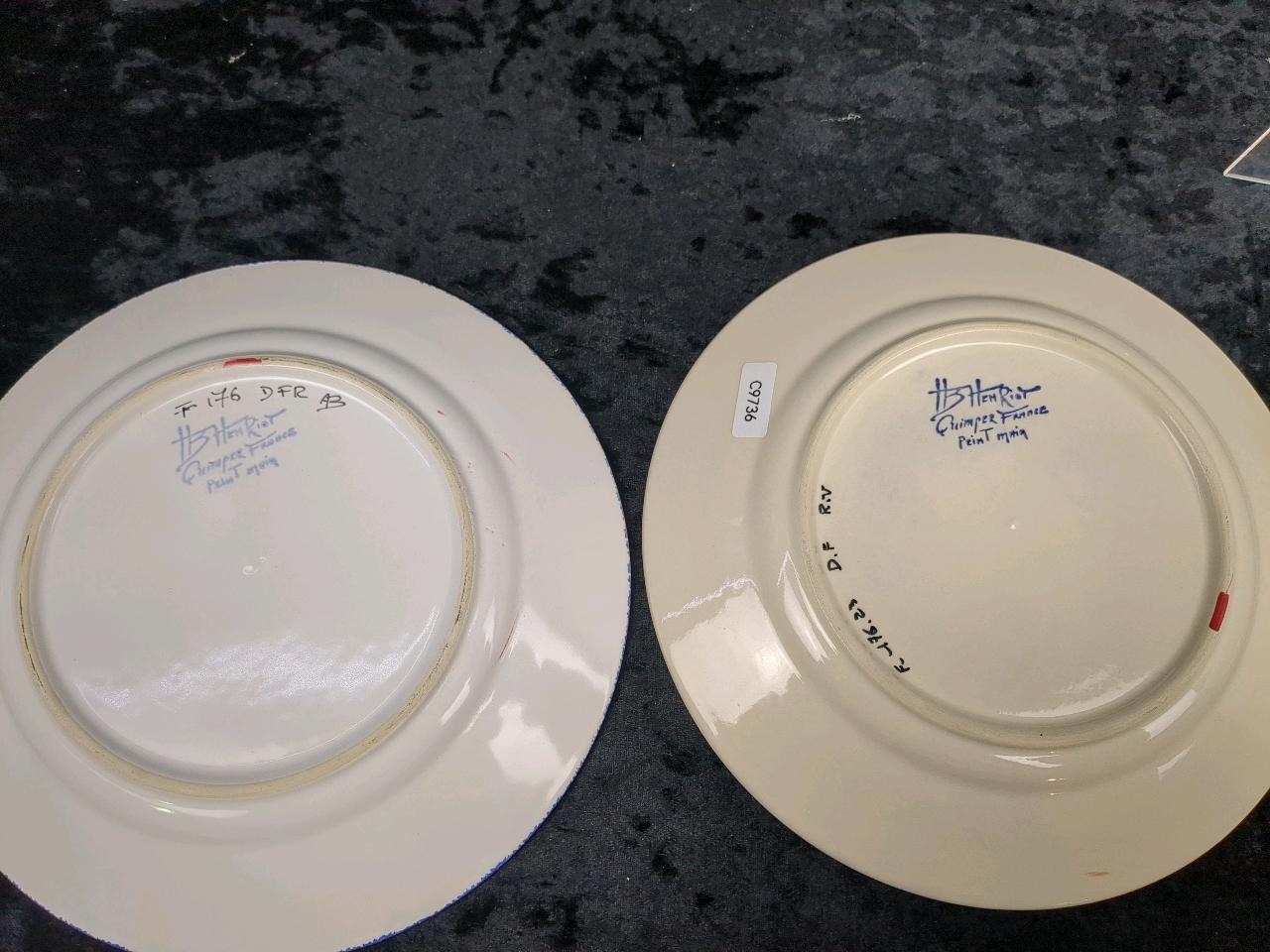 Two vintage Henriot Quimper earthenware plates with hand-painted "Fleuri" design. Each approx Dia24cm.