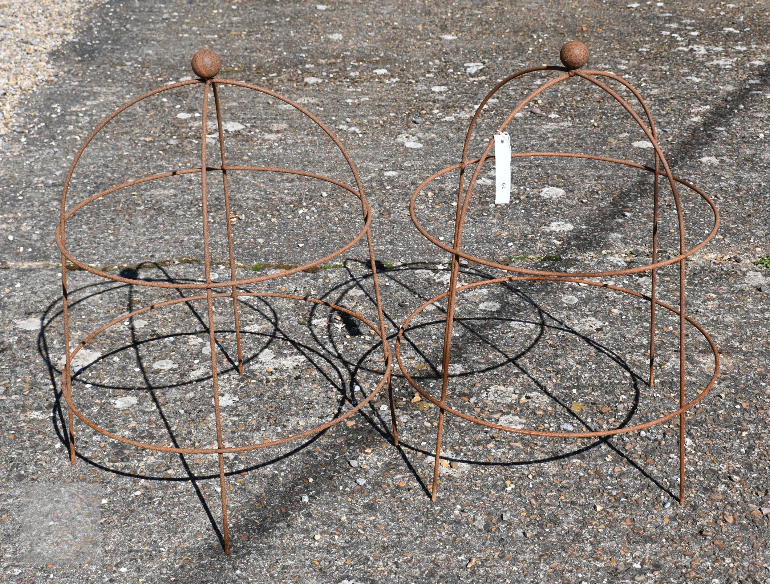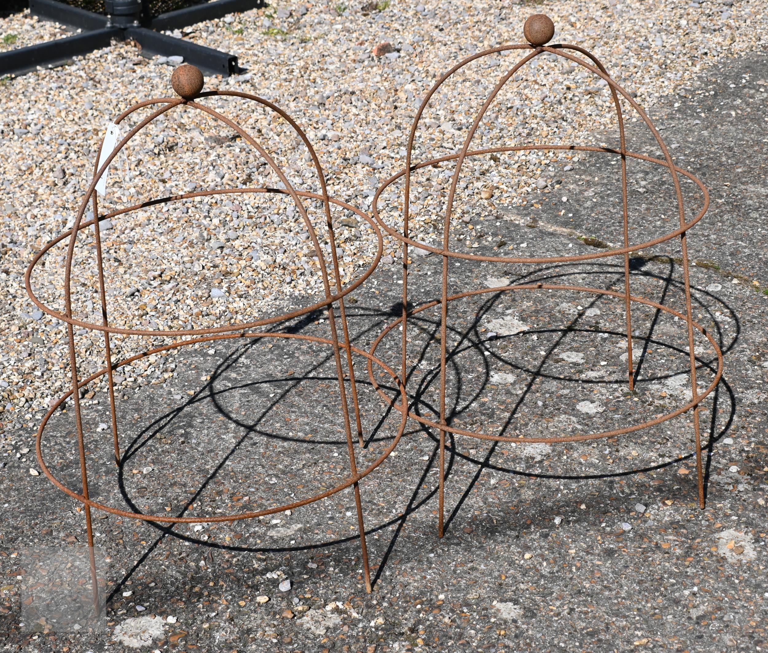 A pair of steel ball-head garden obelisks, 67 cm h (2)