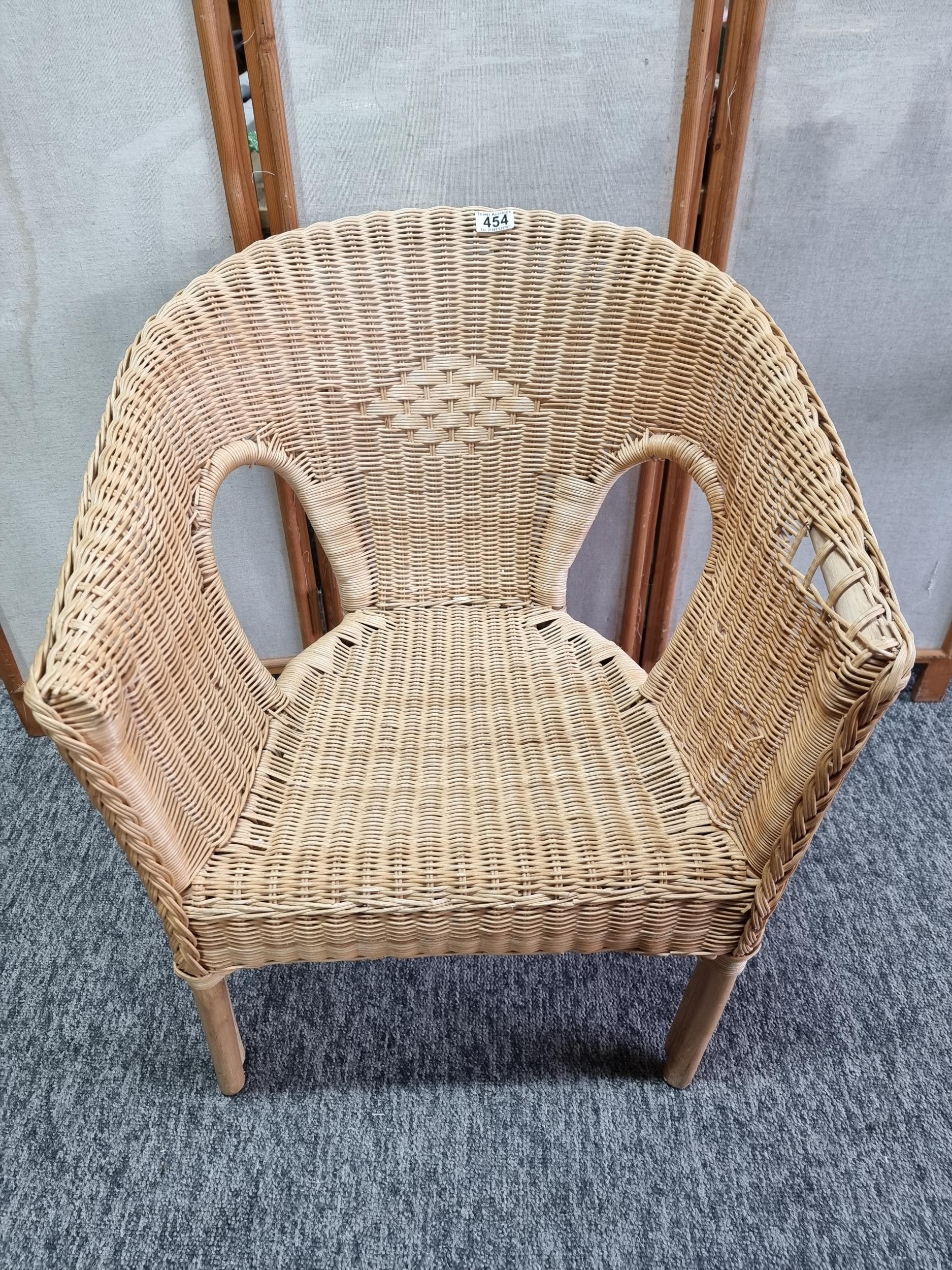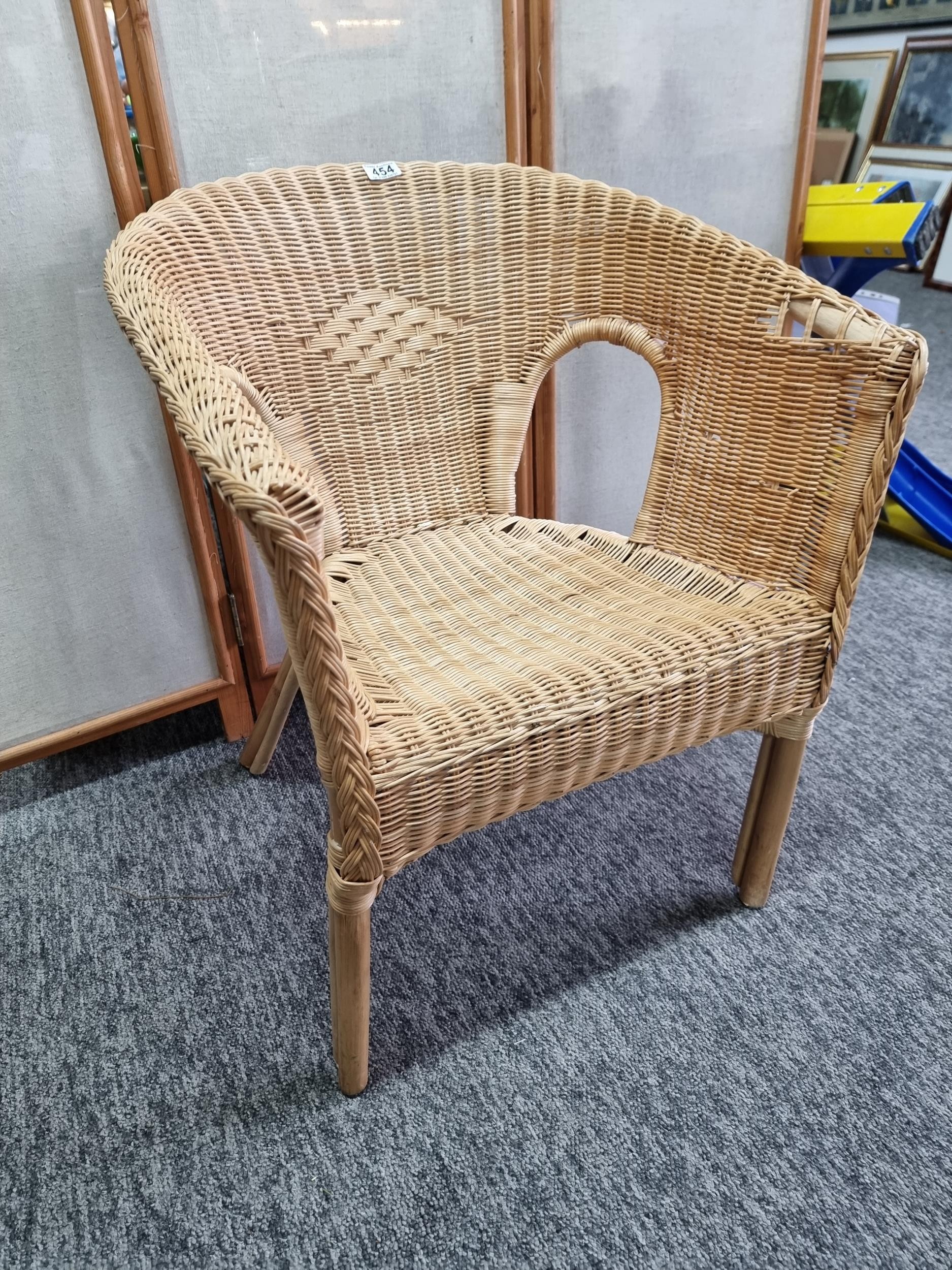 A wicker armed chair in good overall condition, I deal for a bedroom or conservatory,