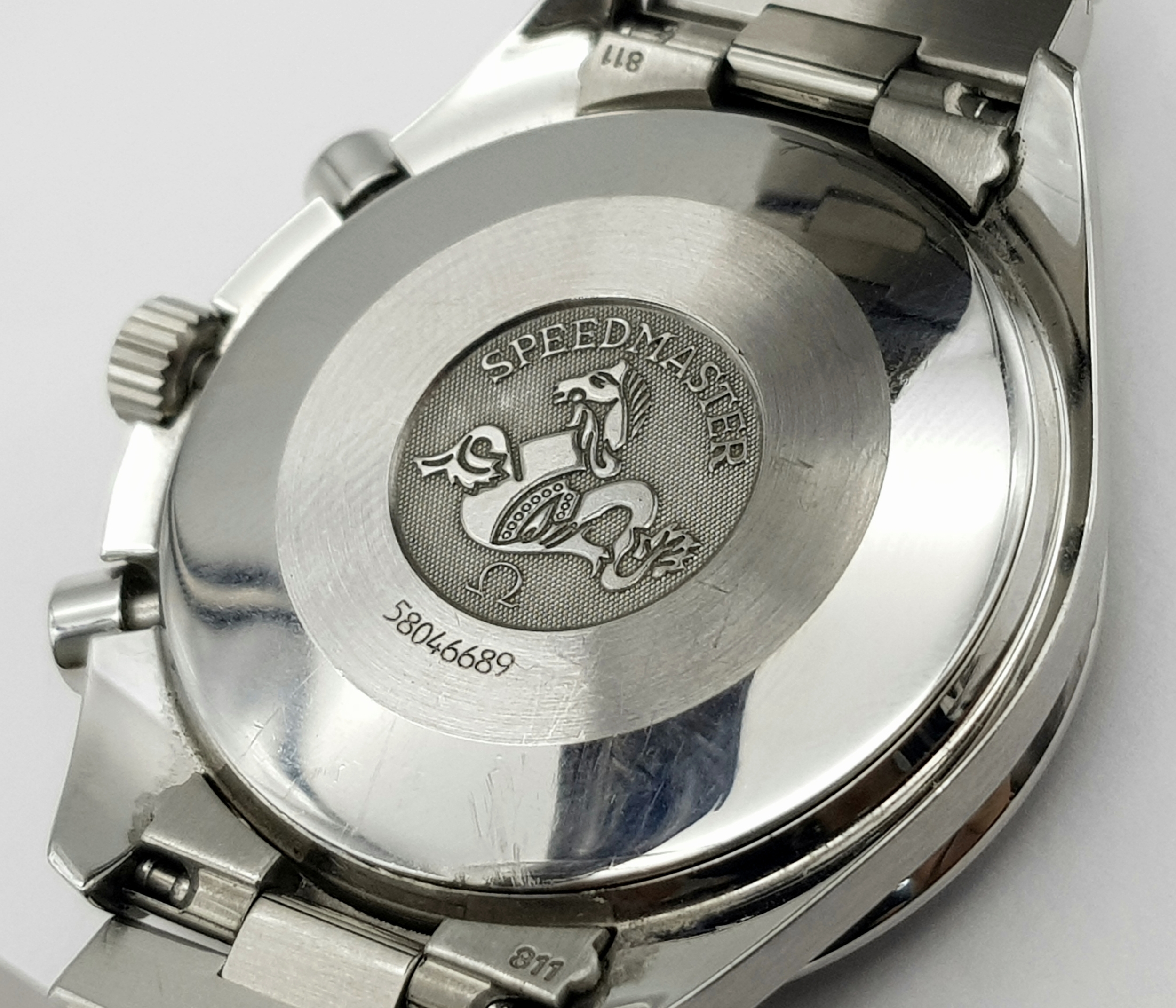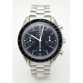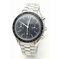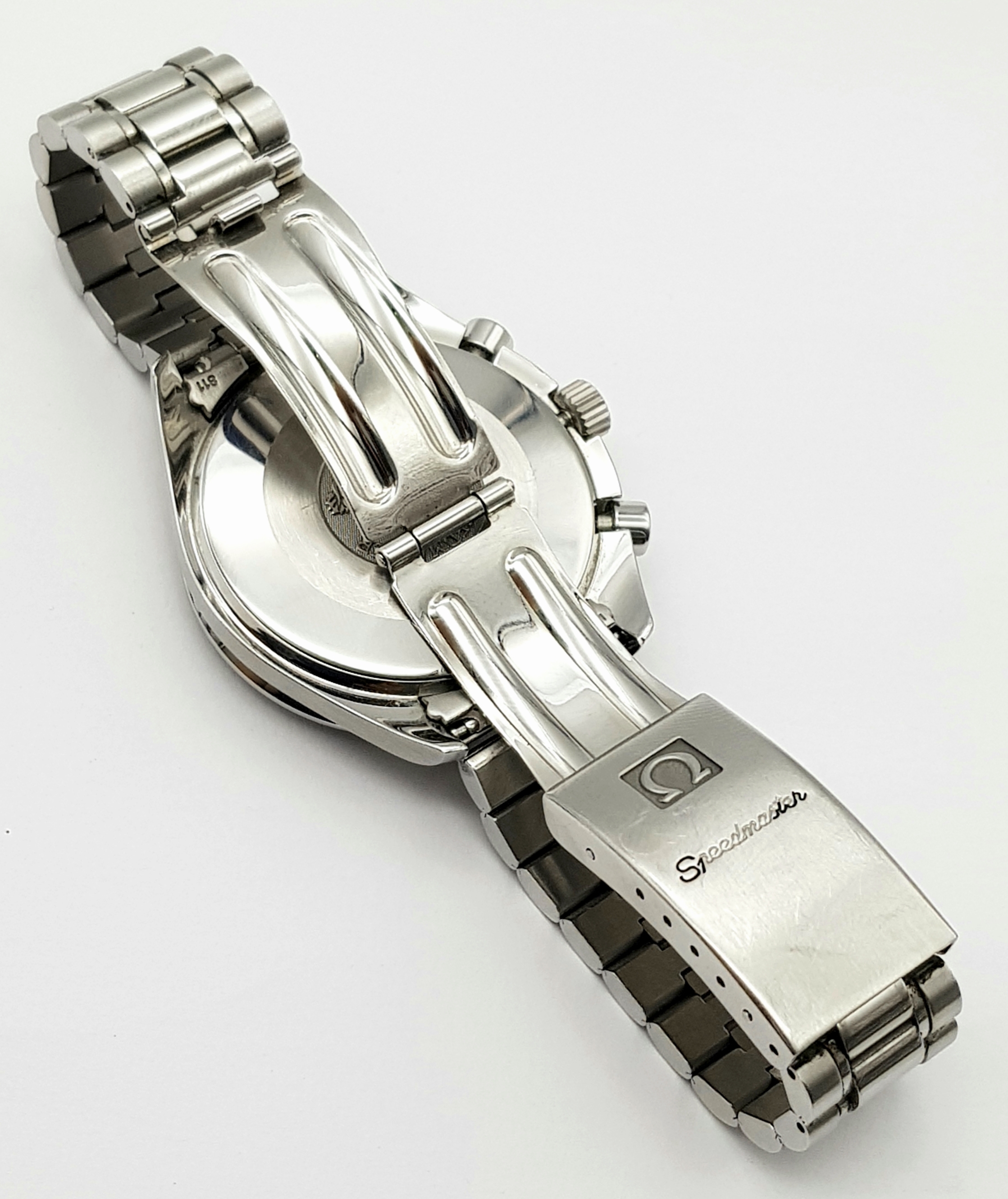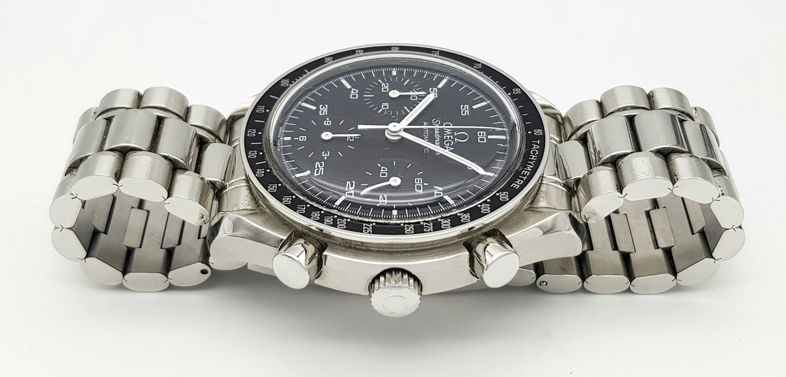 An Omega Speedmaster Automatic Chronograph Gents Watch. Stainless steel bracelet and case - 39mm. Black dial with three sub dials. In good condition and working order.