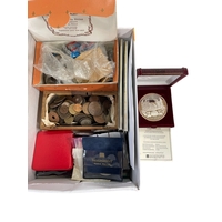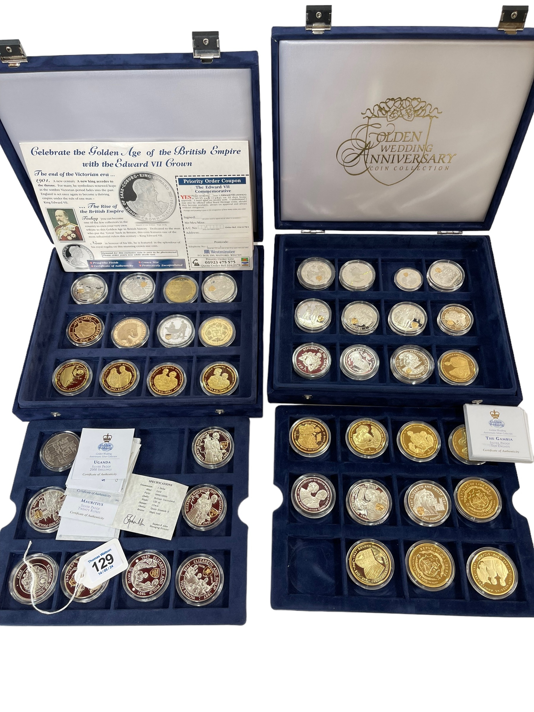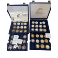Predominantly Royal Mint Golden Wedding Anniversary silver proof coins and others, comprising approx forty five silver coins of the Commonwealth in four trays, with certificates, in two fitted blue cases.