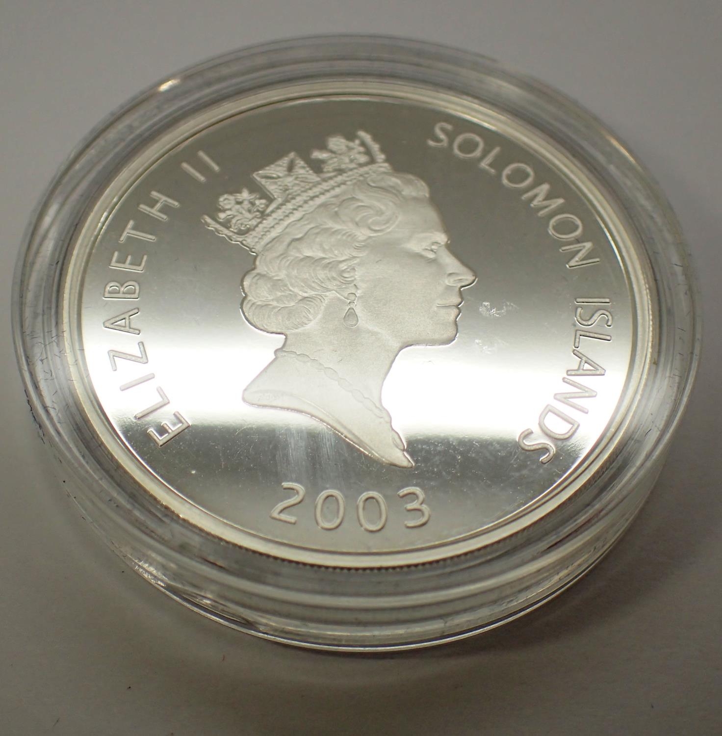 2003 Solomon Islands AN-225 Mriya silver proof coin, 28g. P&P Group 0 (£5+VAT for the first lot and £1+VAT for subsequent lots)