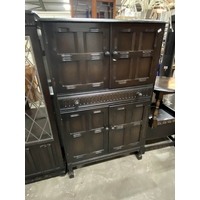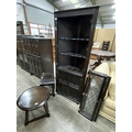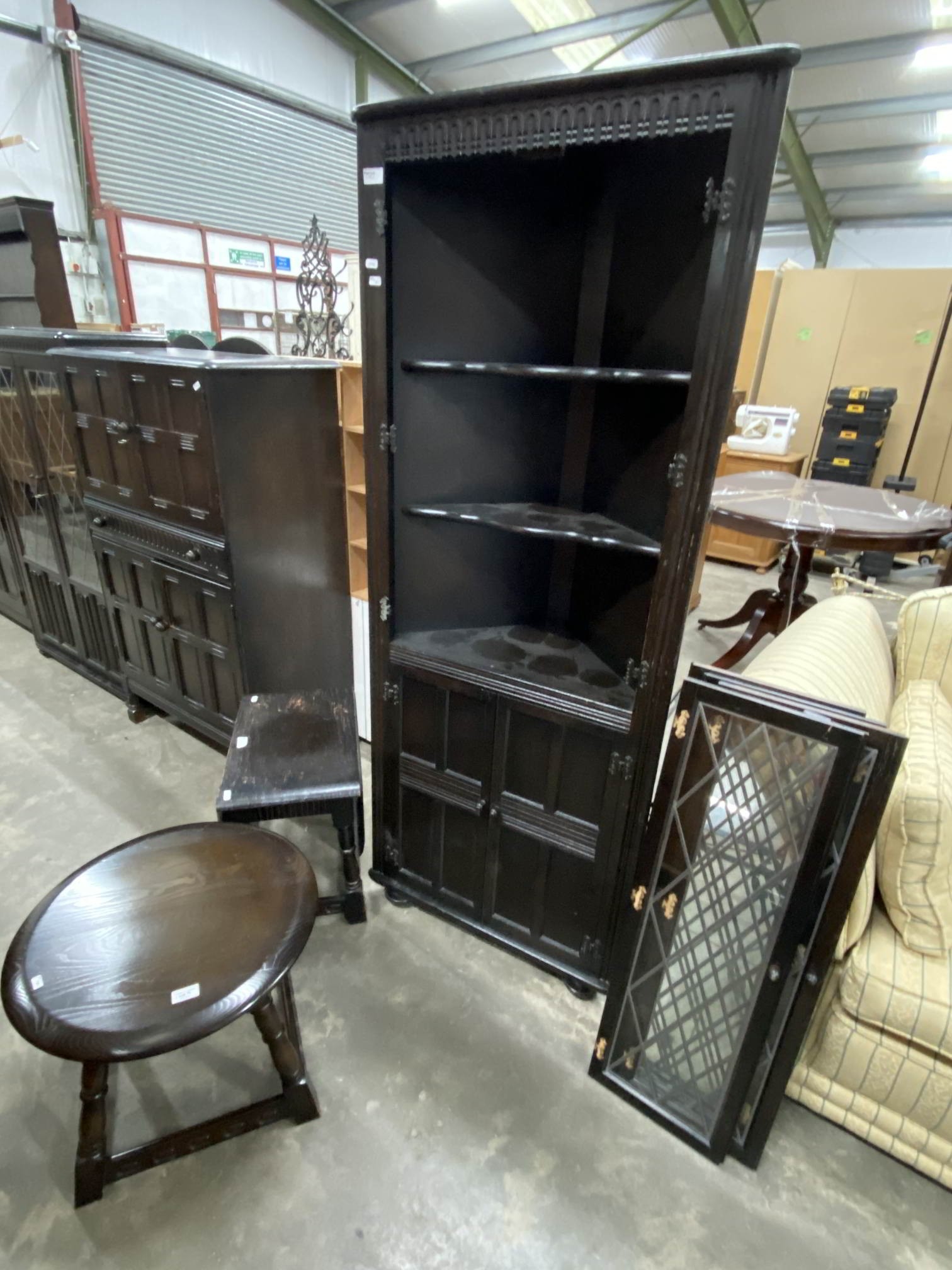 Oak occasional table 39H 50cm diameter, oak drop leaf occasional table 41H 50W 31-70D & an oak corner cupboard 168H 67W