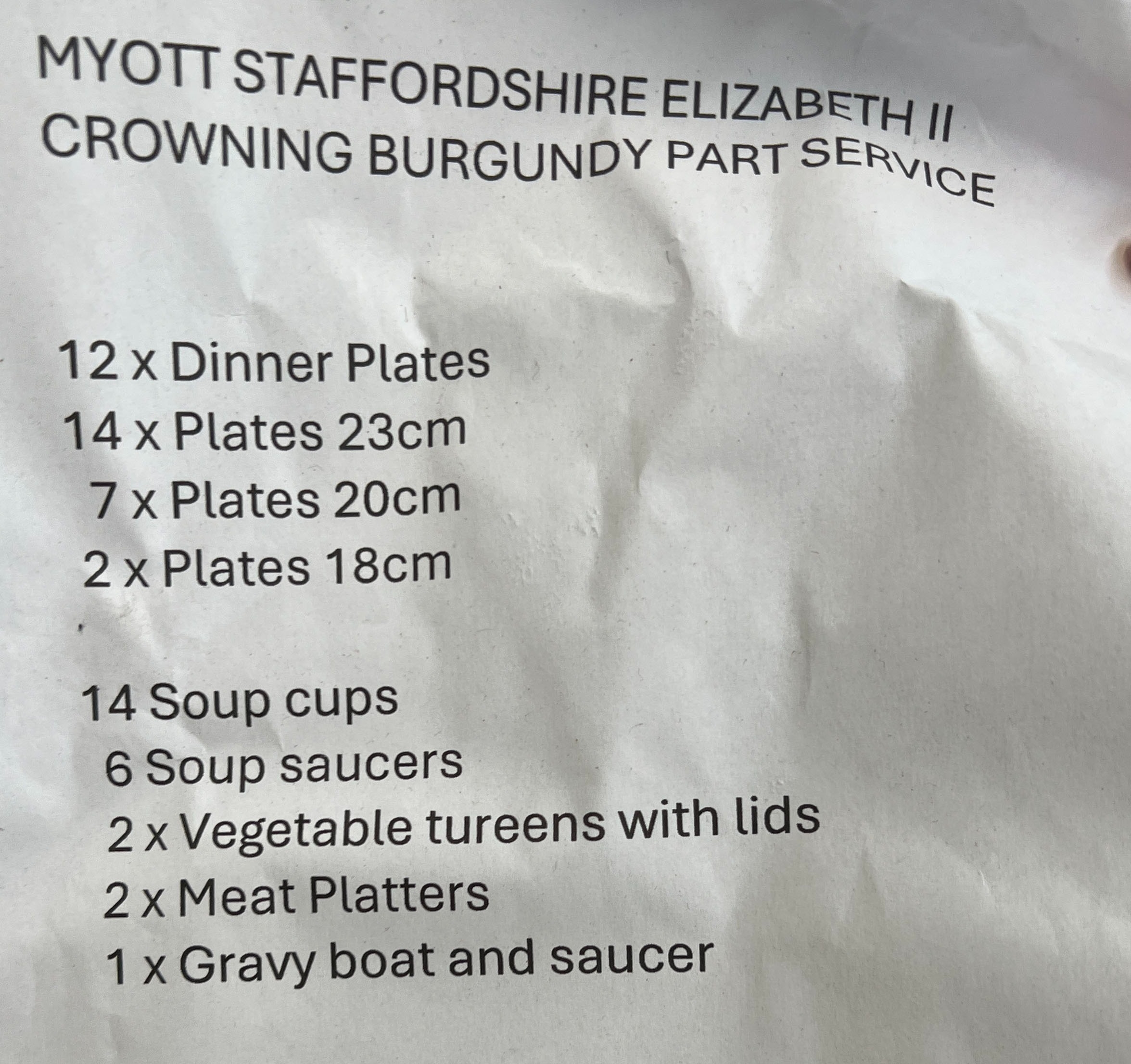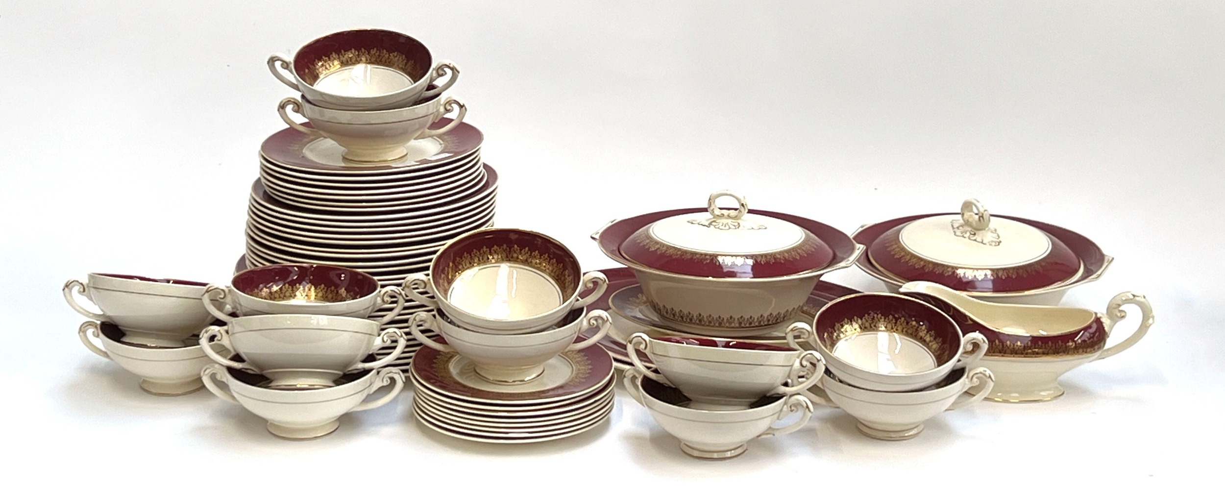 A Myott Staffordshire Elizabeth II Crowning Burgundy part dinner service, approx. 60 pieces