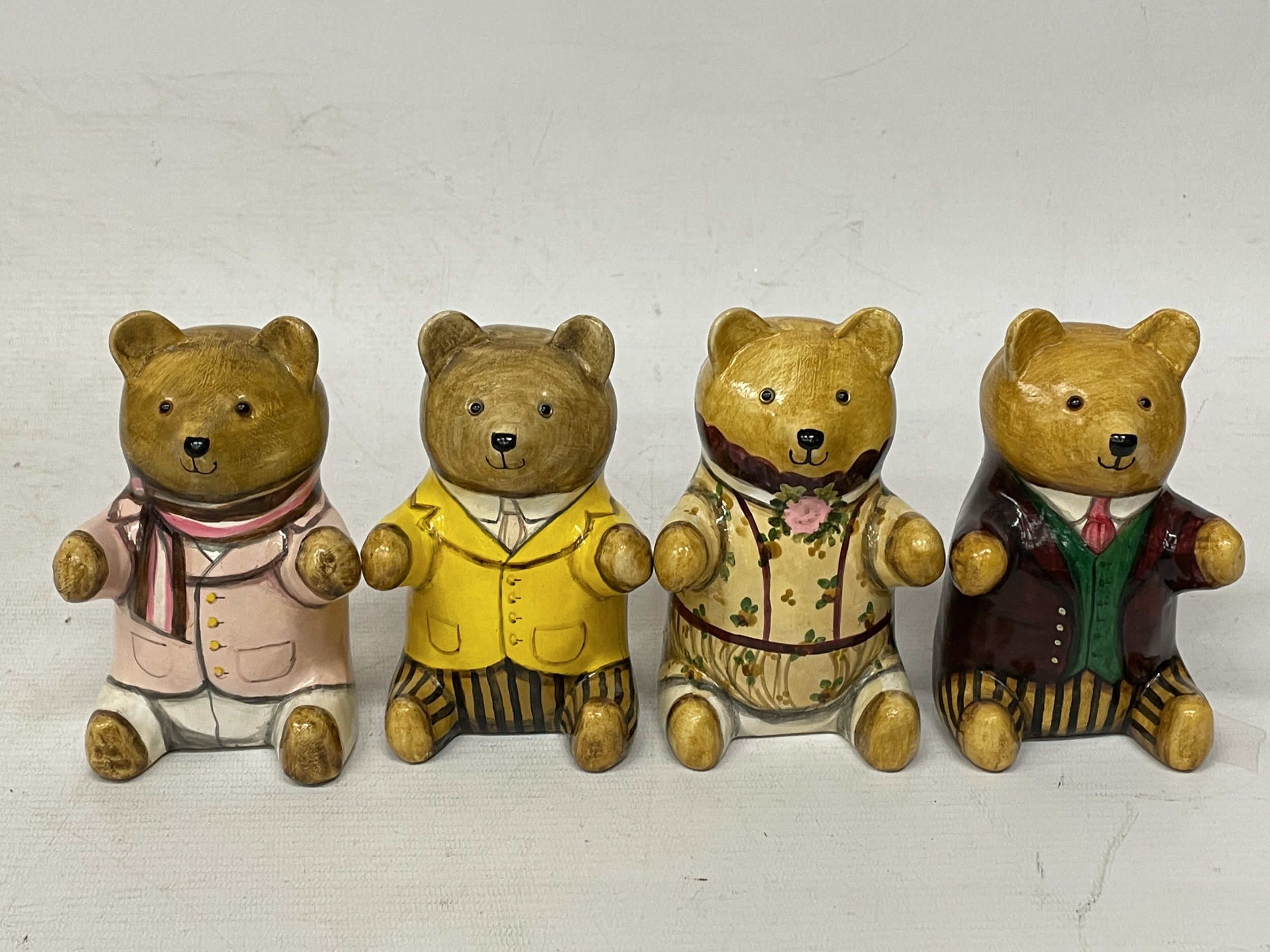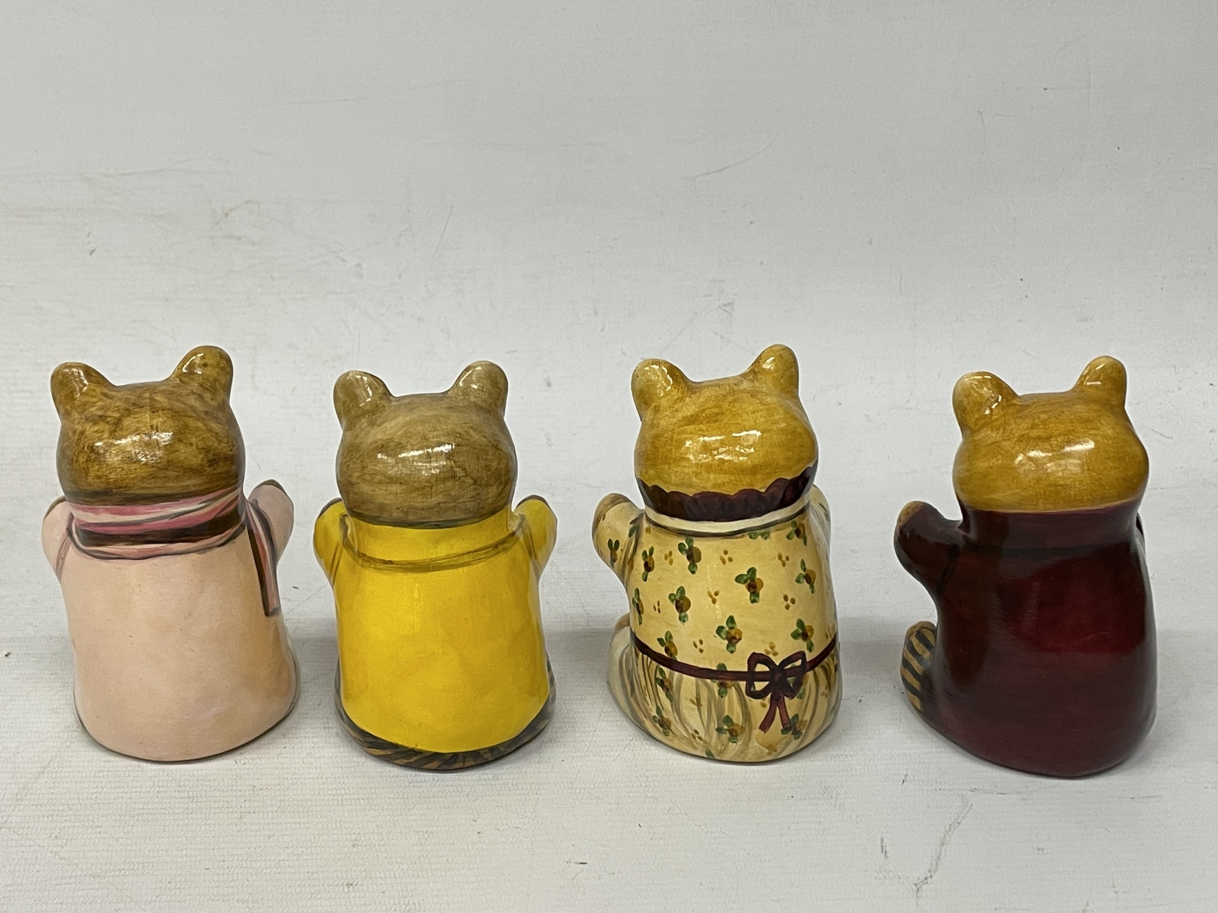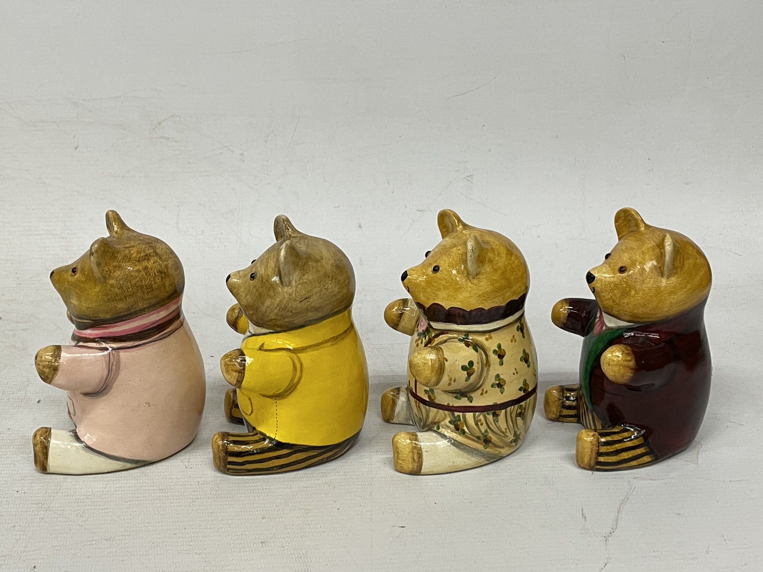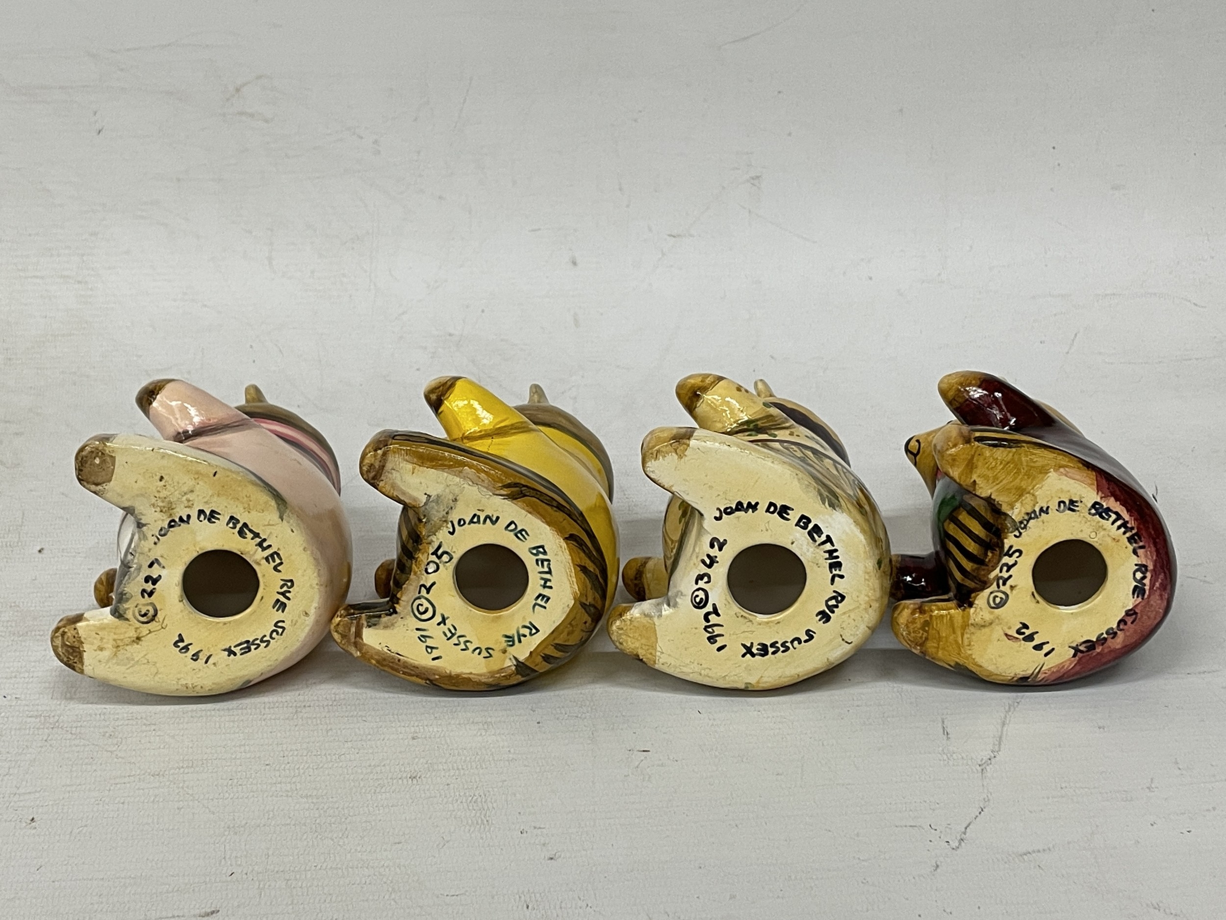 FOUR RYE POTTERY BEARS DECORATED BY JOAN DE BETHEL - THREE DATED 1992 - ONE DATED 1991