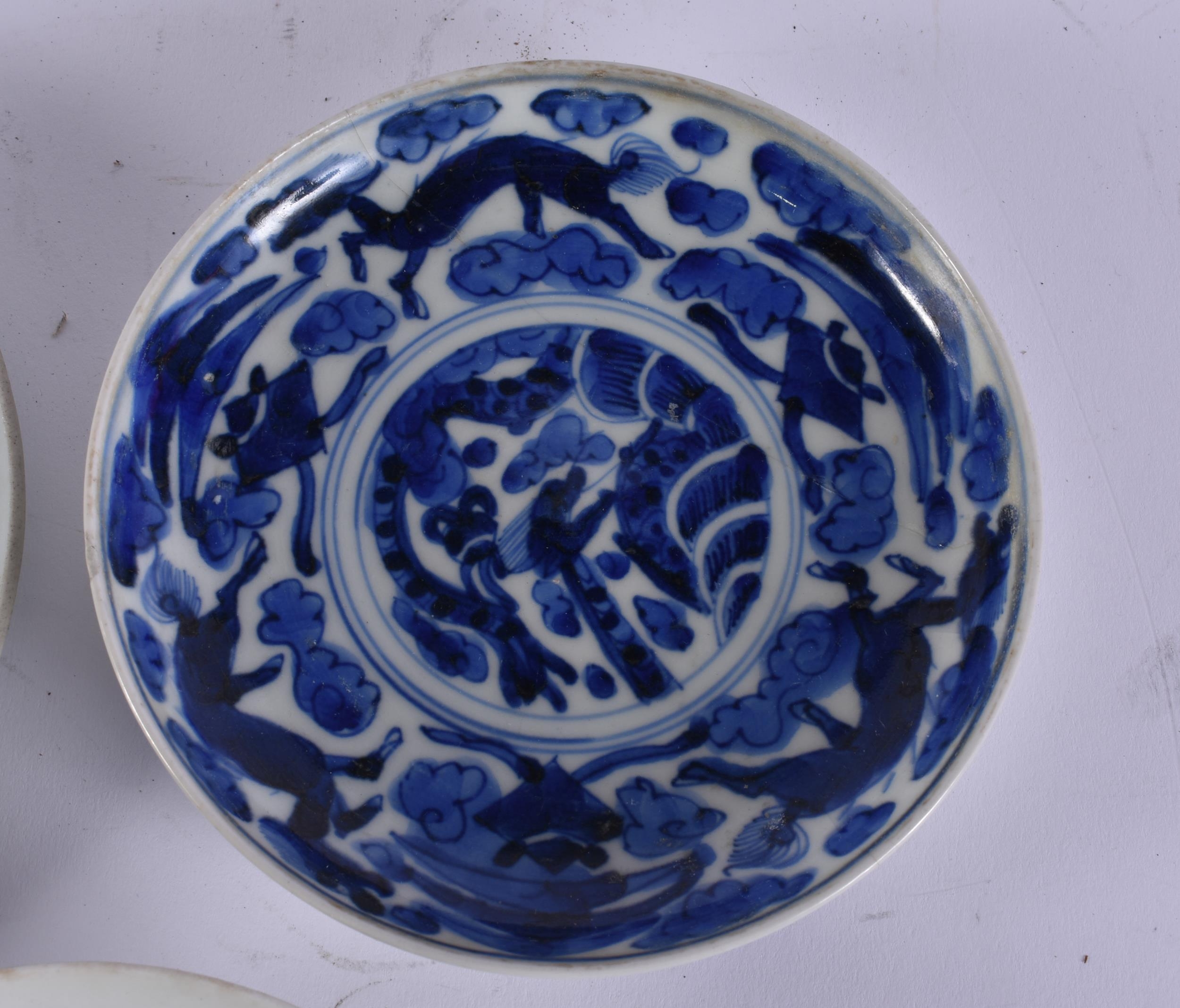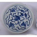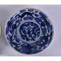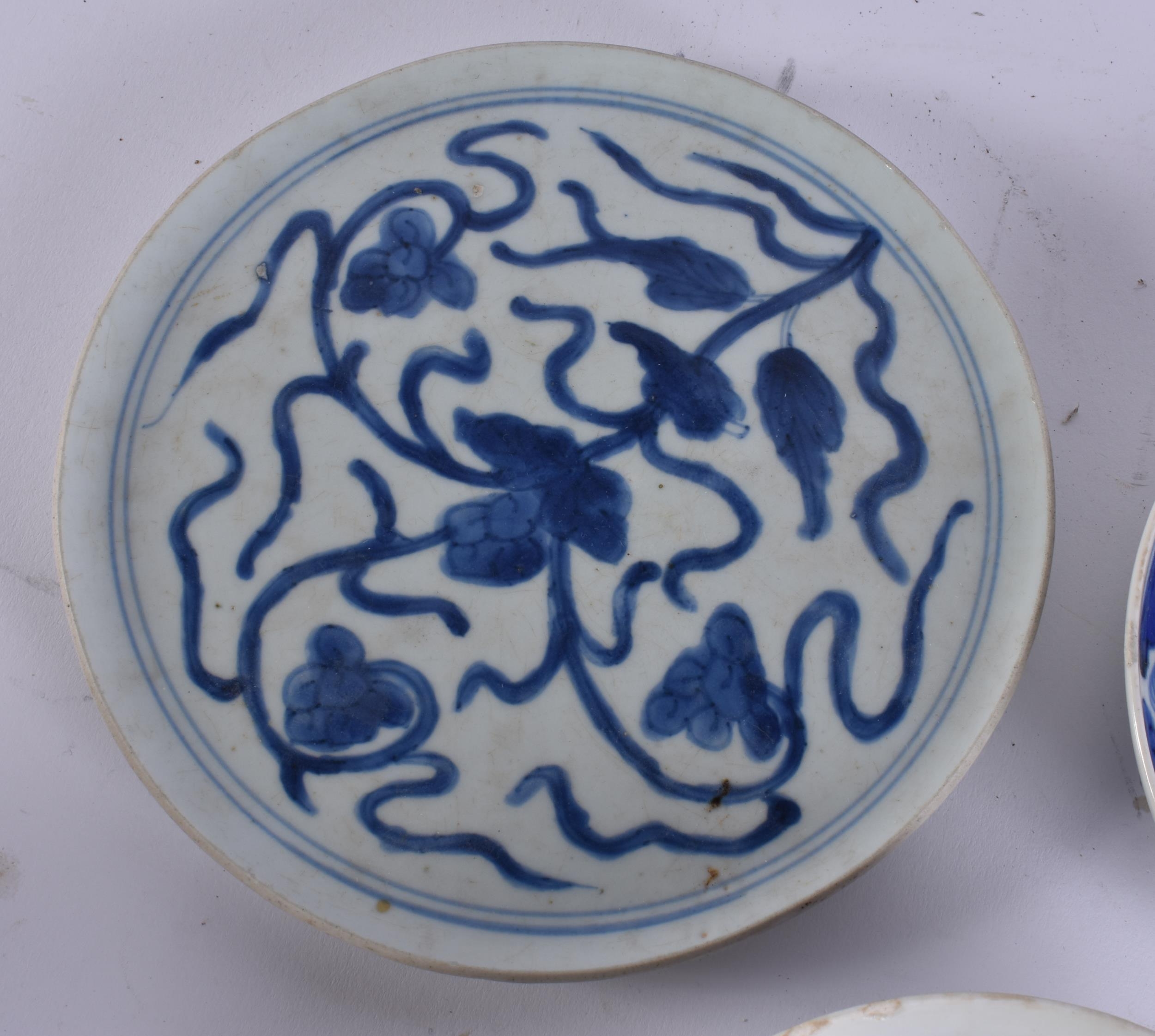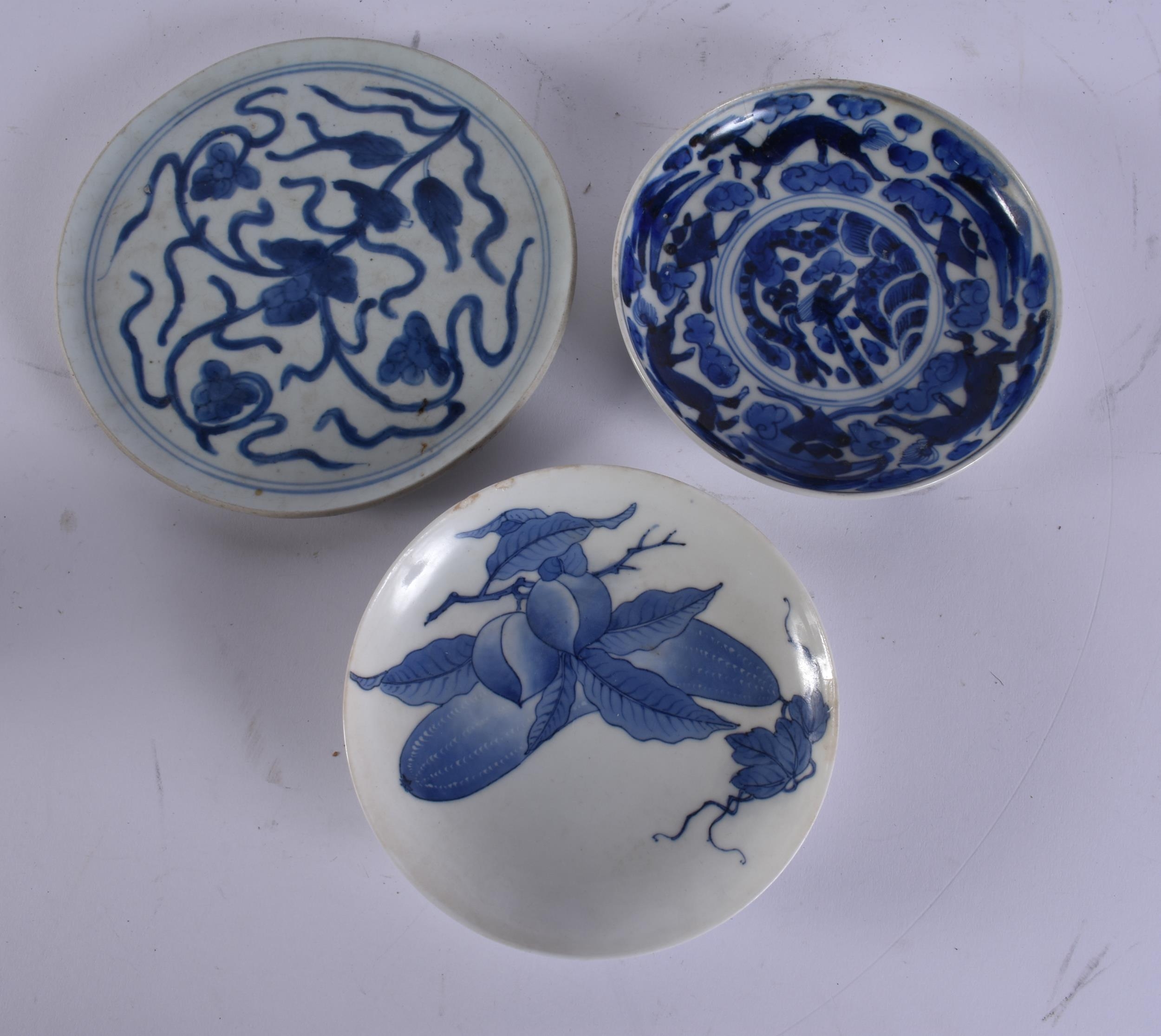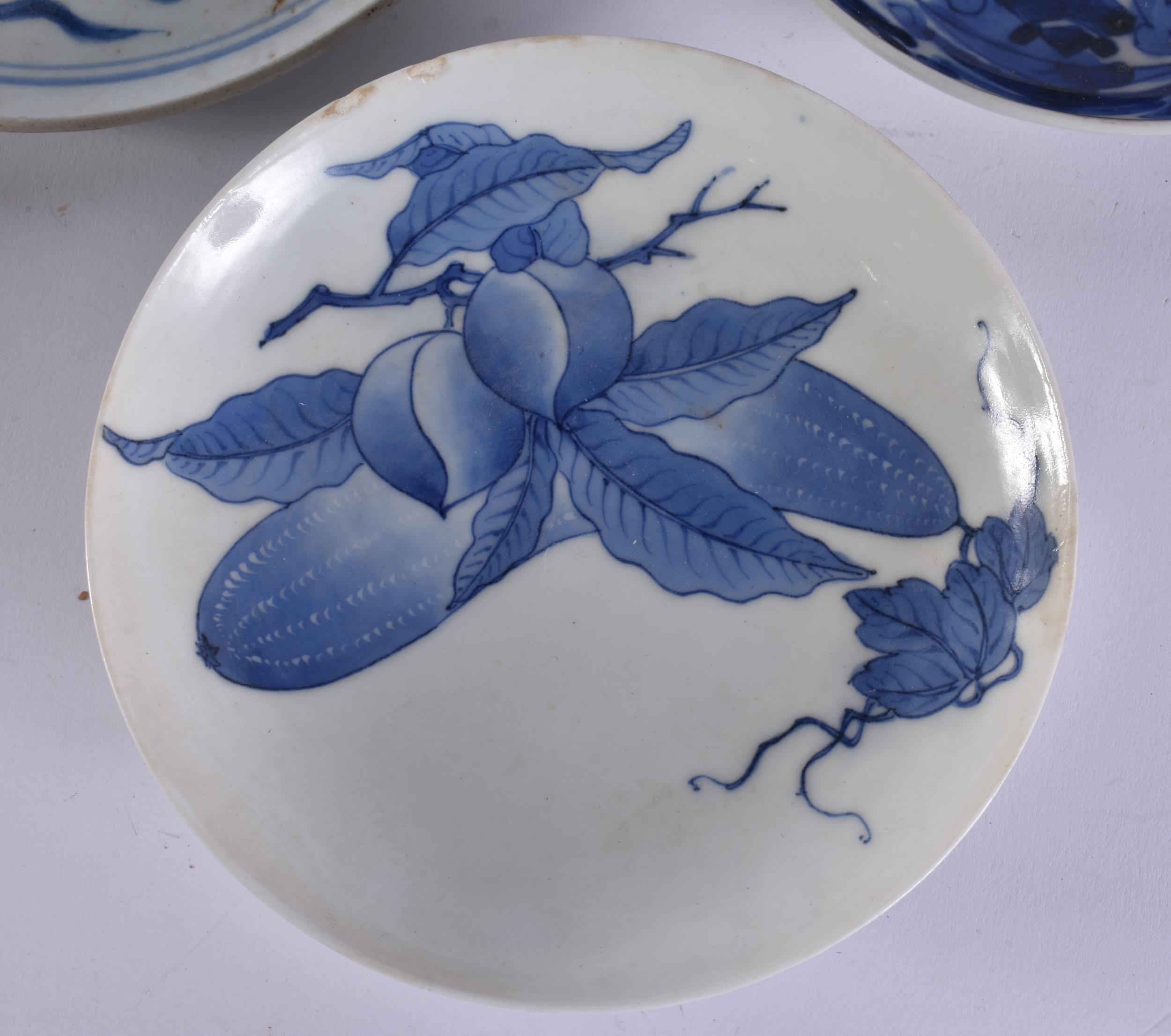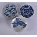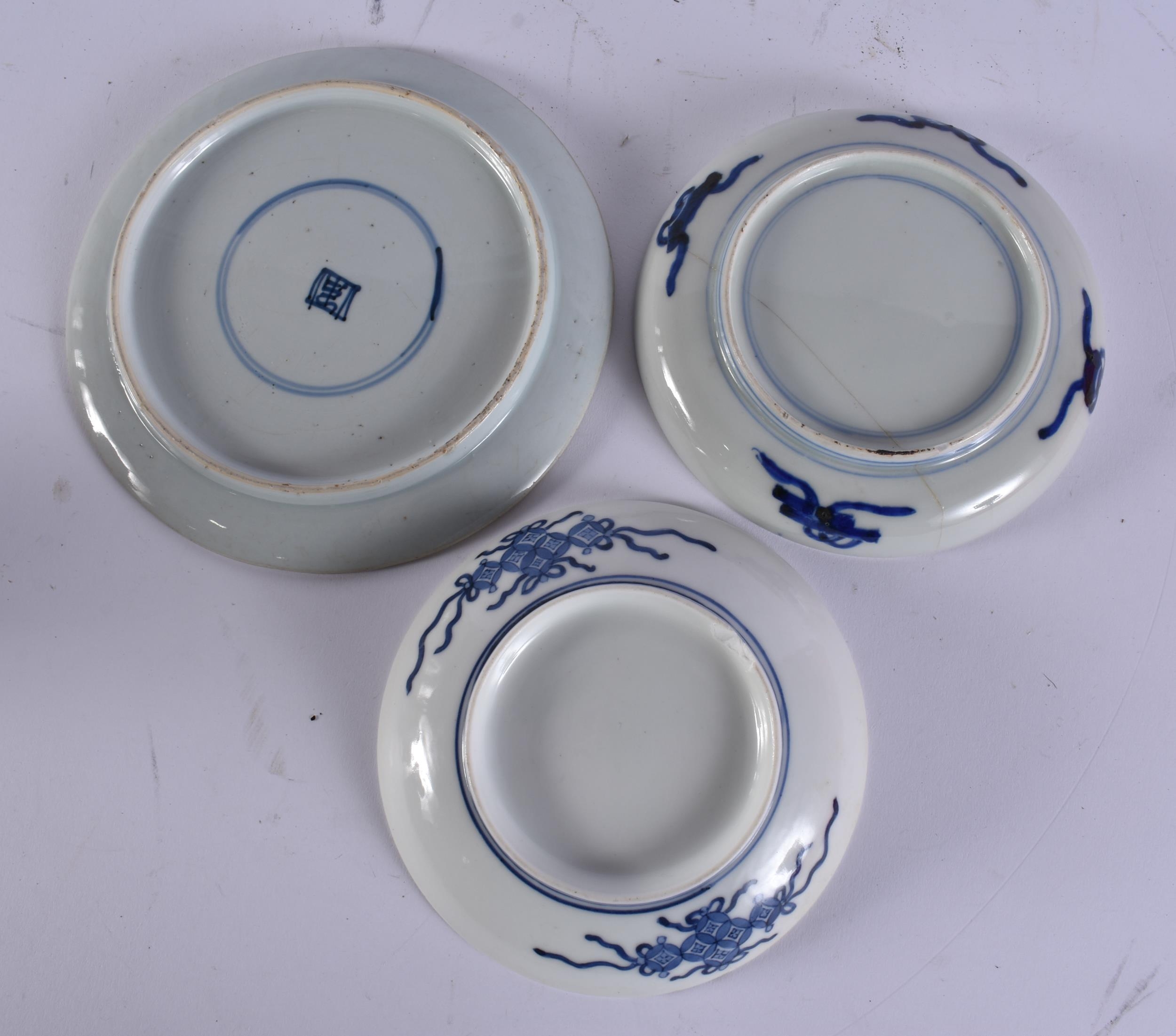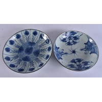 THREE 18TH CENTURY JAPANESE EDO PERIOD BLUE AND WHITE DISHES. Largest 18 cm wide. (3)