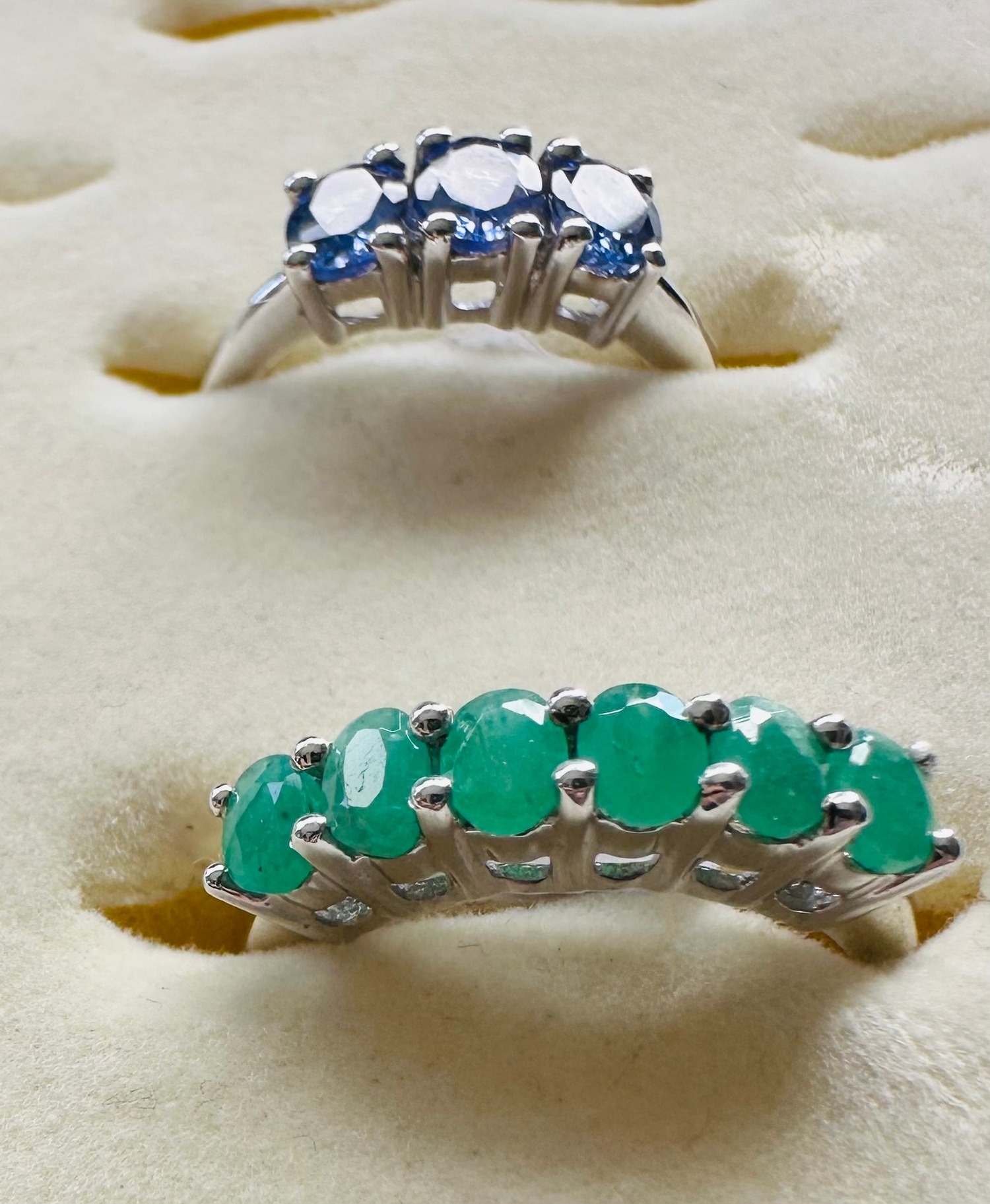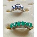 Two sterling silver rings size L 1/2 with tanzanite and emerald gemstones