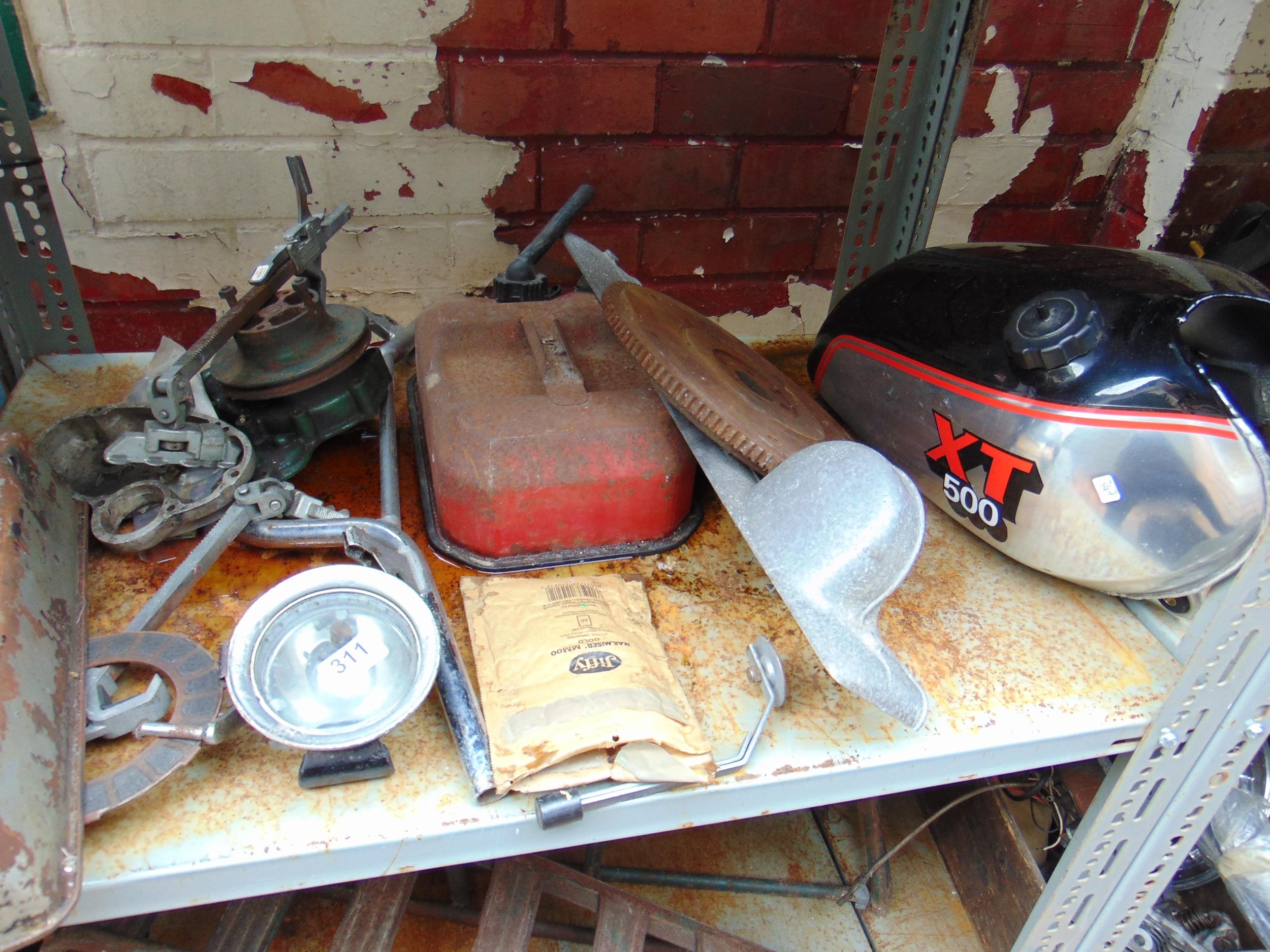 Quantity of Auto jumble, to include lamp, fly wheel, motorcycle petrol tank, etc.