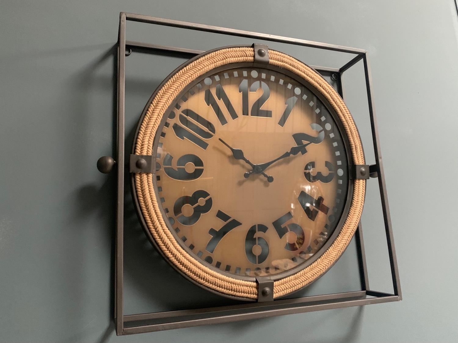 BOXED NEW LARGE INDUSTRIAL CLOCK IN METAL FRAME (H: 43cm W: 43cm D: 9cm)