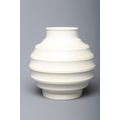 KEITH MURRAY FOR WEDGWOOD - A MOONSTONE POTTERY FOOTBALL VASE, printed Keith Murray, WEDGWOOD MADE IN ENGLAND in blue, 7 1/4" high (Est. plus 24% premium inc. VAT)