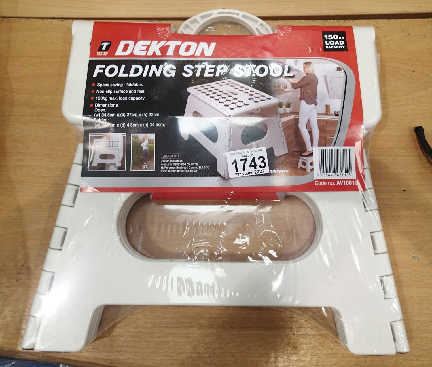 New and unused Dekton folding step stool, maximum load 150kg. Not available for in-house P&P, contact Paul O'Hea at Mailboxes on 01925 659133