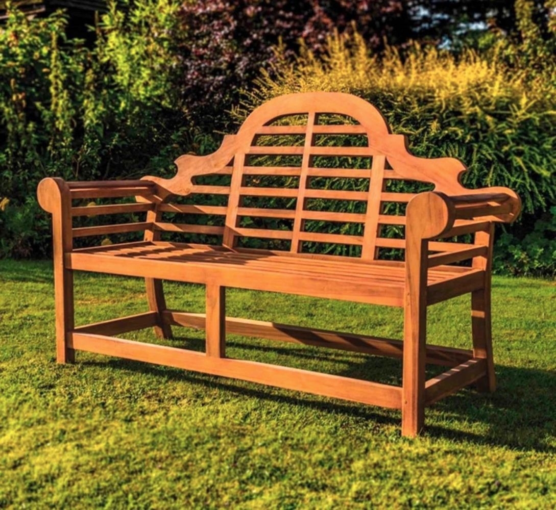 A TEAK LUTYENS STYLE GARDEN BENCH, three seater, traditional form. Dimensions: 165cm wide approx. Please note bench is untreated. **PLEASE NOTE** This lot is DELIVERY ONLY – the bidder cannot collect the lot. Please contact our in-house recommended delivery services in Lot 1 for a quotation prior to bidding